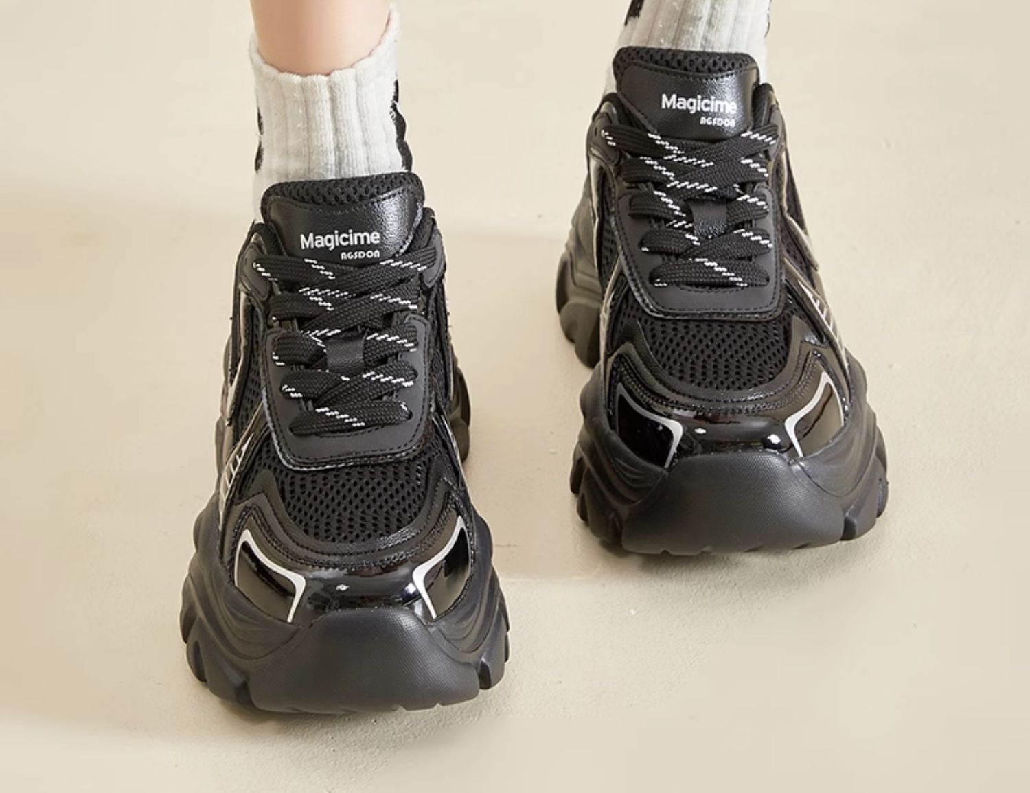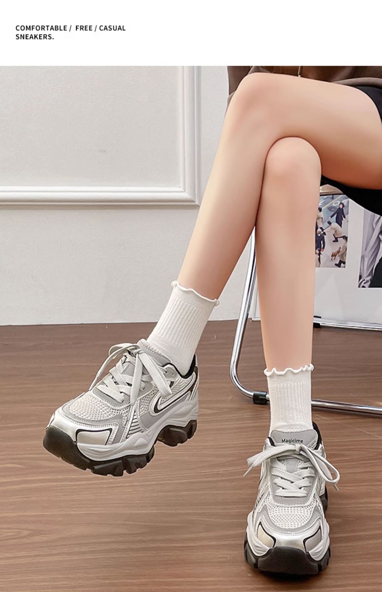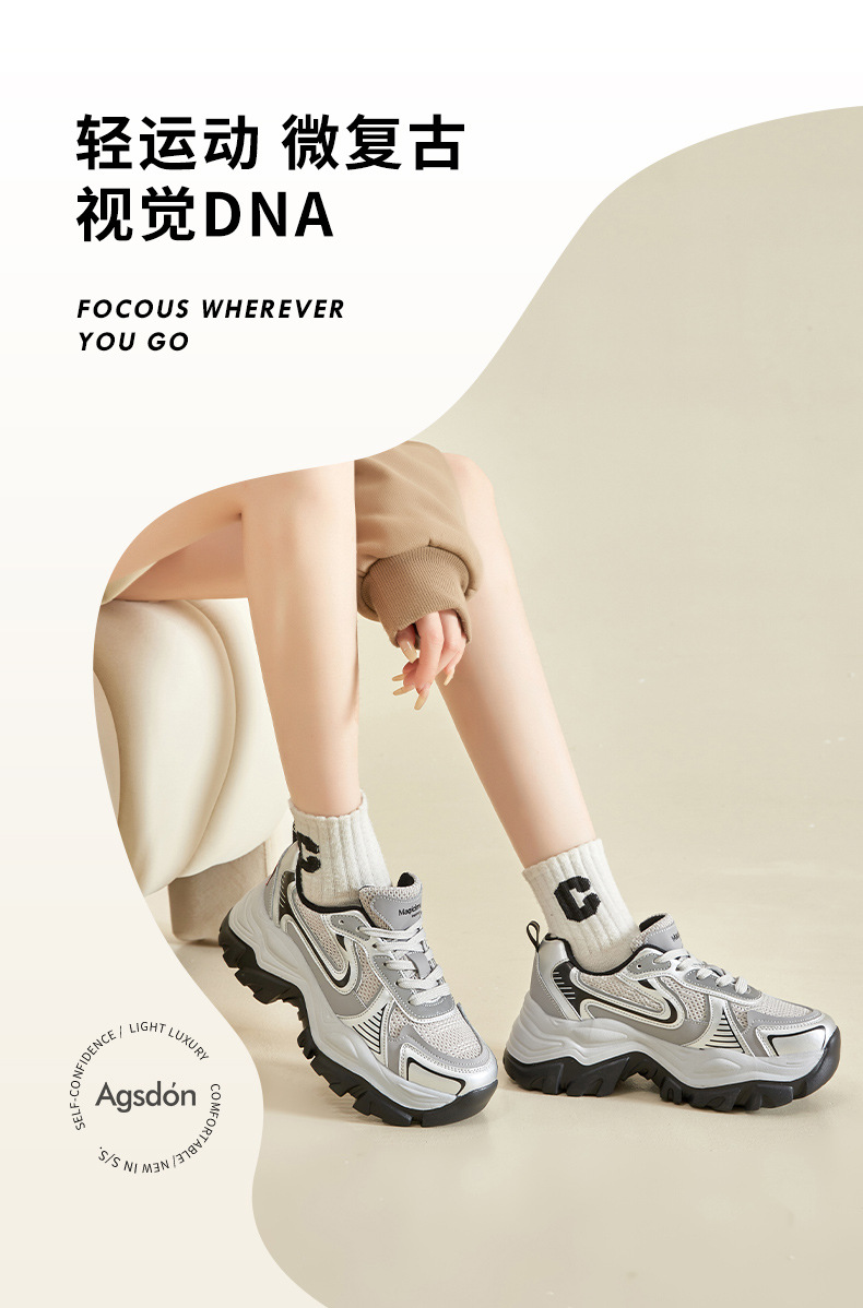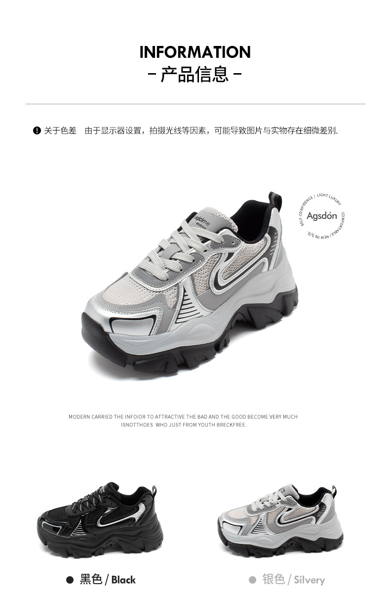 Augustion Daddy Shoes Mujer 2025 Nueva suela gruesa de primavera Plata Retro Casual Pies Sneakers ins