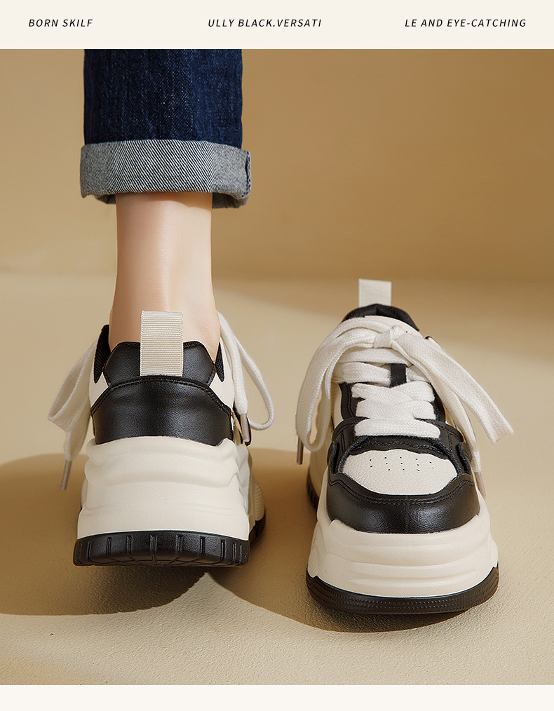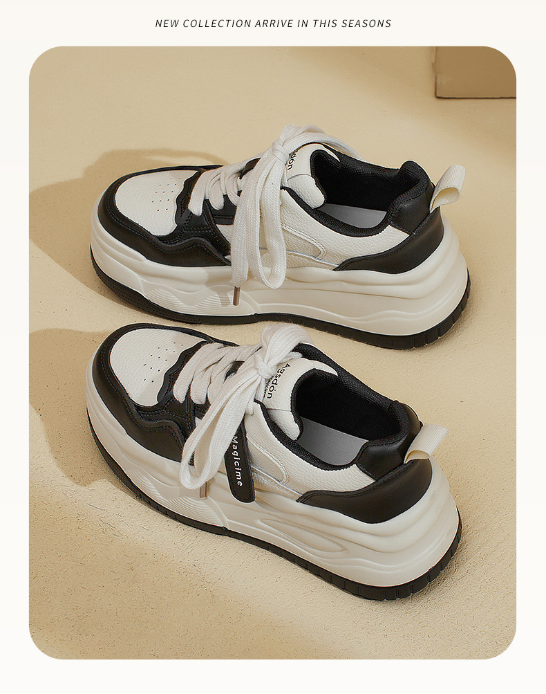 Zapatillas Blancas para Mujer Augu Shiden, Estilo Universitario, Otoño 2025, Estilo Casual, Suela Gruesa, Deportivas, Zapatillas Panda Blancas y Negras