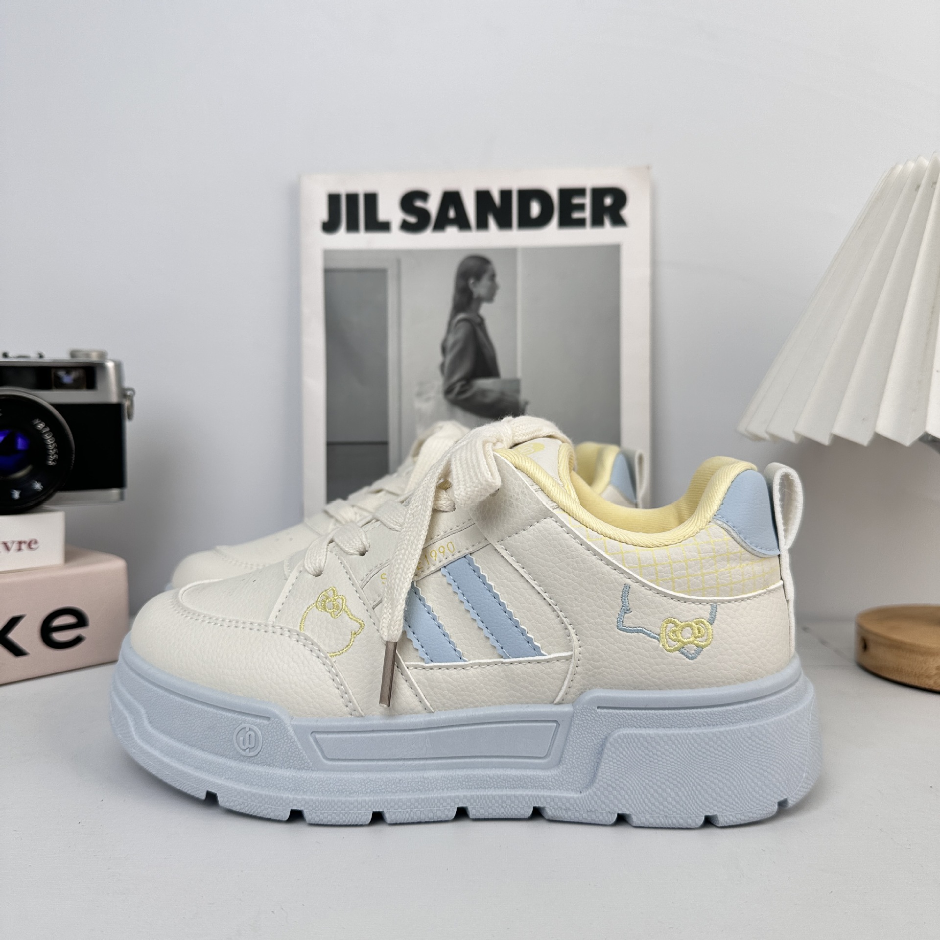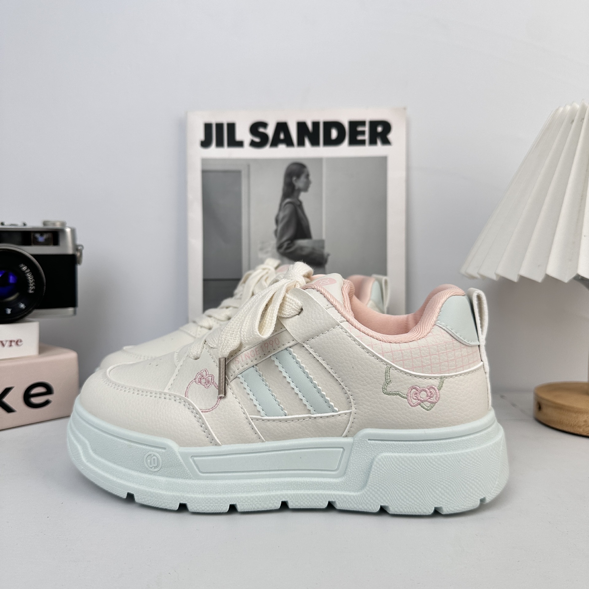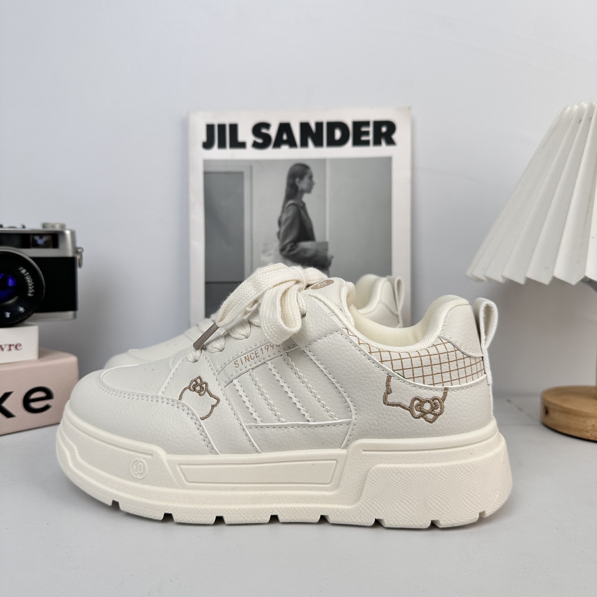 Zapatos blancos de fondo grueso para mujeres 2025 nuevos zapatos de skate coreanos de primavera y otoño para estudiantes de nicho zapatos de pan