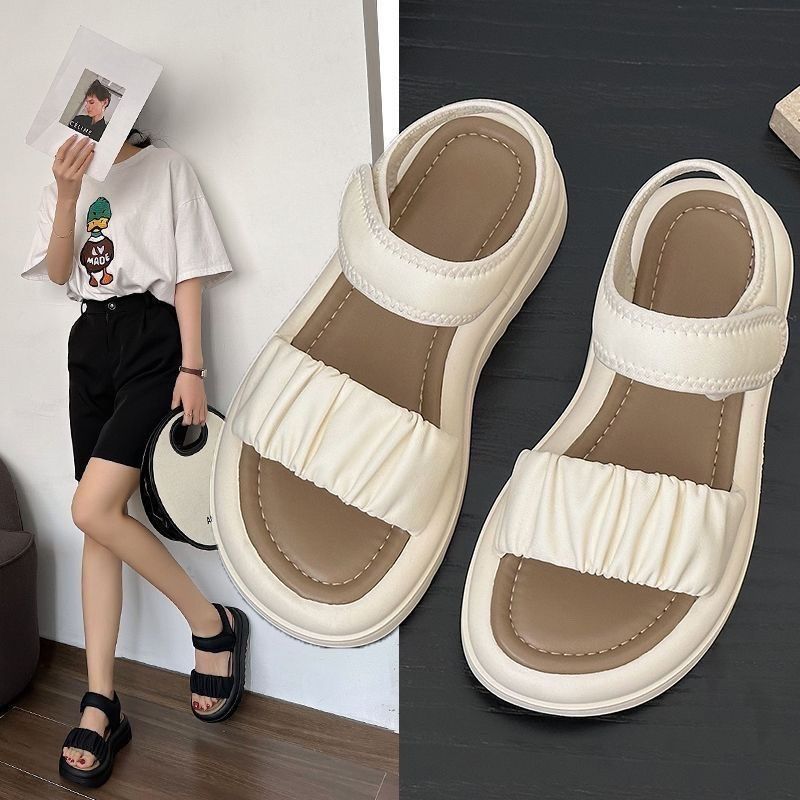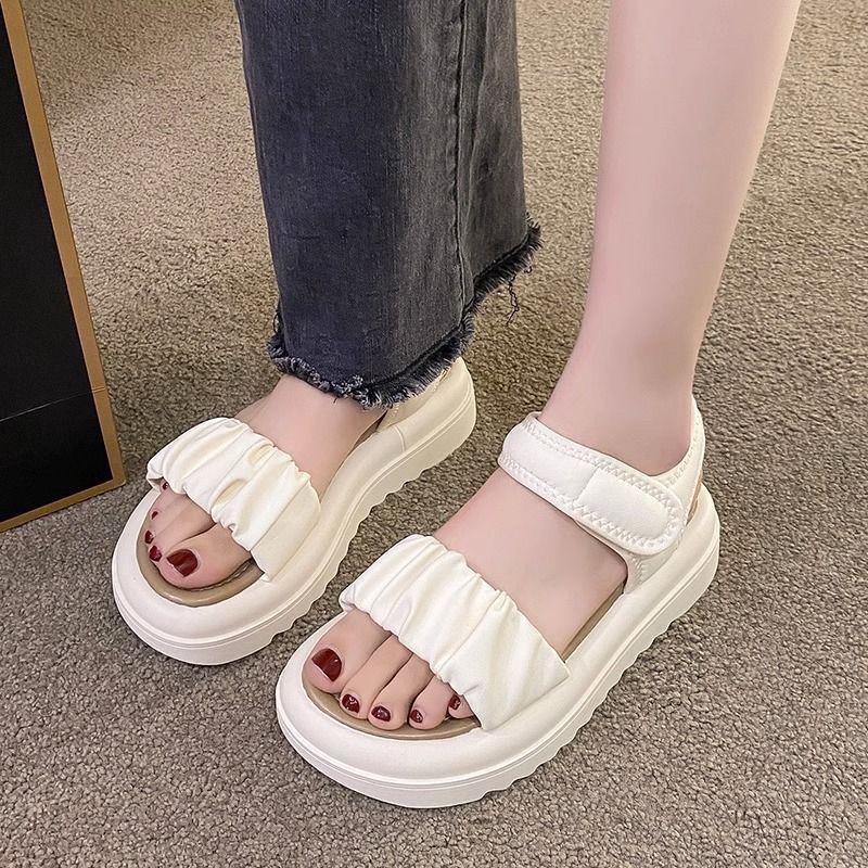 2024 verano en línea pequeña figura alta muffin fondo grueso temperamento zapatos de playa cómodos sandalias de hebilla para mujeres