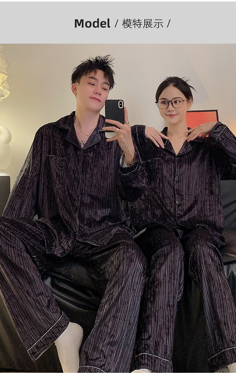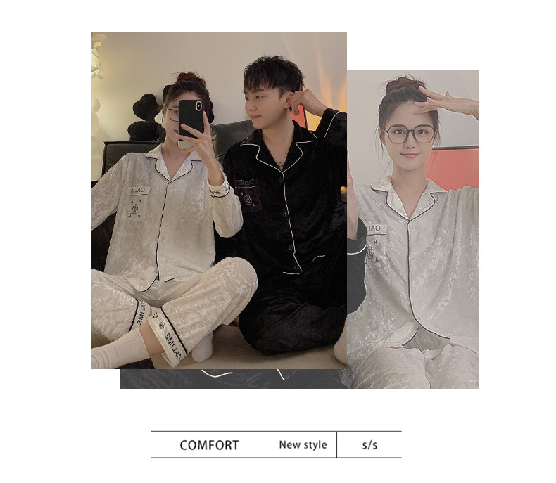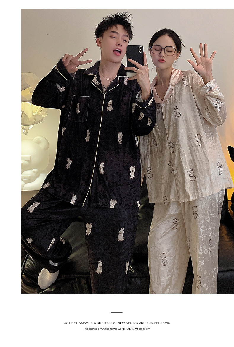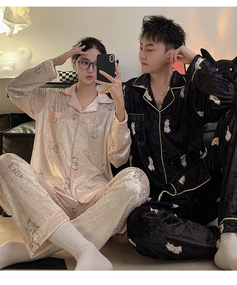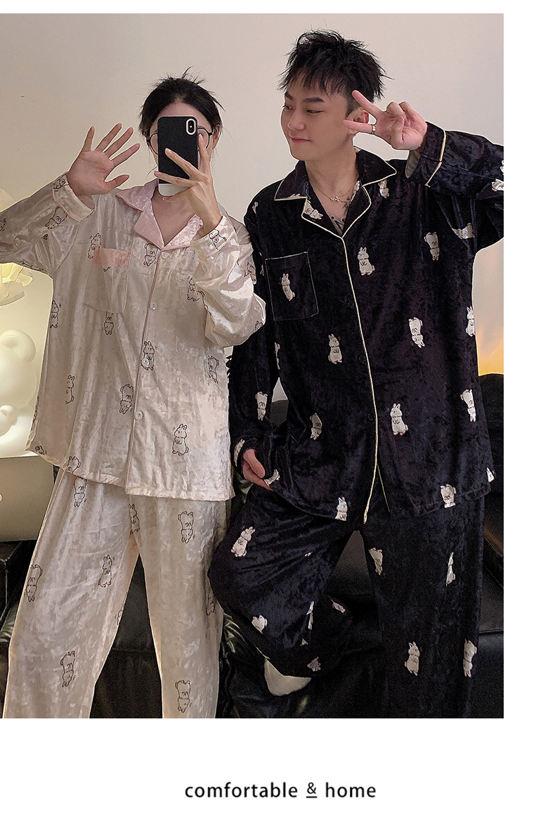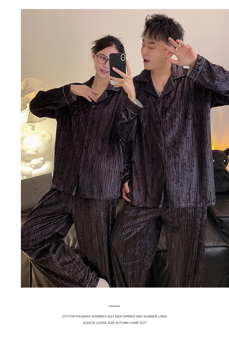 Pareja de pijamas de primavera y otoño de terciopelo dorado de manga larga de mujer de alto grado Camelia 2023 nuevos hombres de invierno homewear