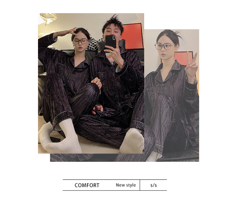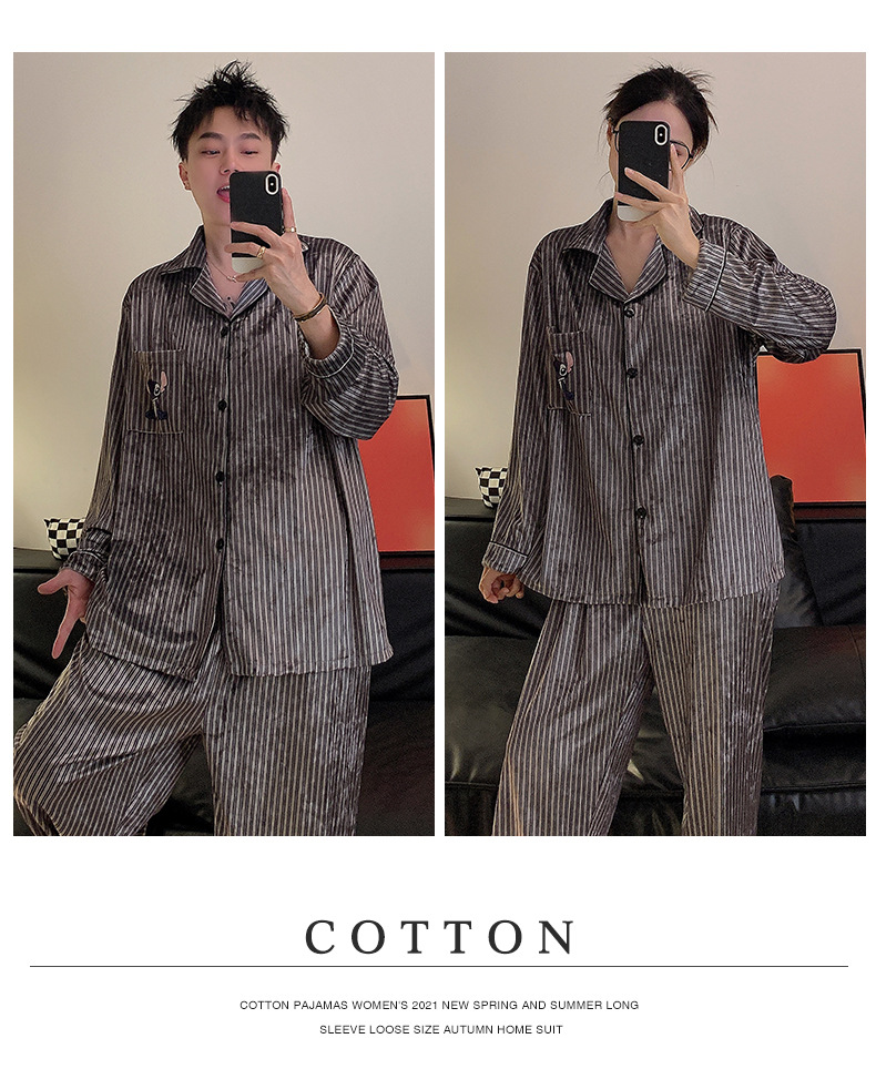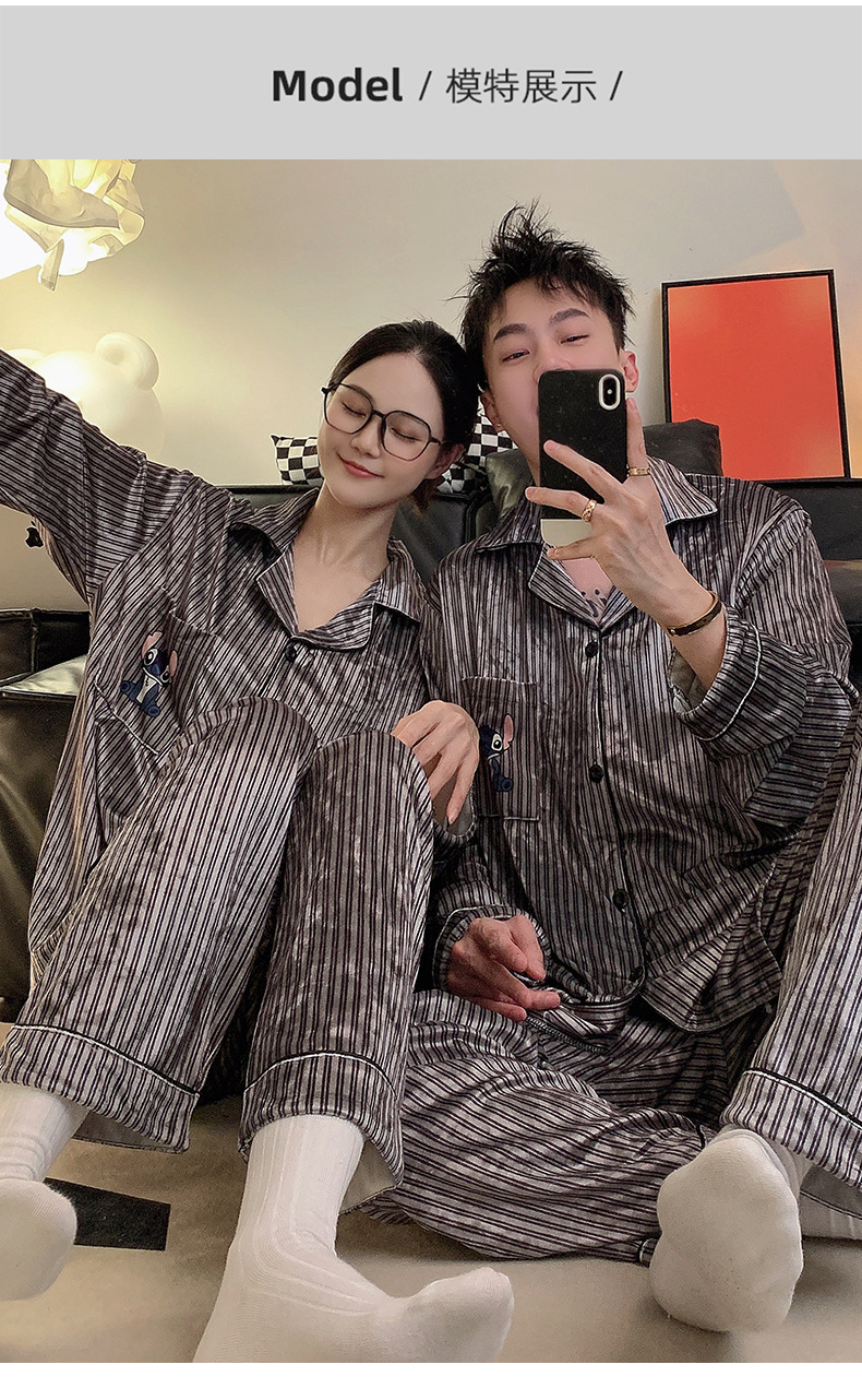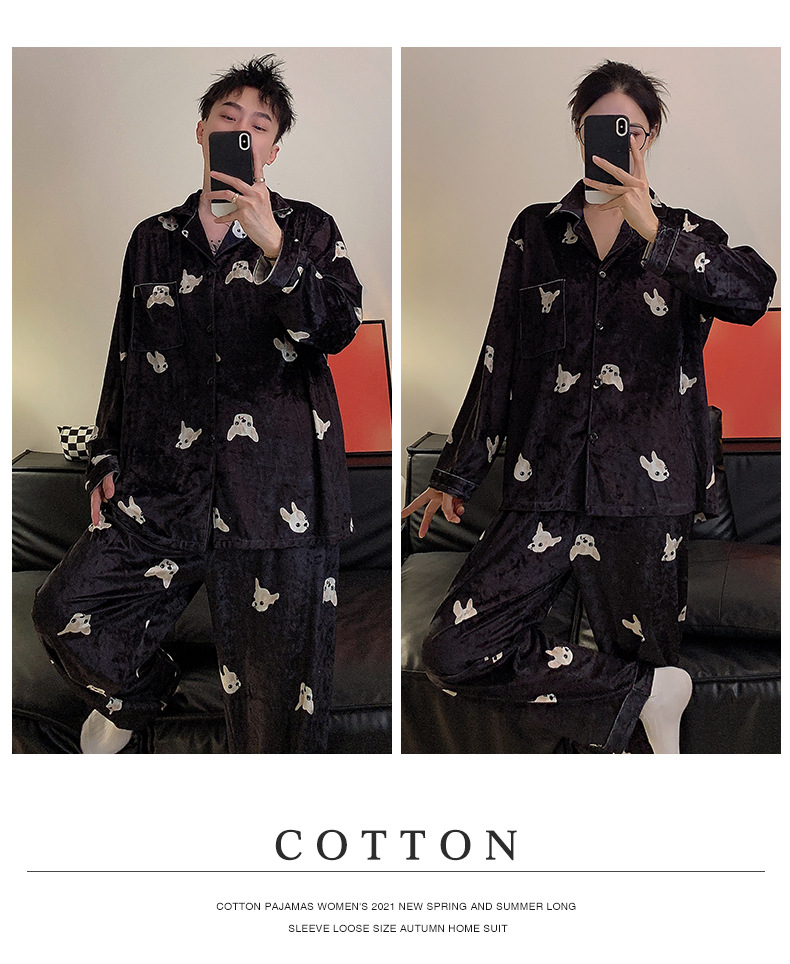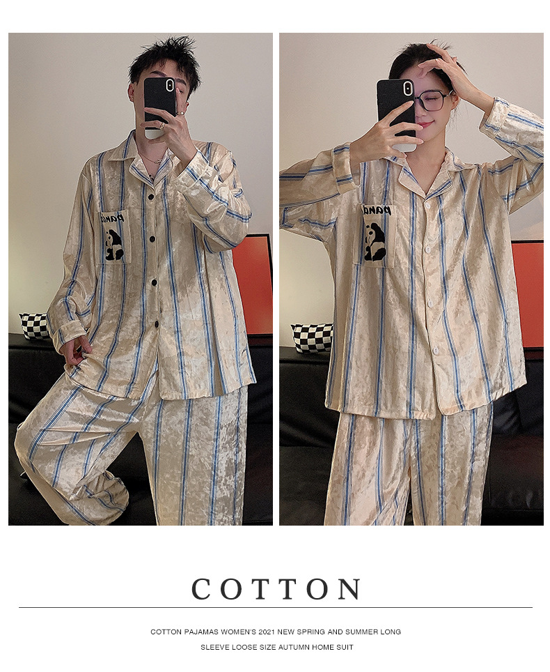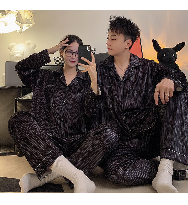 Pareja de pijamas de primavera y otoño de terciopelo dorado de manga larga de mujer de alto grado Camelia 2023 nuevos hombres de invierno homewear