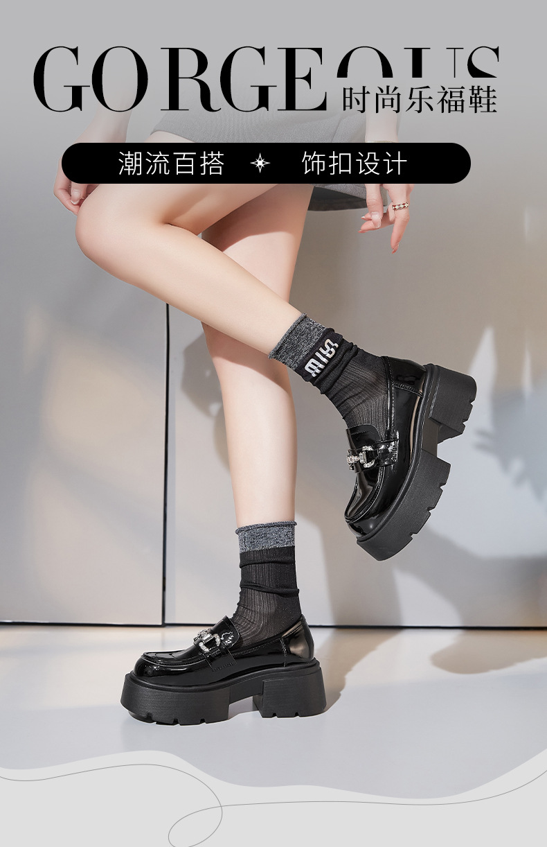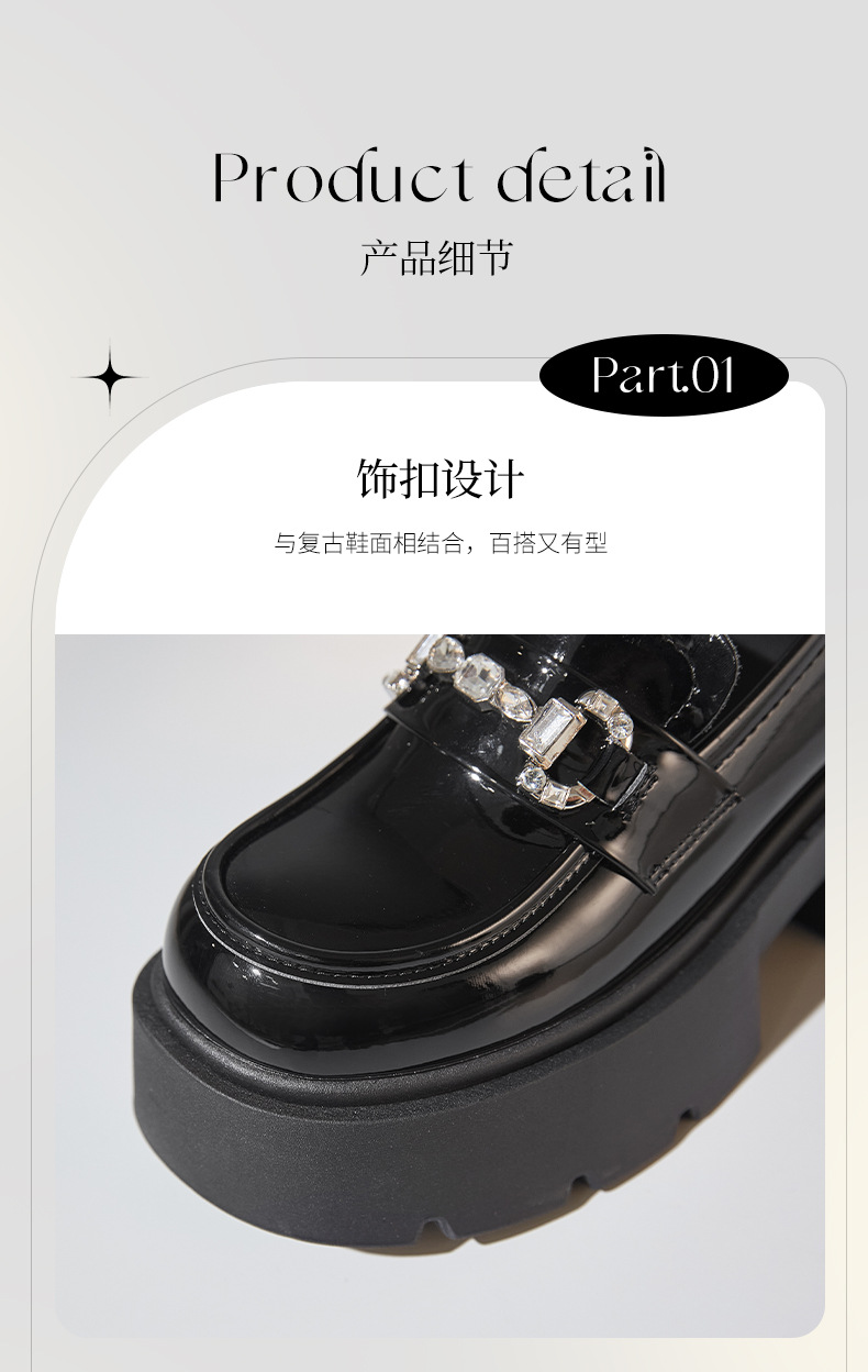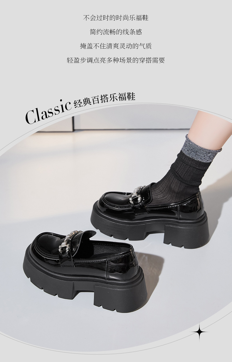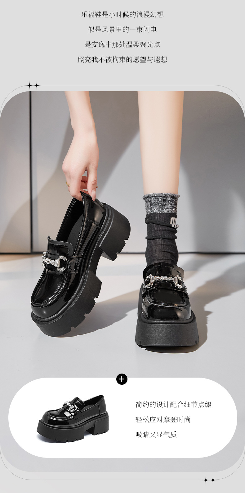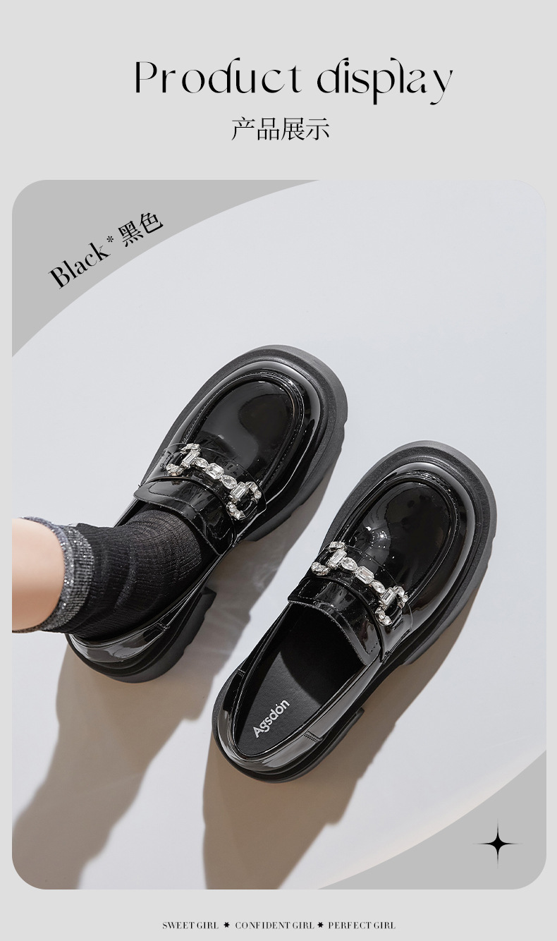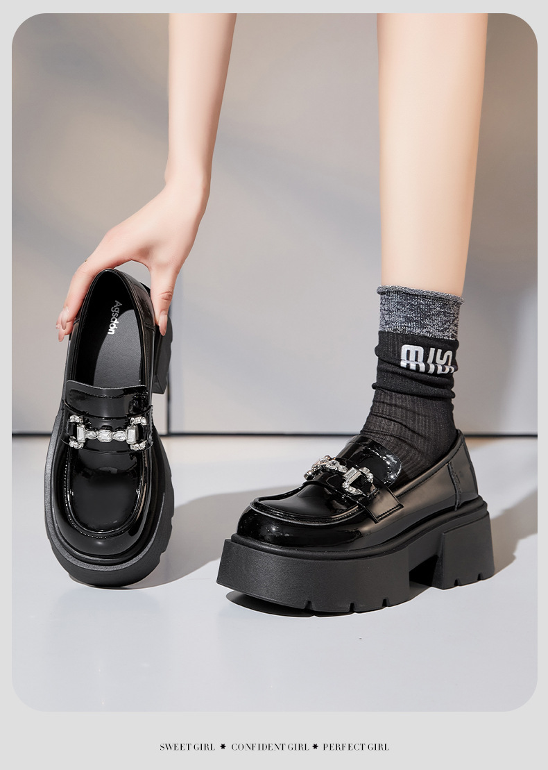 Mocasines de suela gruesa Augu Shiden para mujer, otoño 2025, nuevo estilo británico, zapatos de tacón grueso, zapatos de cuero negro brillante