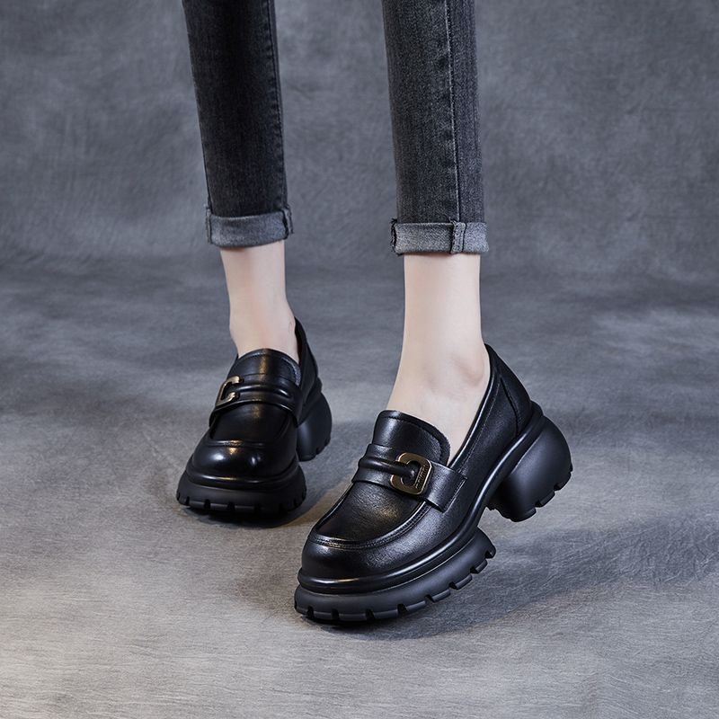Internet éxito británico ligero zapatos de cuero 2024 otoño nuevos zapatos de Lefour zapatos de mujer suela gruesa retrógrada zapatos Mary Jane