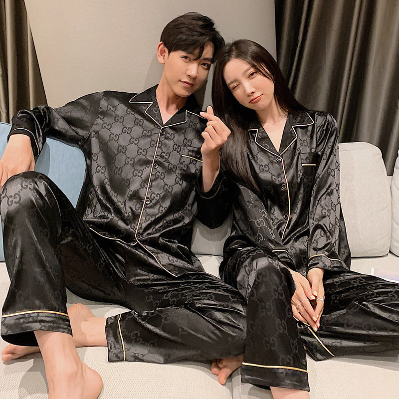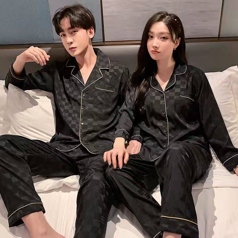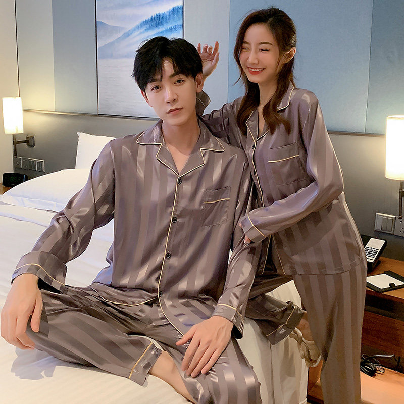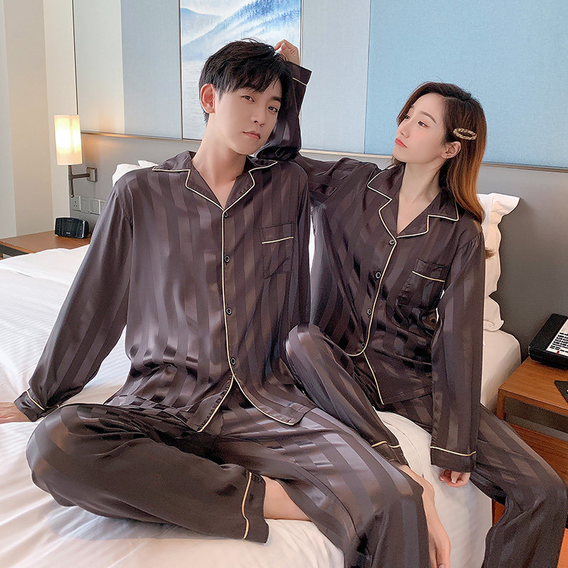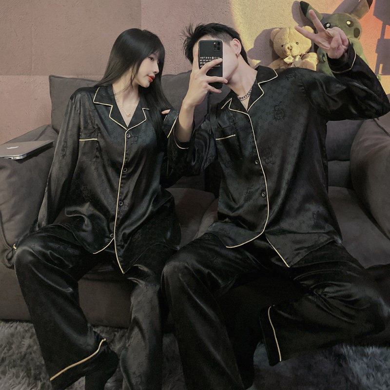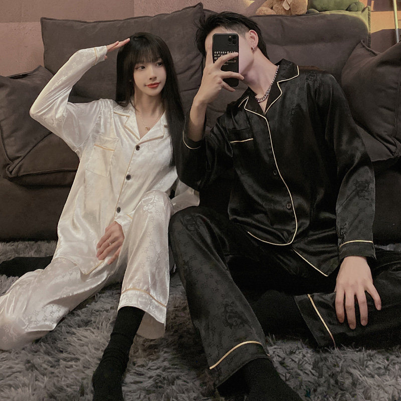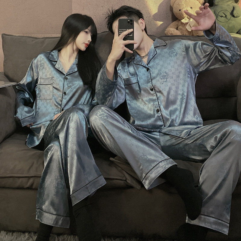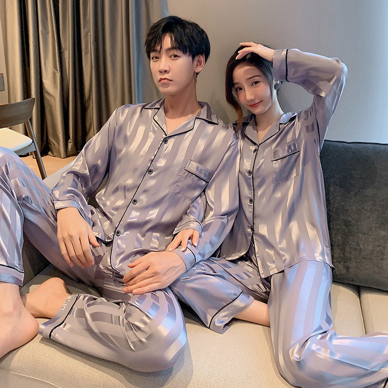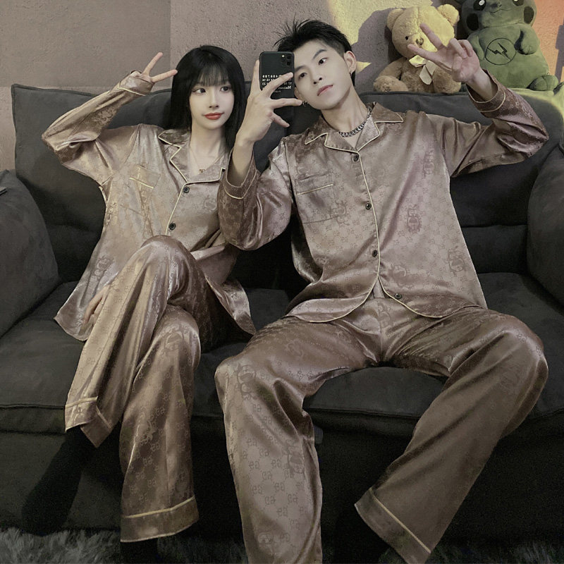 Comercio exterior al por mayor pareja pijamas primavera y otoño de manga larga hielo seda gordito niña más tamaño los hombres desgaste del hogar traje las mujeres