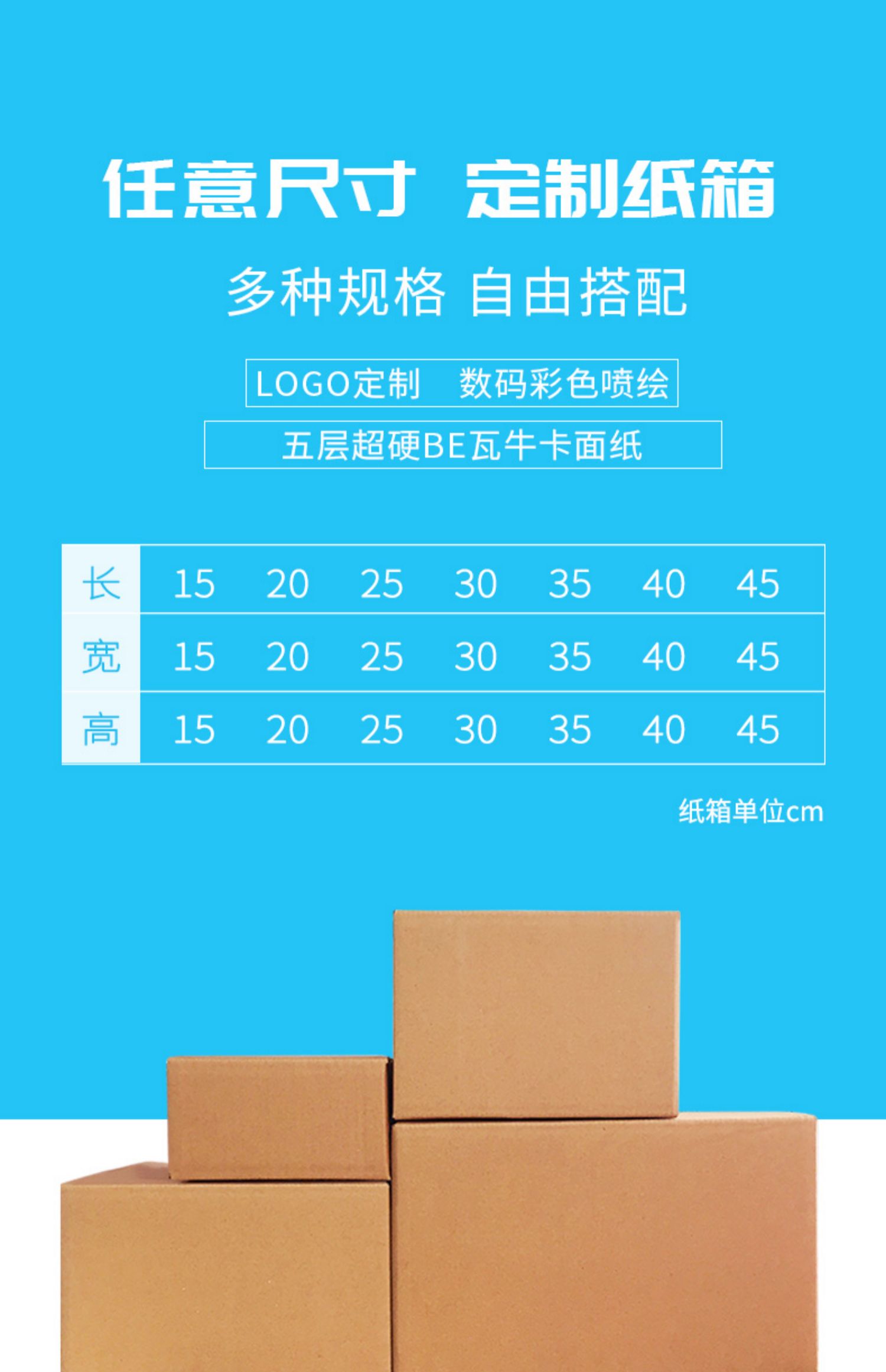 Caja de cartón hecha a medida engrosada y endurecida cinco capas pequeñas lotes expresos de embalaje caja de papel de embalaje al por mayor impresión a medida lo