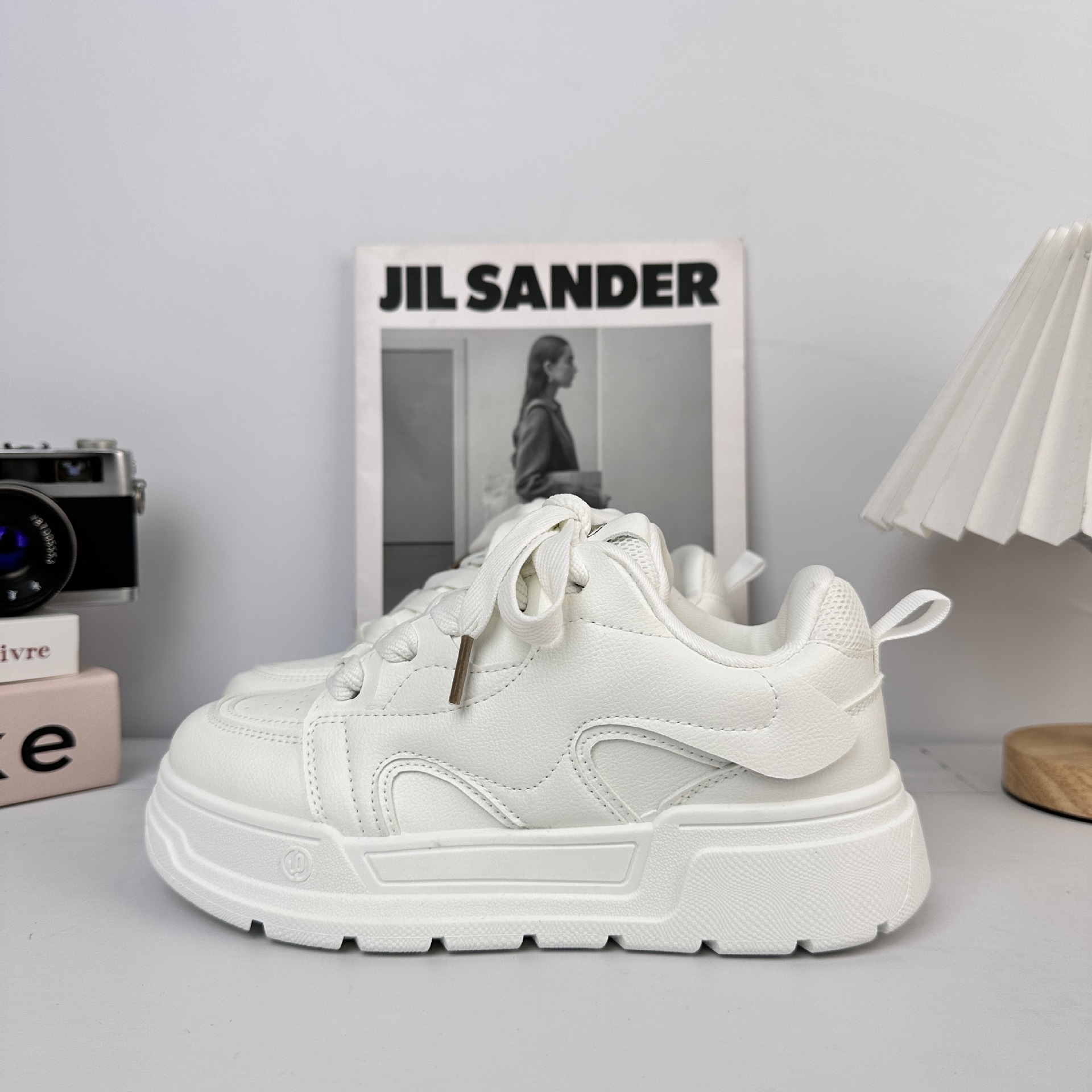 Zapatos de suela gruesa de larga onda para mujeres 2025 nuevos zapatos de pan de nicho de otoño versátiles zapatos deportivos casuales pequeños zapatos blancos
