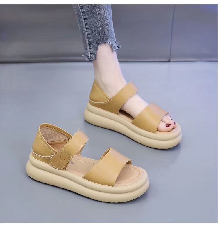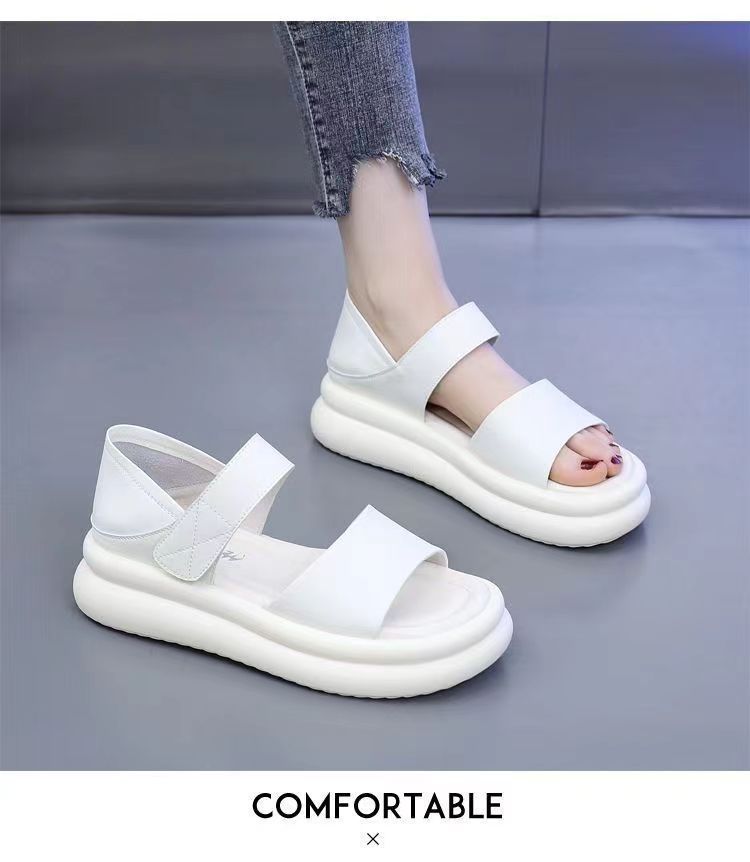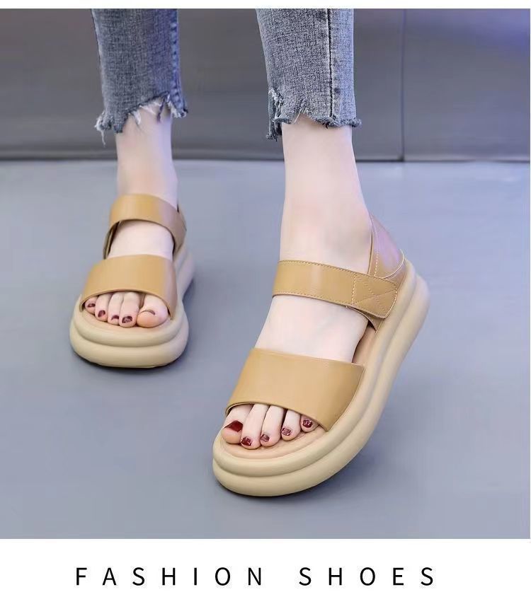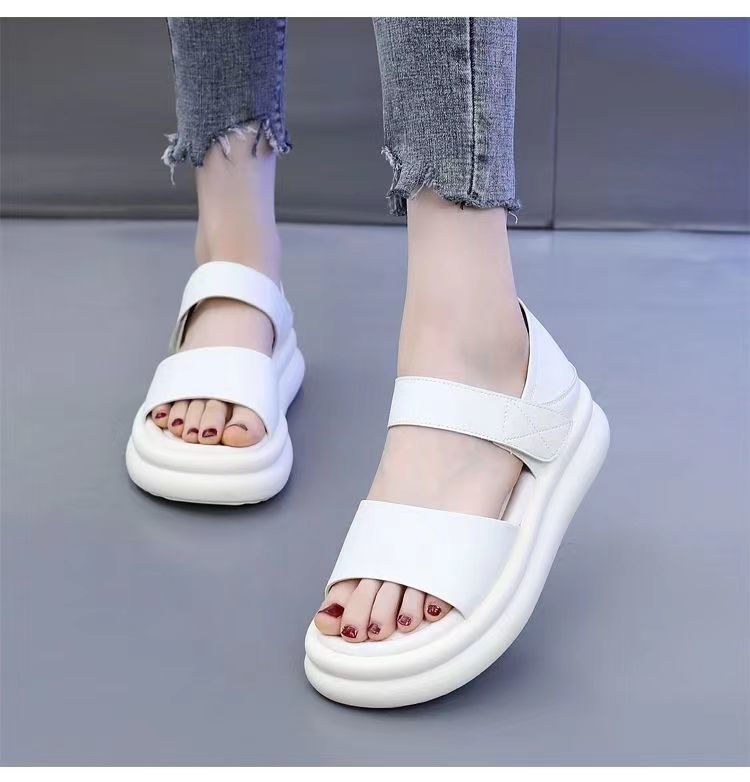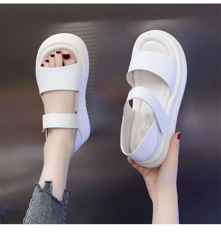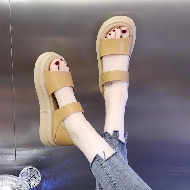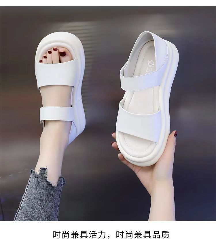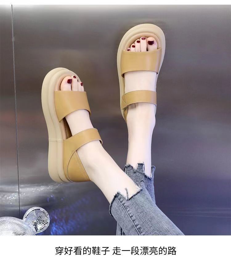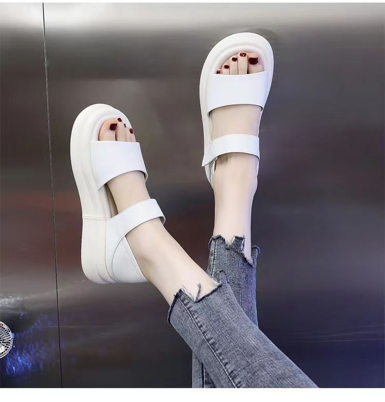 Red popularidad explosiva sandalias de fondo grueso para mujeres 2024 verano nueva moda versátil aumento de altura sensación de sandallas de playa