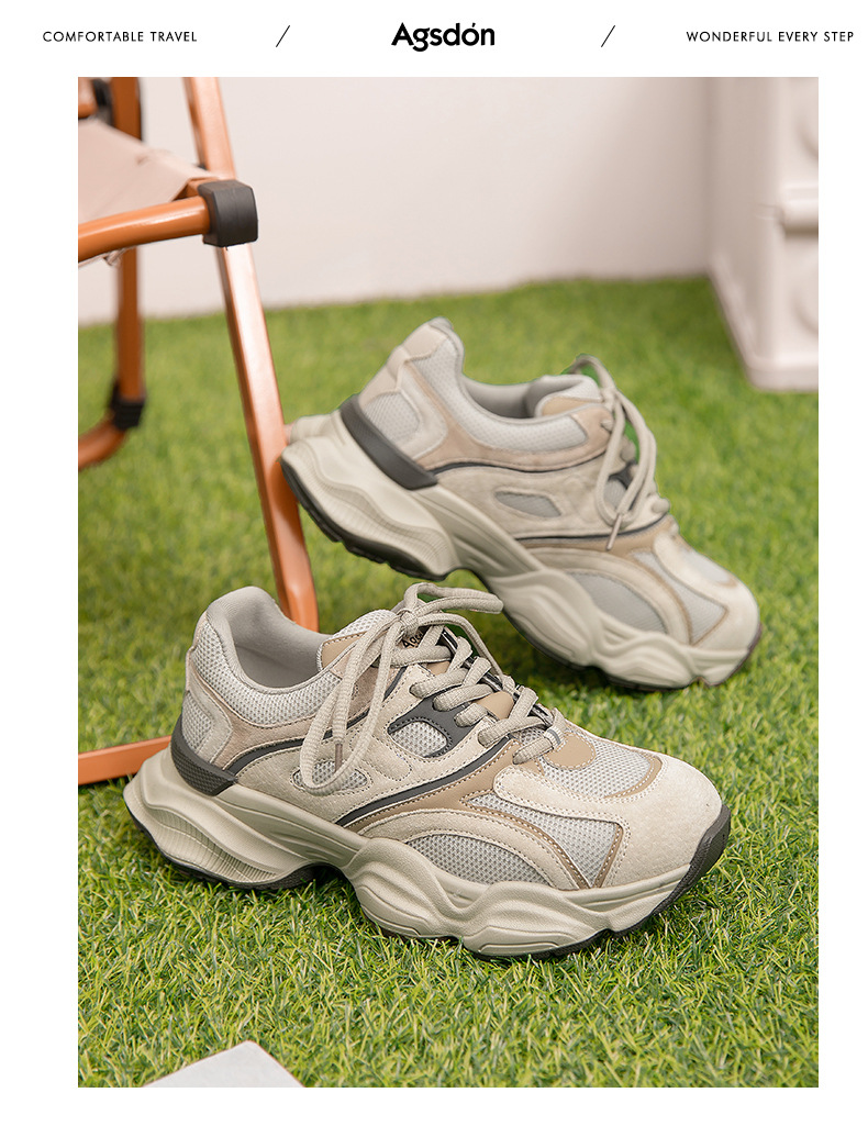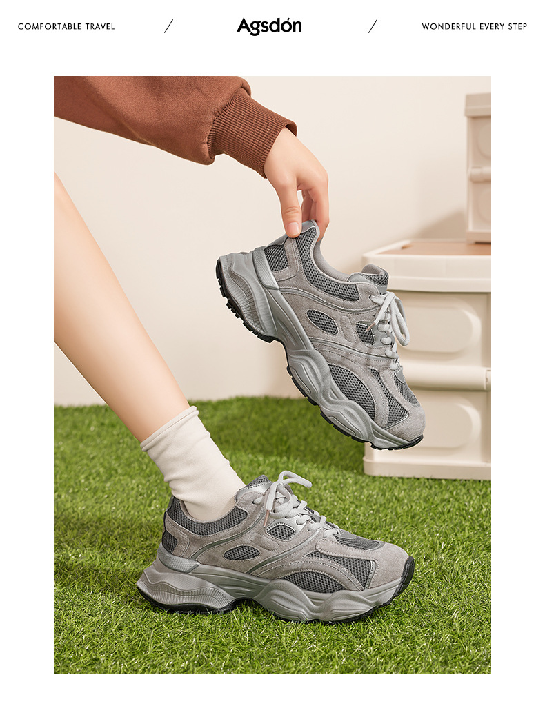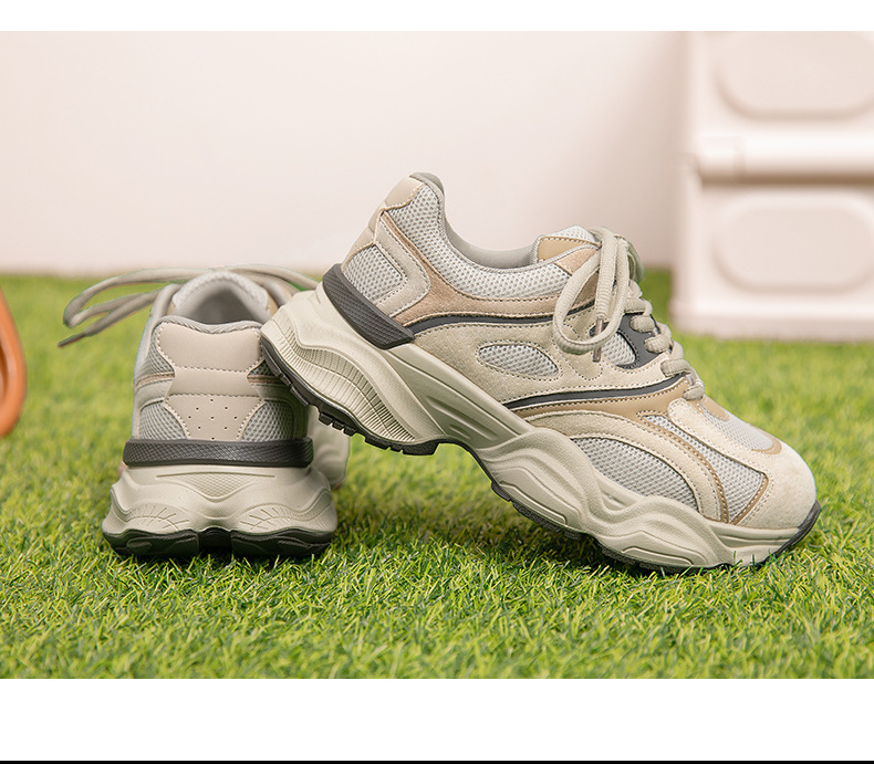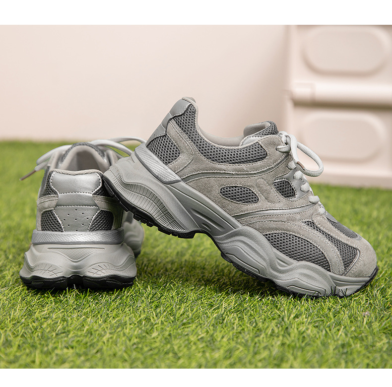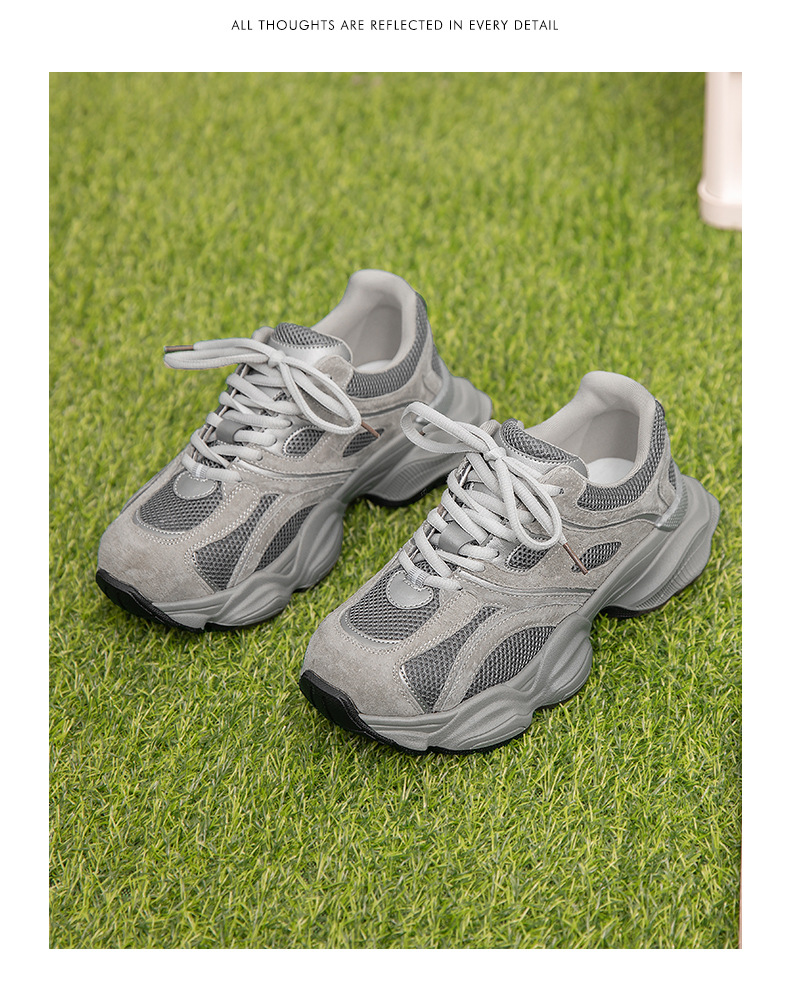 Zapatos de padre gris gris grueso para mujeres 2024 verano nuevo pequeño hombre ligero casual callejera zapatillas deportivas