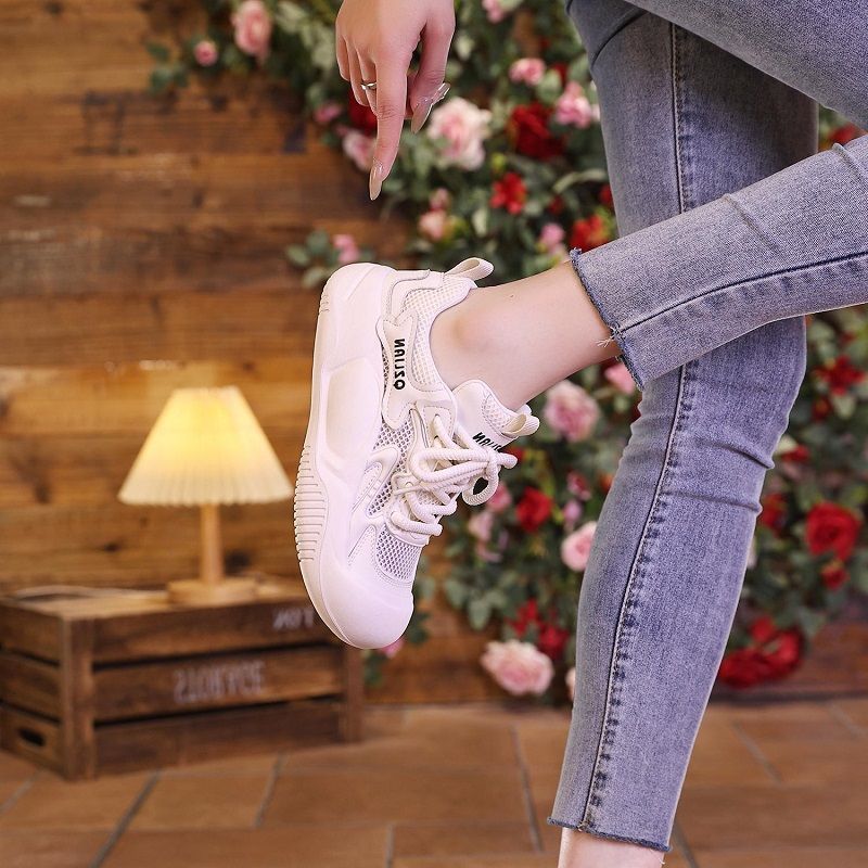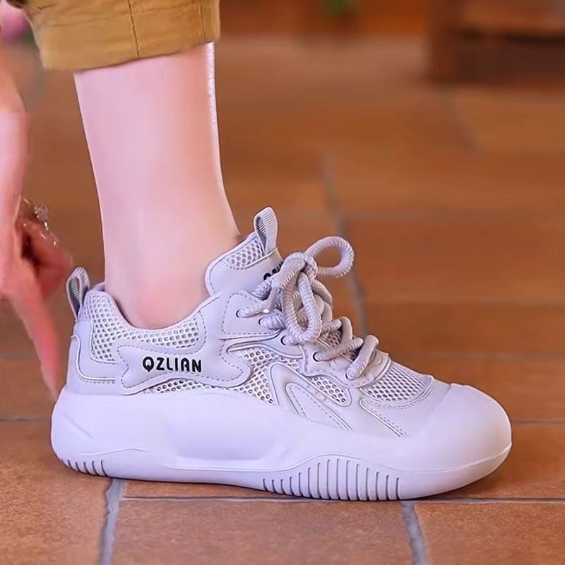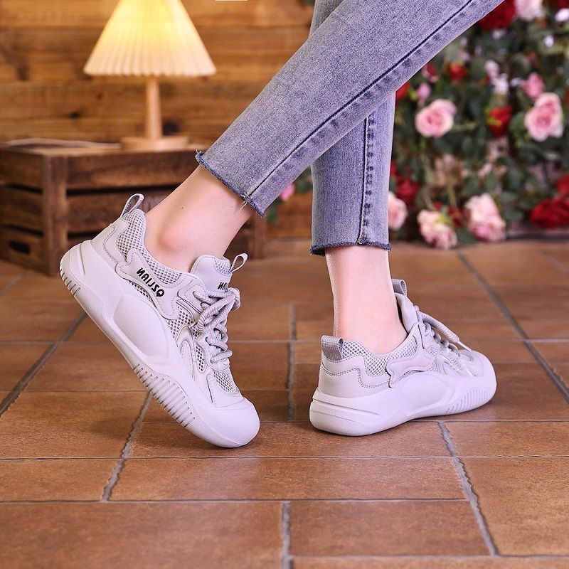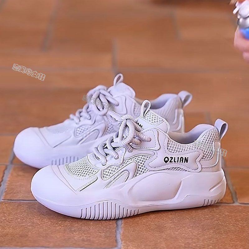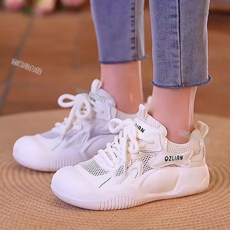 Explosión de tela coreana transpirable zapatos de suela gruesa para mujeres 2024 verano nuevo color de combinación de zapatos deportivos casuales de moda para mujeres