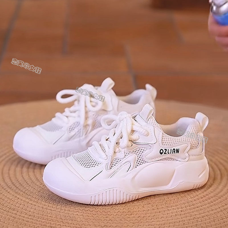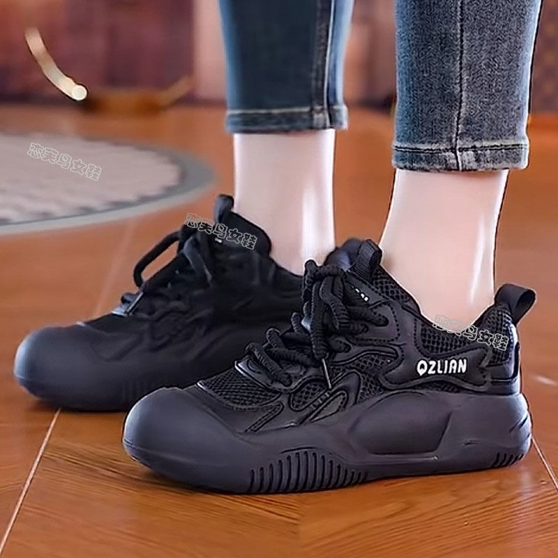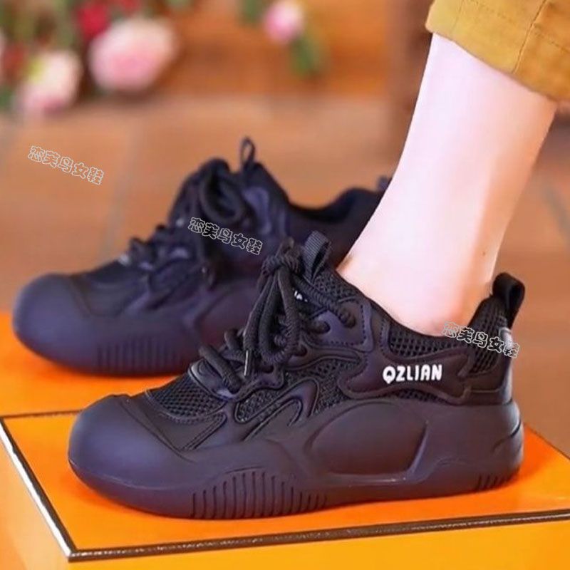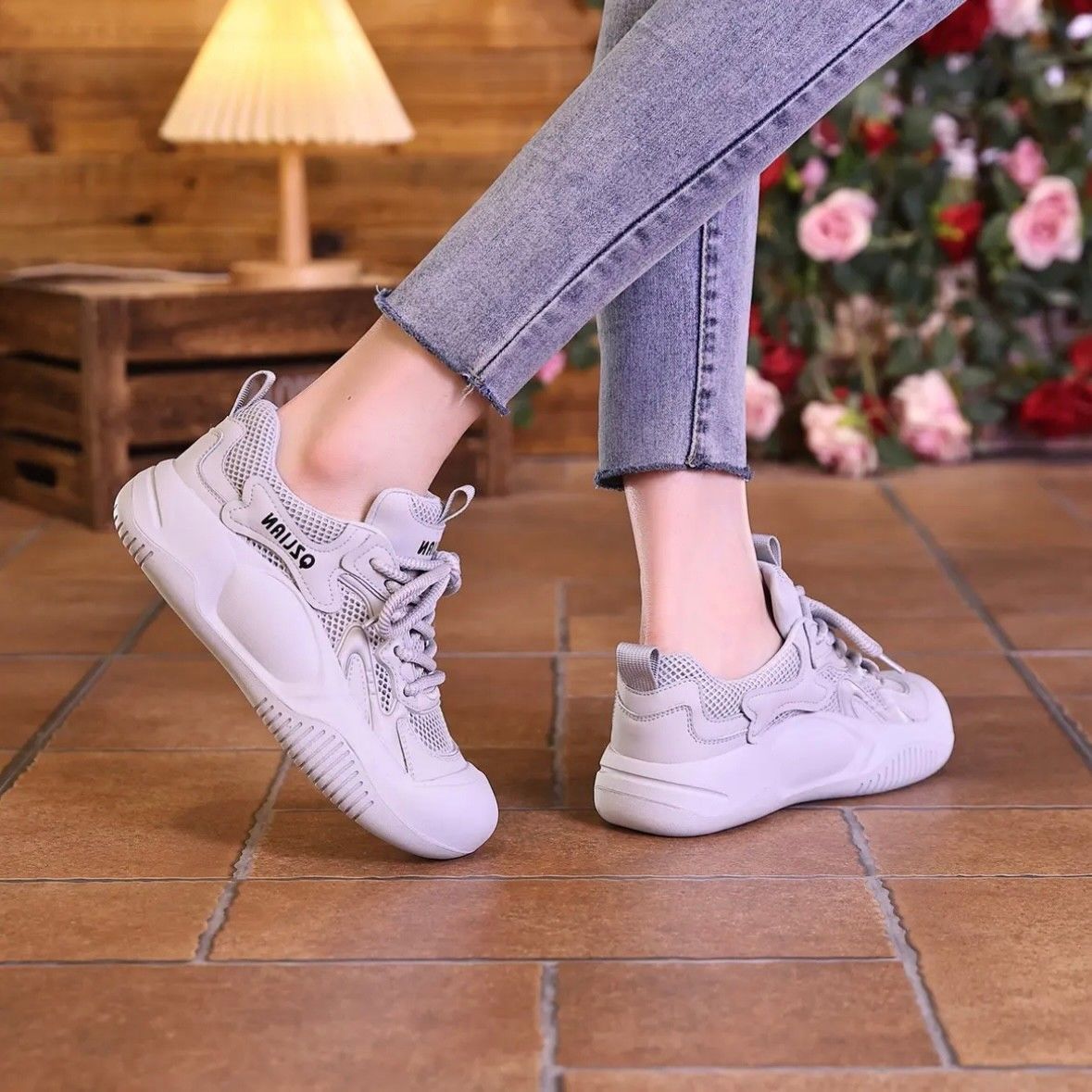 Explosión de tela coreana transpirable zapatos de suela gruesa para mujeres 2024 verano nuevo color de combinación de zapatos deportivos casuales de moda para mujeres
