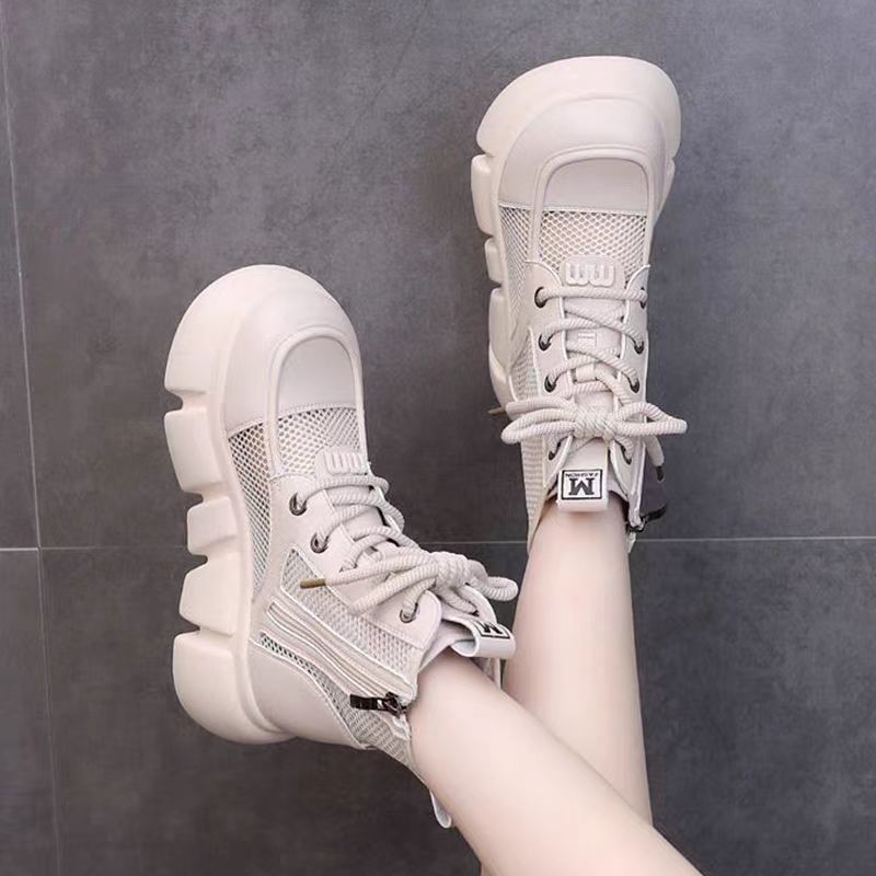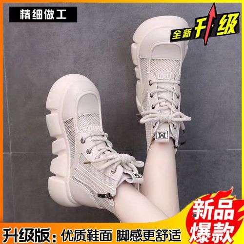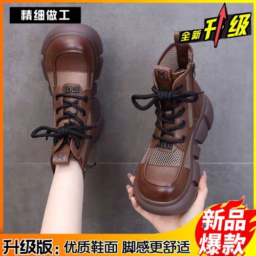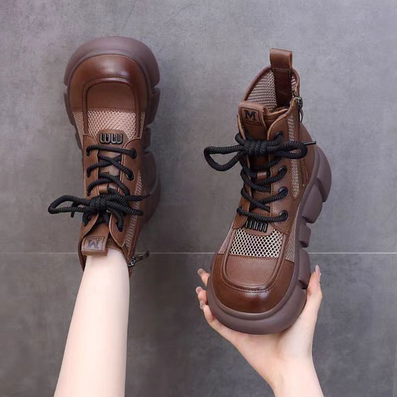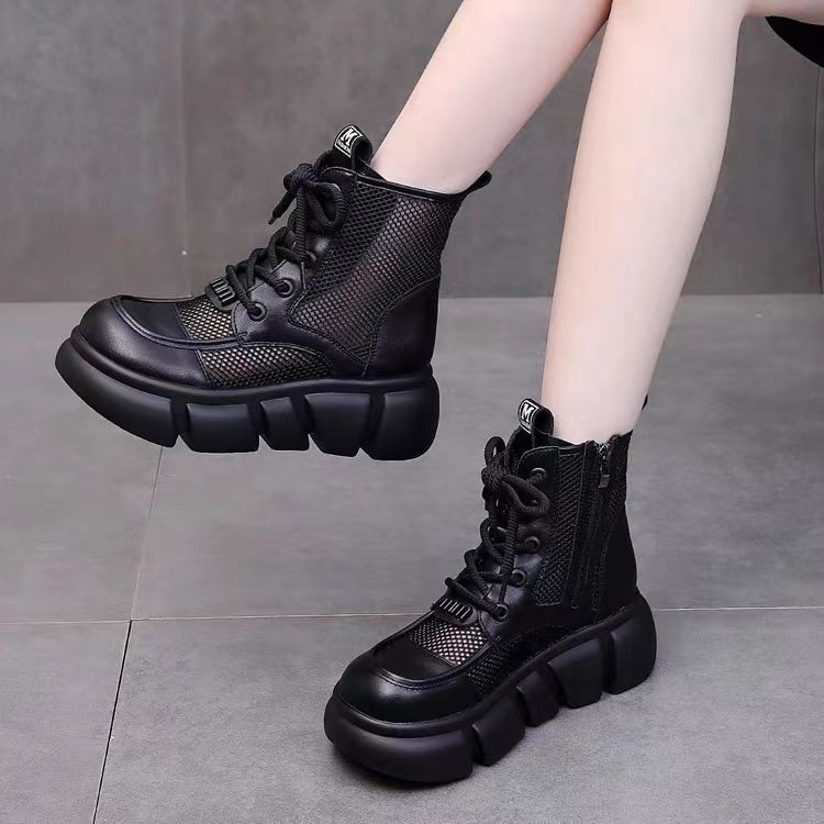 Botas delgadas de verano para mujeres con faldas de botas de cuero 2024 botas frías redondas de malla gruesa para mujeres botas de malla transpirables