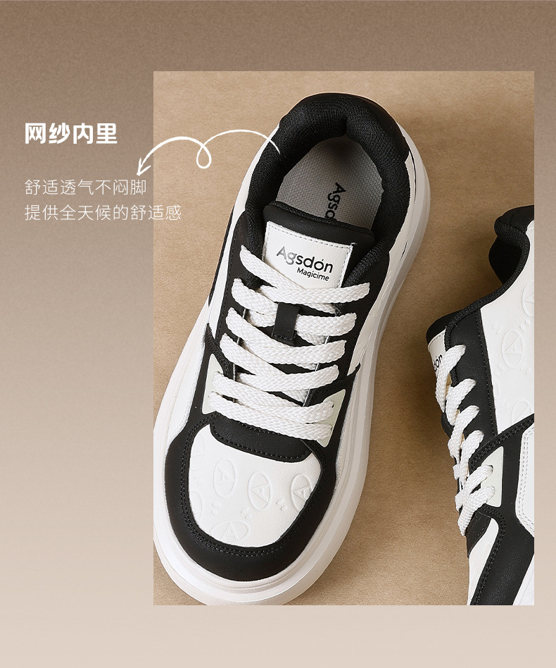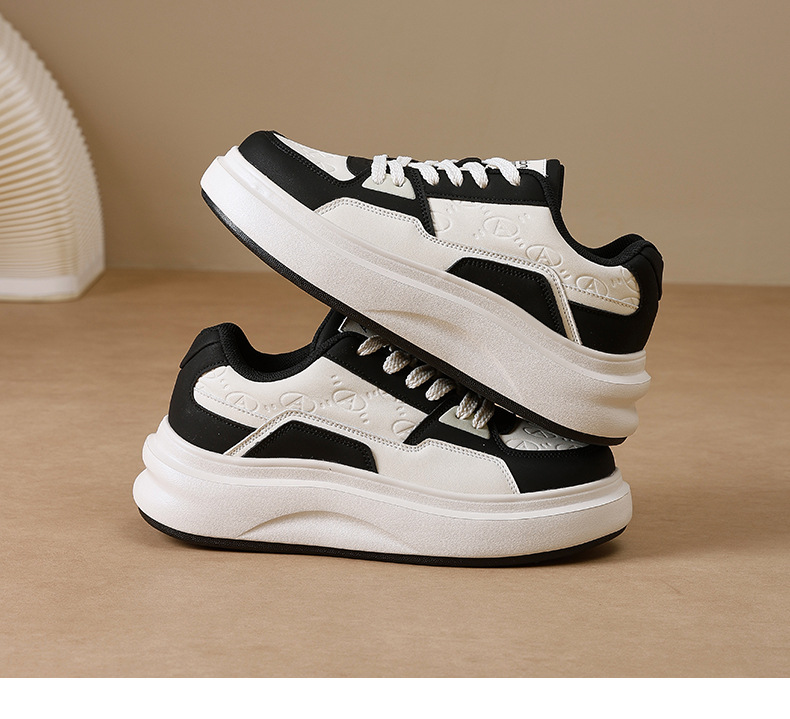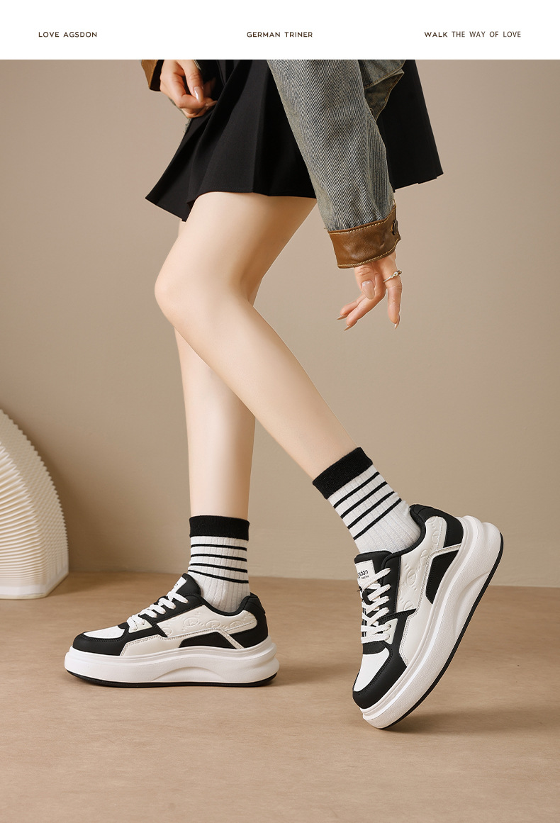 Augu Shi Deng zapatos de suela gruesa mujer 2025 nuevo invierno negro y blanco panda zapatos deportivos casuales zapatos blancos