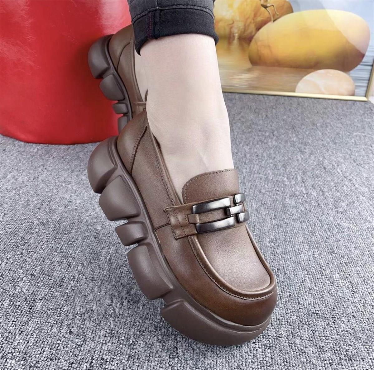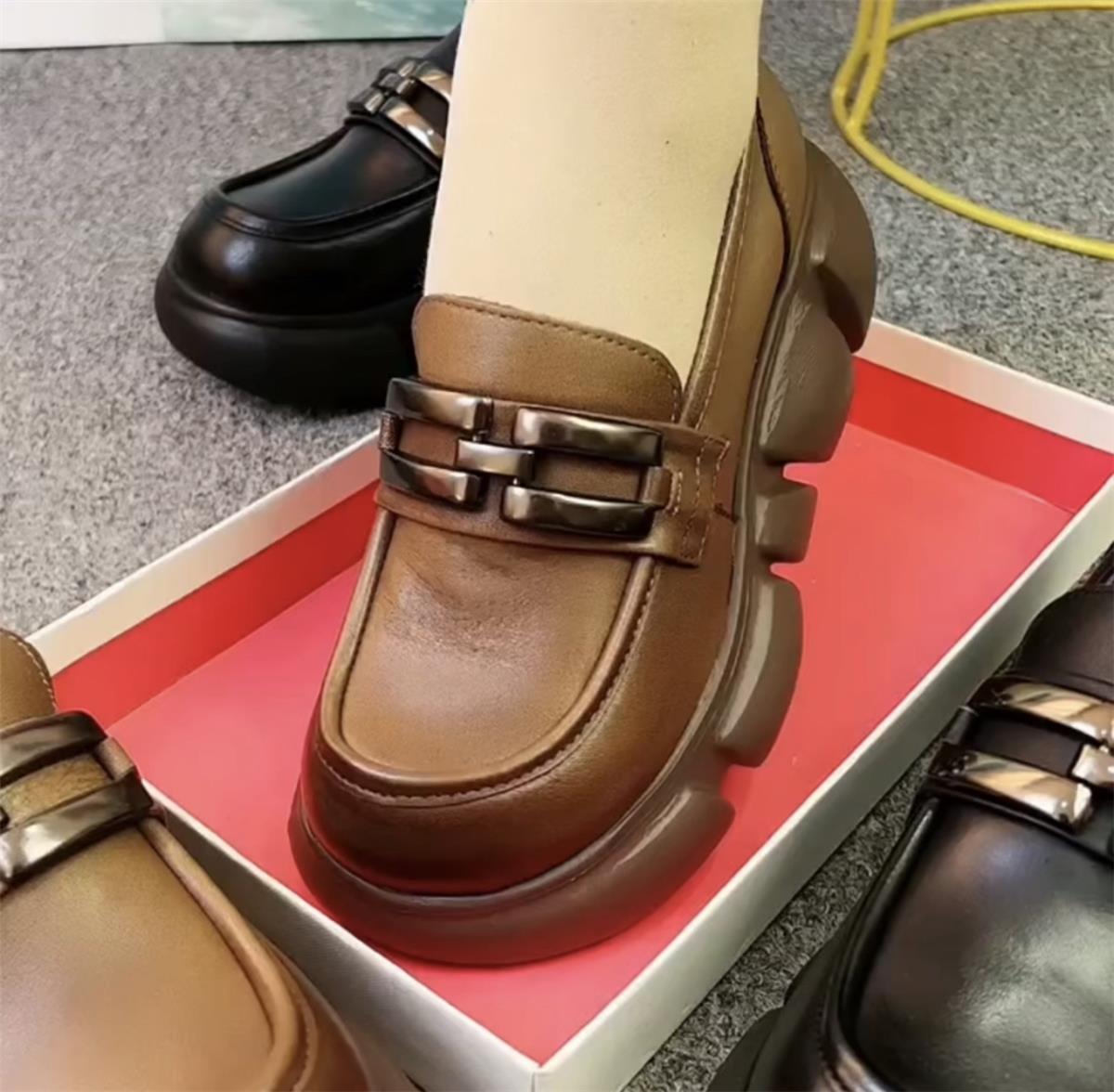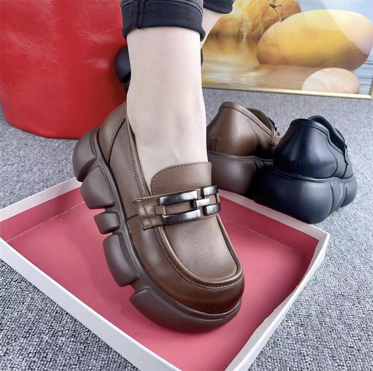 Verano y otoño 2024 nuevos zapatos de mujer de cuero suave con zapatos de cuero pequeños aumentando la altura de los zapatos Lefour de estilo británico un solo zapato