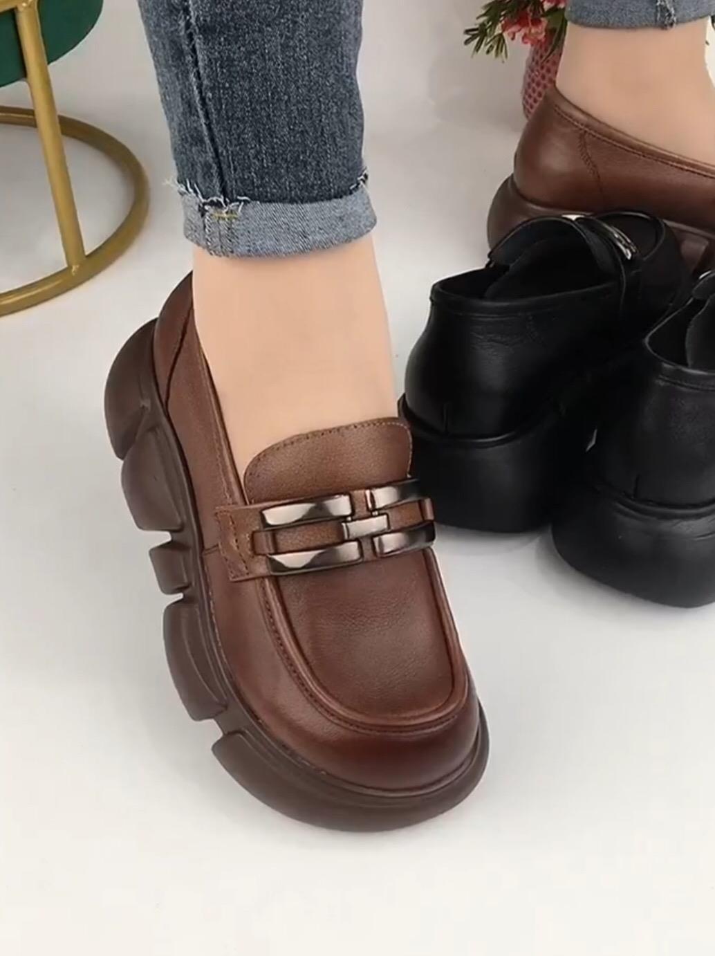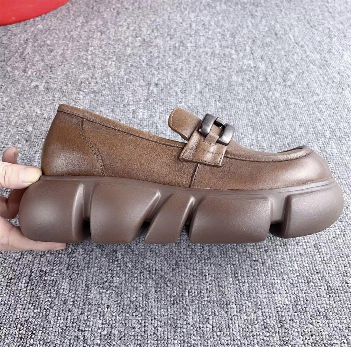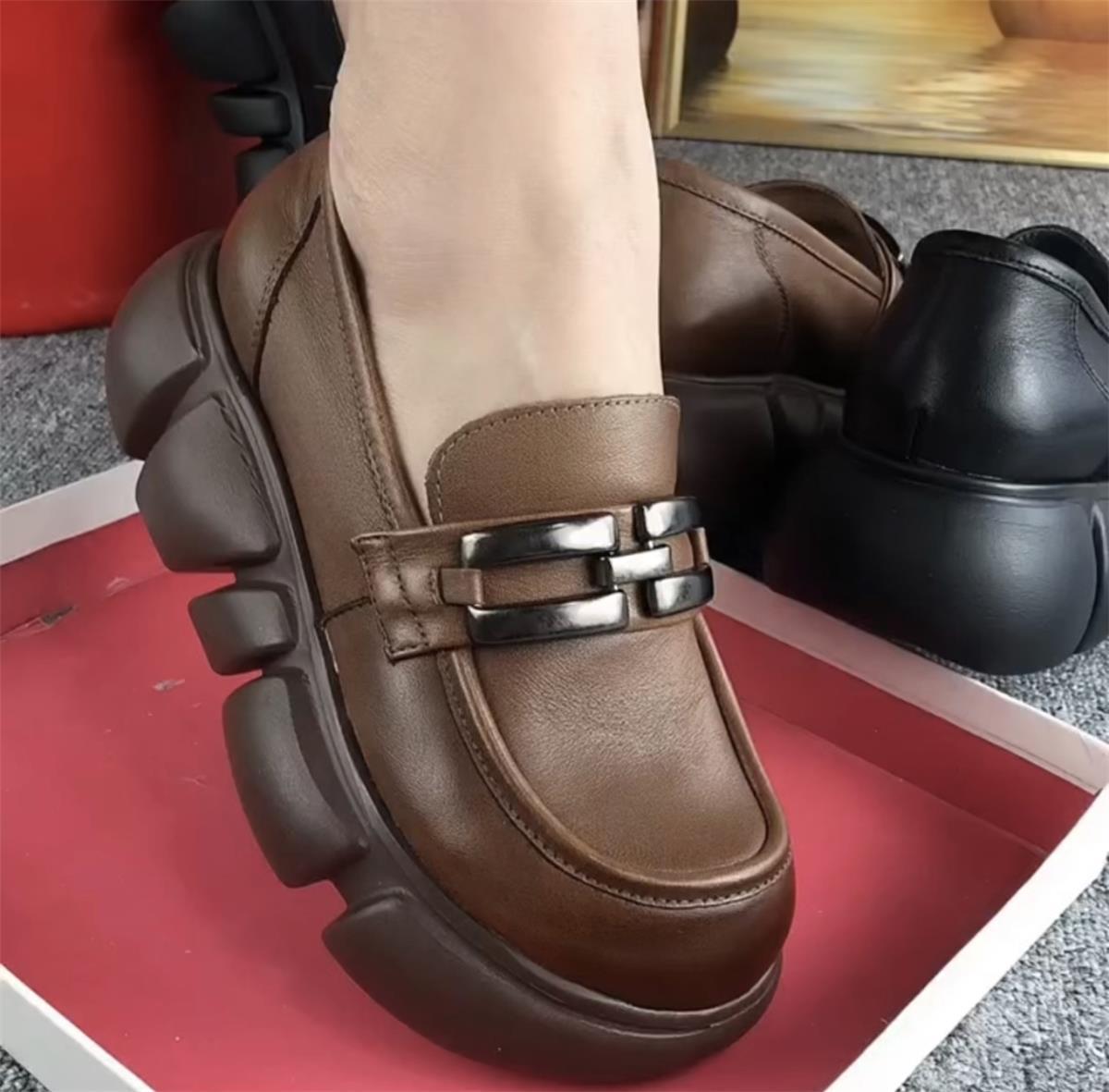 Verano y otoño 2024 nuevos zapatos de mujer de cuero suave con zapatos de cuero pequeños aumentando la altura de los zapatos Lefour de estilo británico un solo zapato