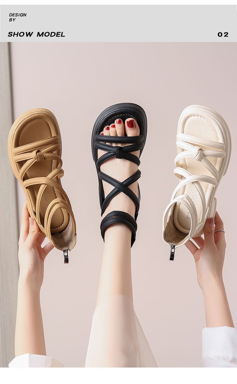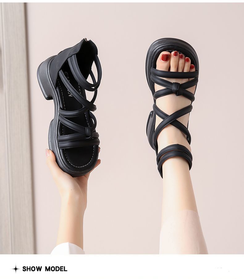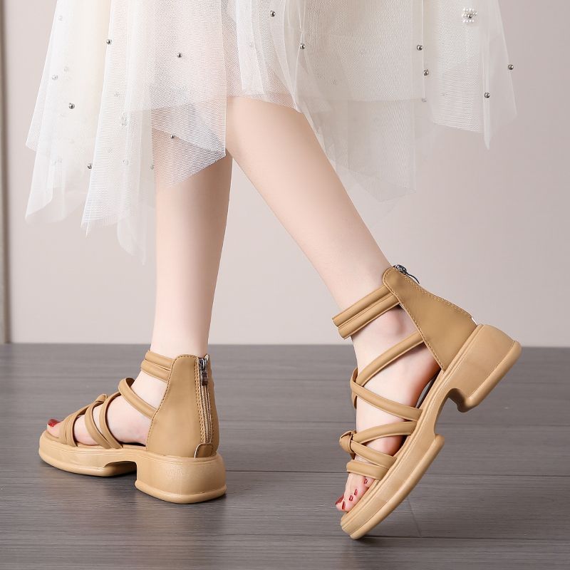 Sandalias de mujer de verano 2024 nuevos zapatos romanos de suela gruesa de hadas con falda de tacones gruesos zapatillas de playa