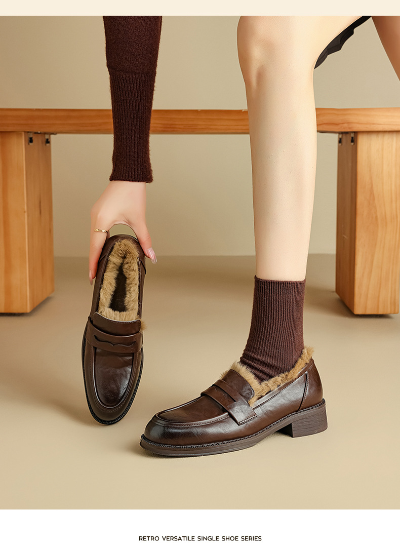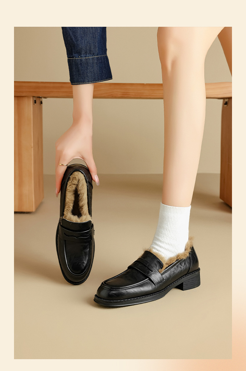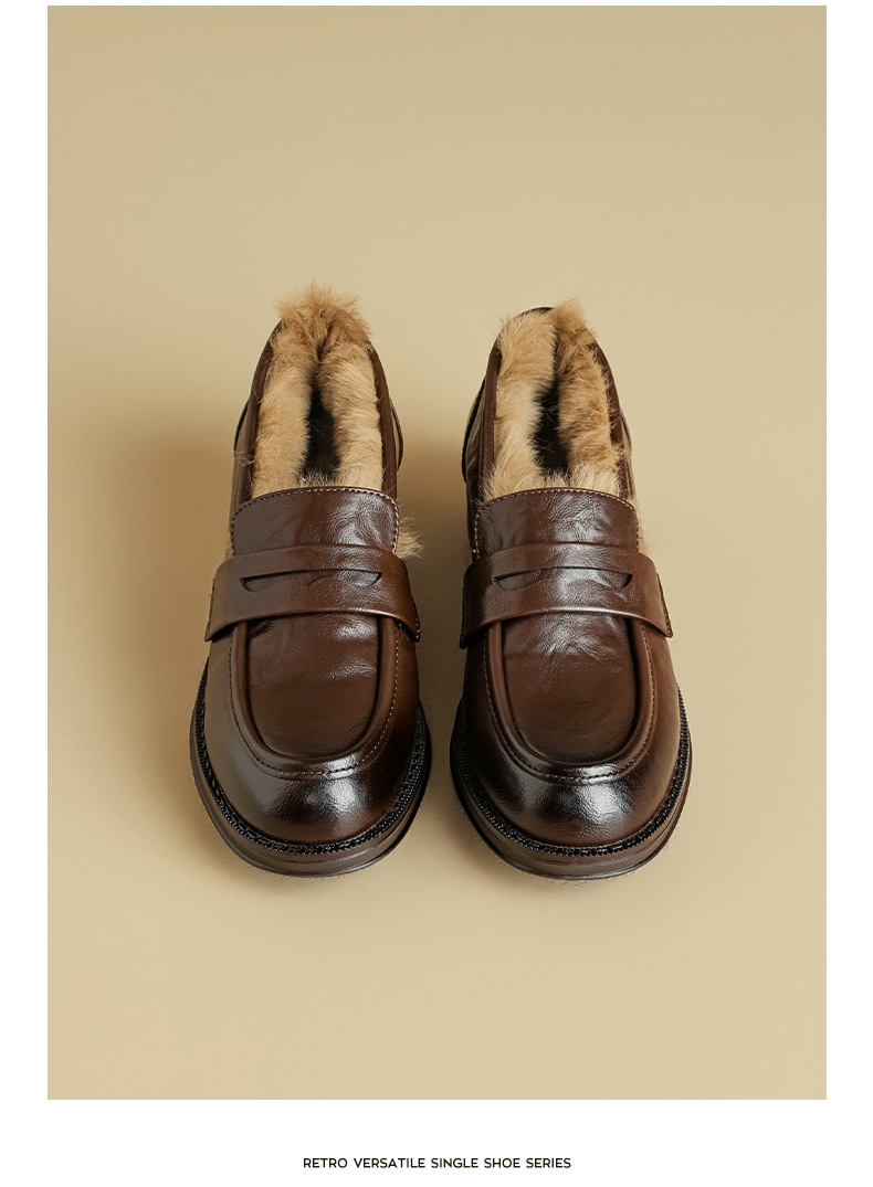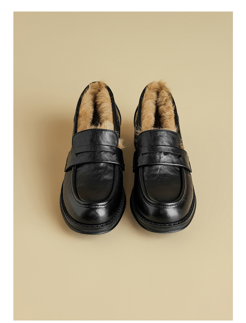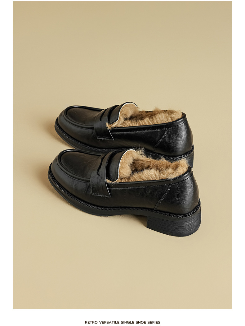 Zapatos de Lefour de Deng Xiaoping 2025 nuevos zapatos de invierno negros suaves británicos zapatos de algodón retro