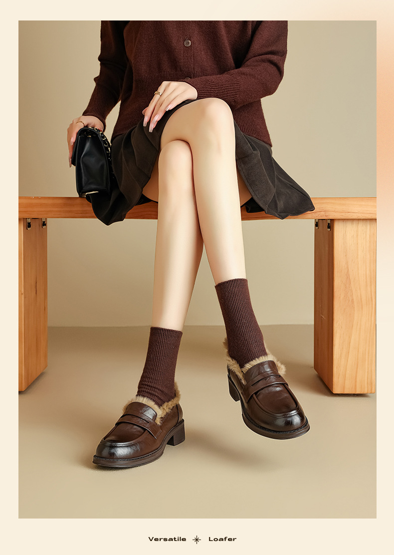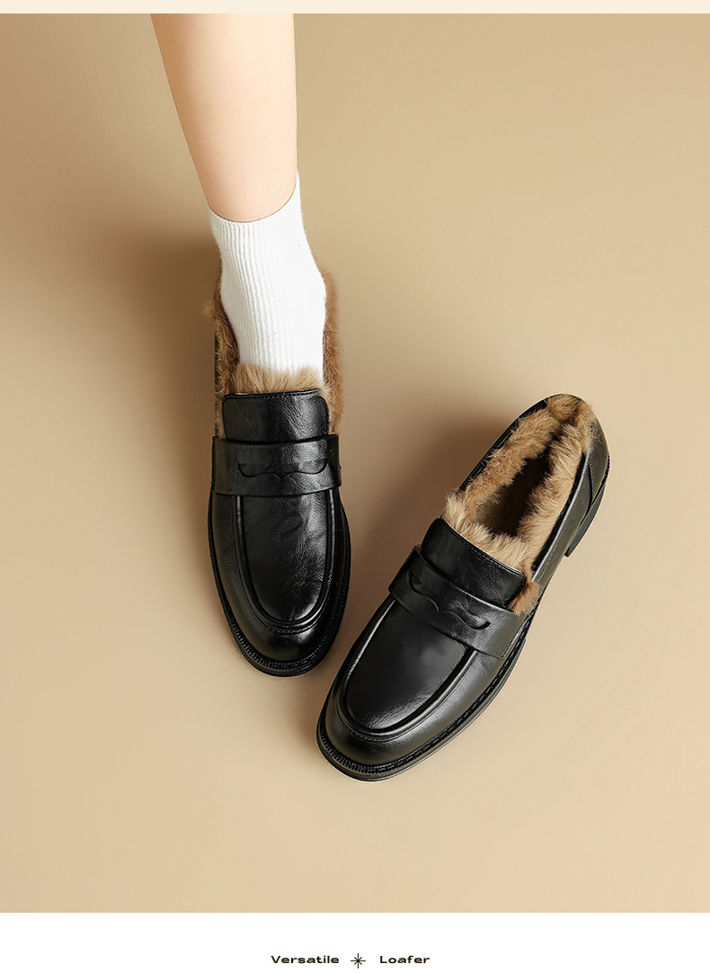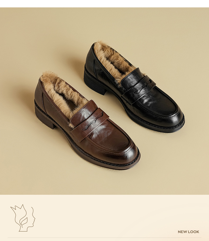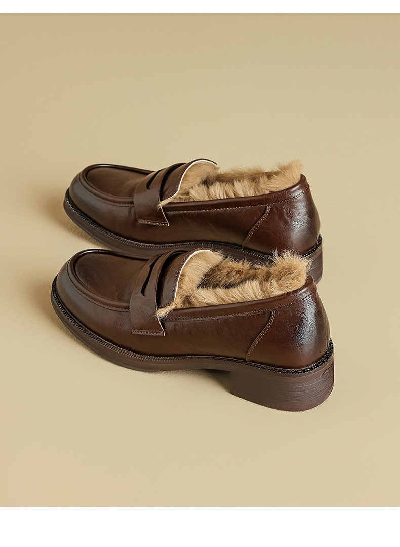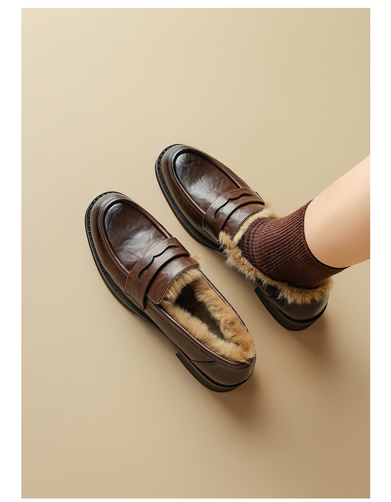 Zapatos de Lefour de Deng Xiaoping 2025 nuevos zapatos de invierno negros suaves británicos zapatos de algodón retro