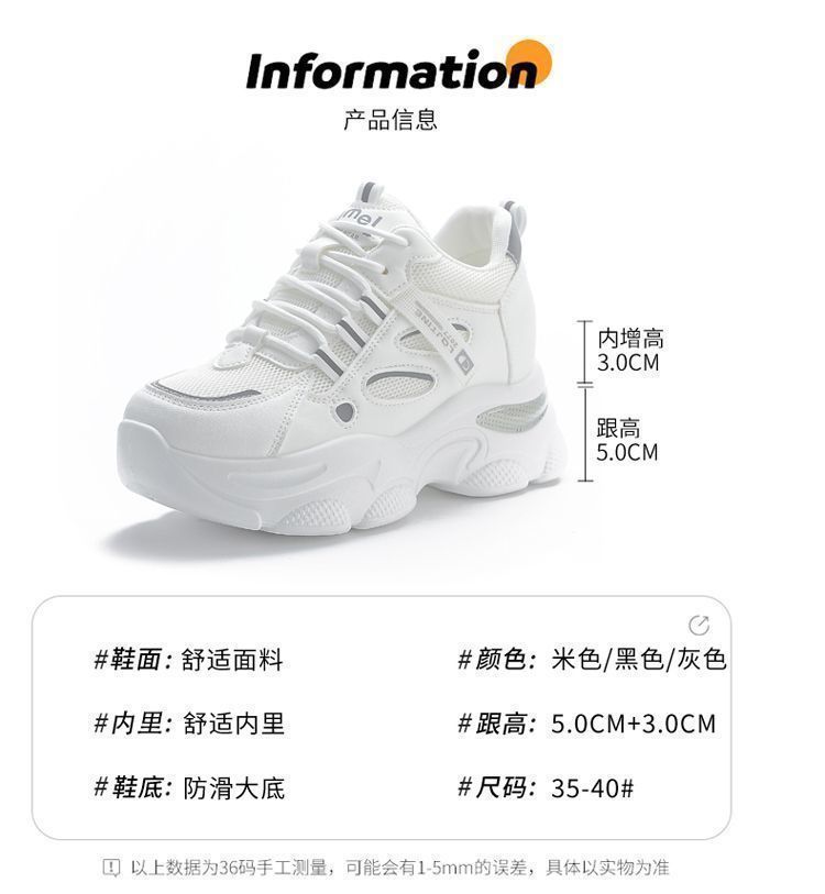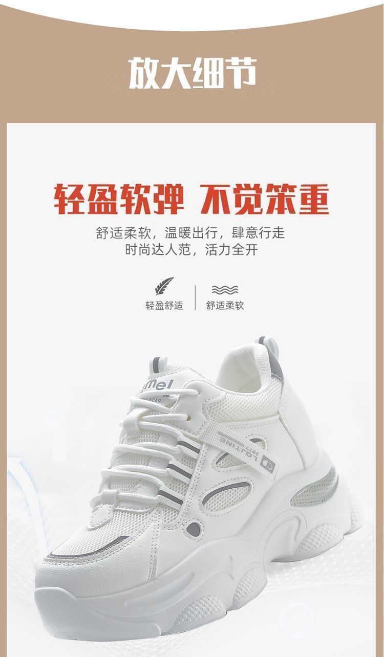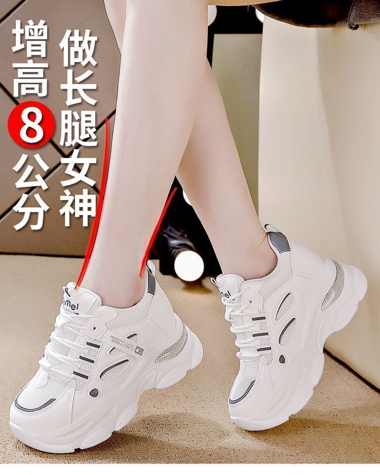 2024 nuevos zapatos de altura interior para mujeres ligeras con suela gruesa explosiva primavera y otoño versátil zapatos deportivos casuales pequeños