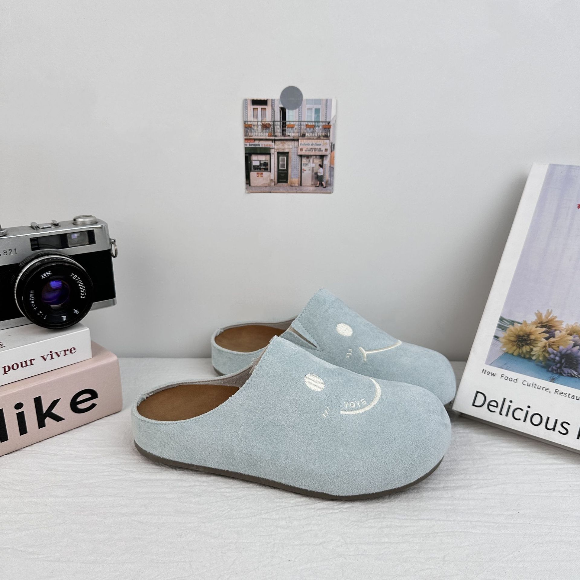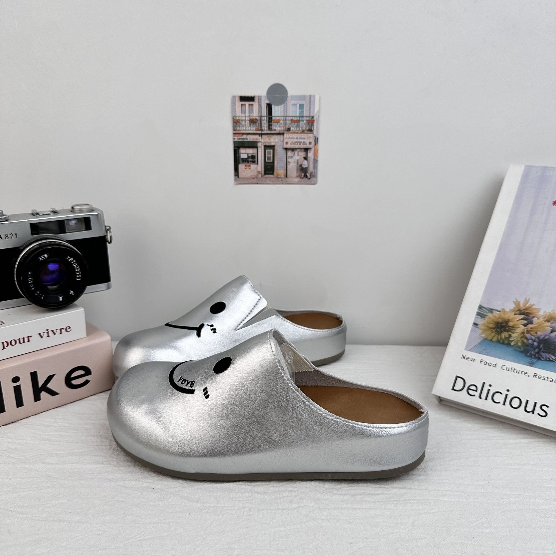 Zapatillas de mujer Yuanbo verano delgado Bocken zapatillas con falda media zapatillas 2025 nuevos zapatos blancos