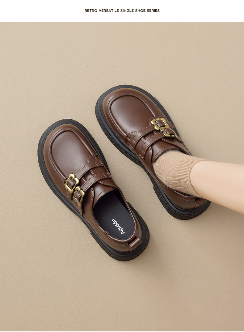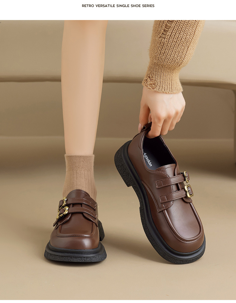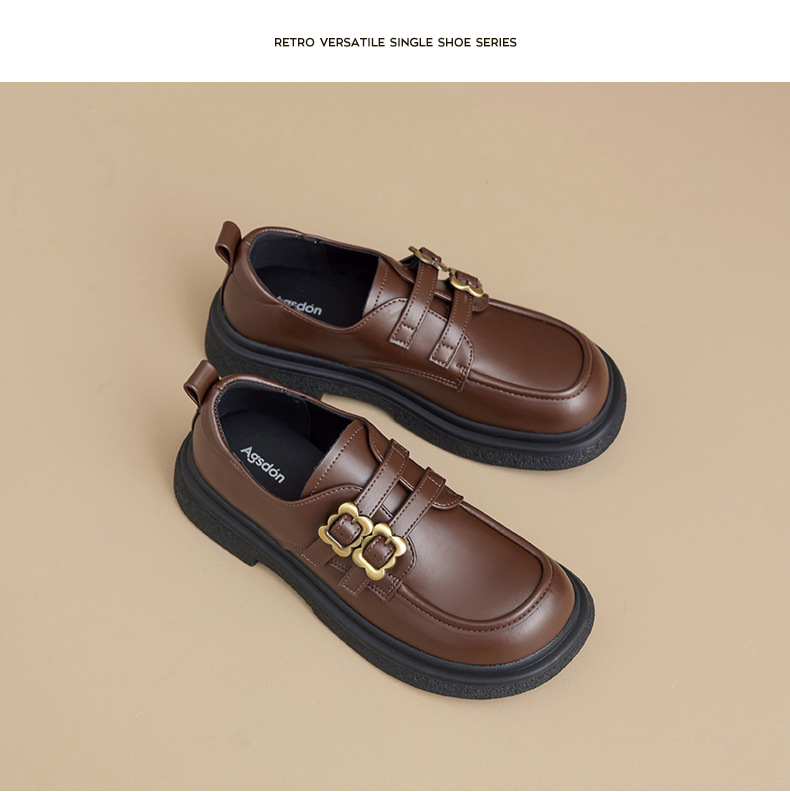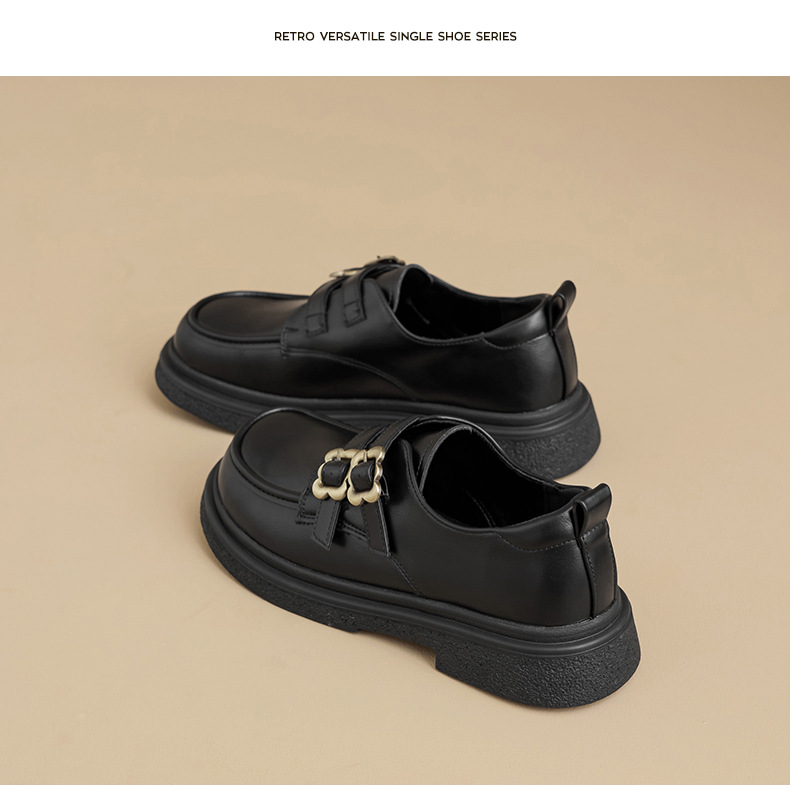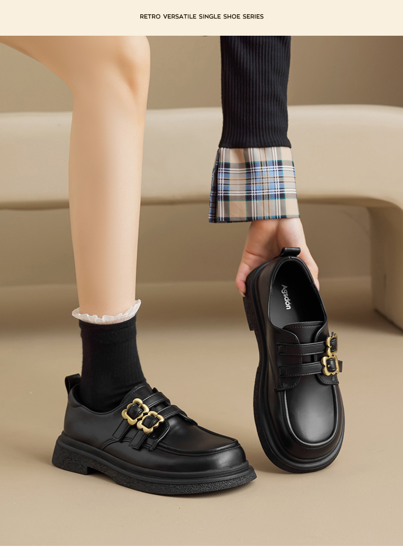 Augusto Lion Black Lefour zapatos para mujeres 2025 nuevo otoño suela suave no se cansa de los pies un pedazo de zapatos de cuero estilo británico