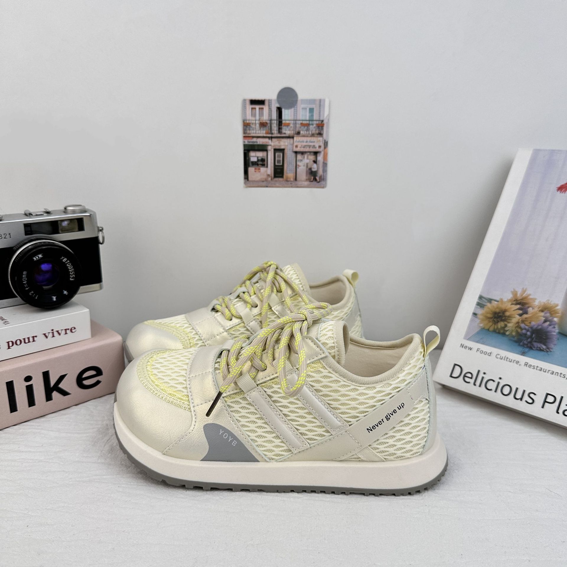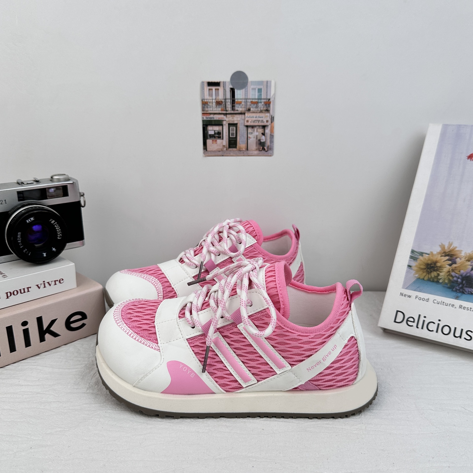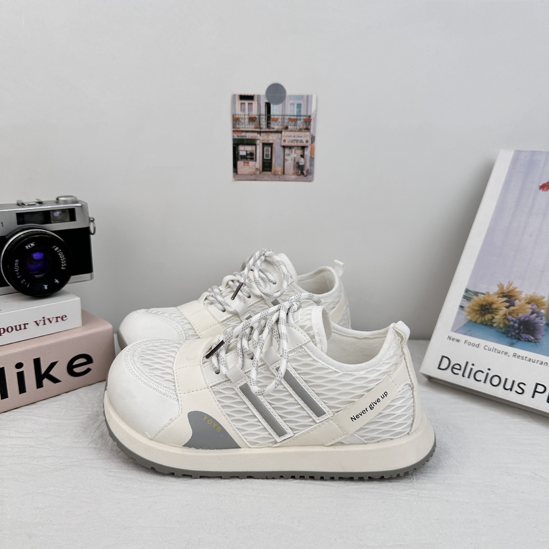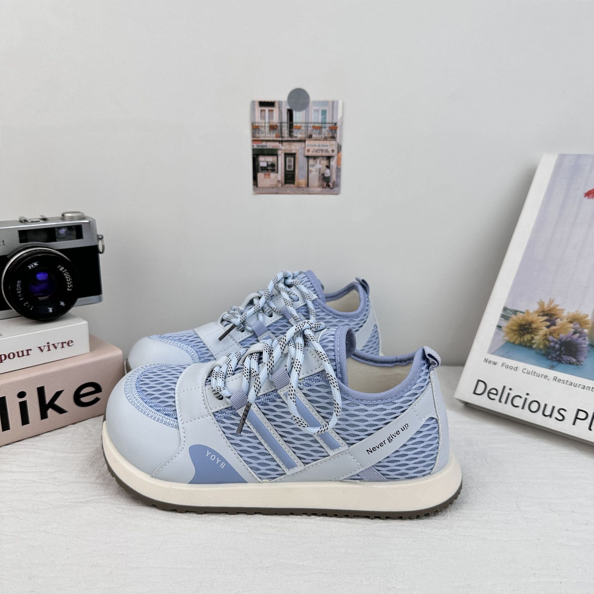 Zapatos casuales transpirables de malla de ondas distantes para mujeres 2025 verano nuevo estilo de moda correa de cabeza redonda con suela suave zapatos de skate portátiles