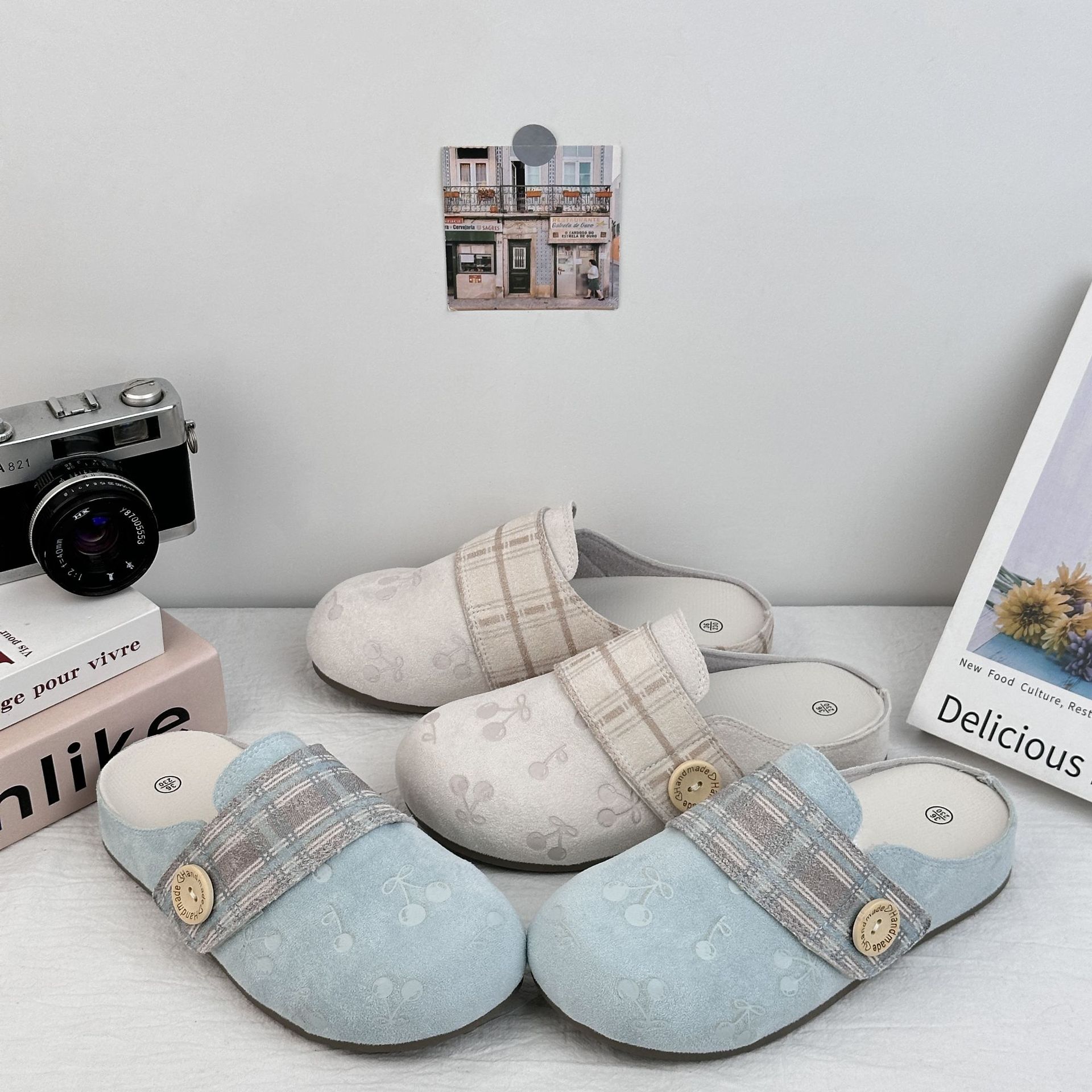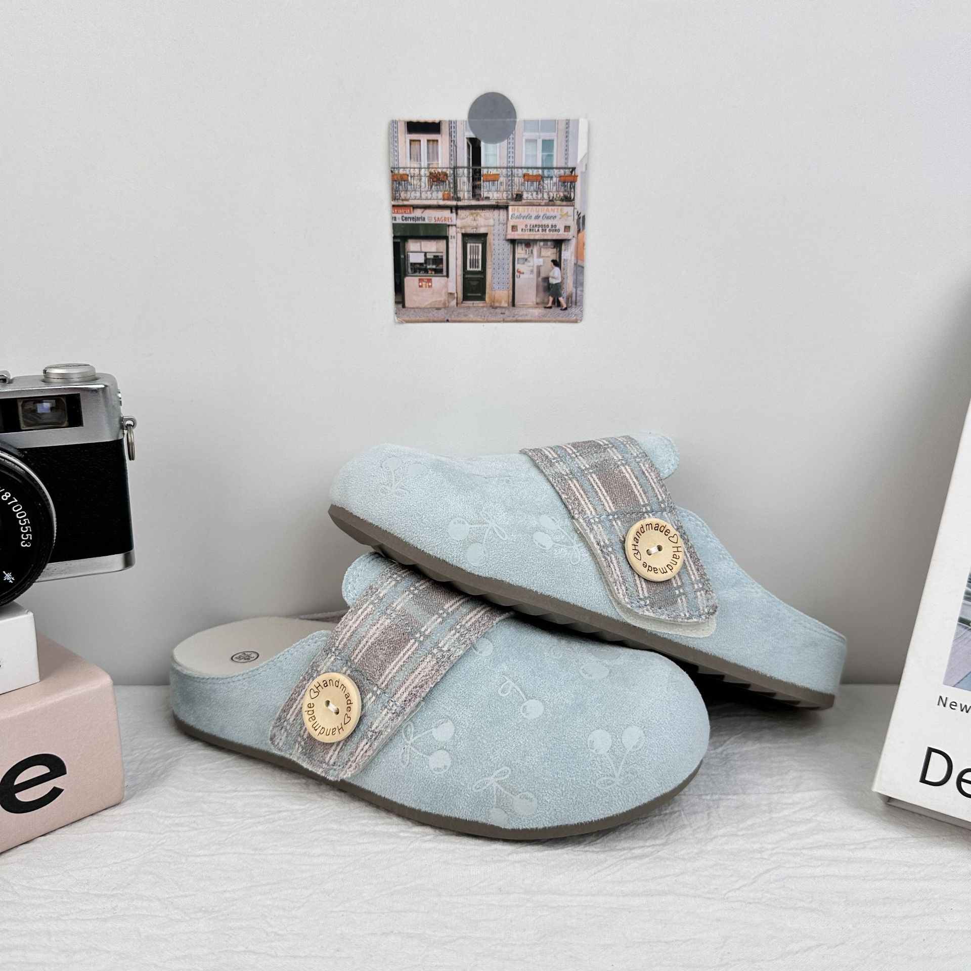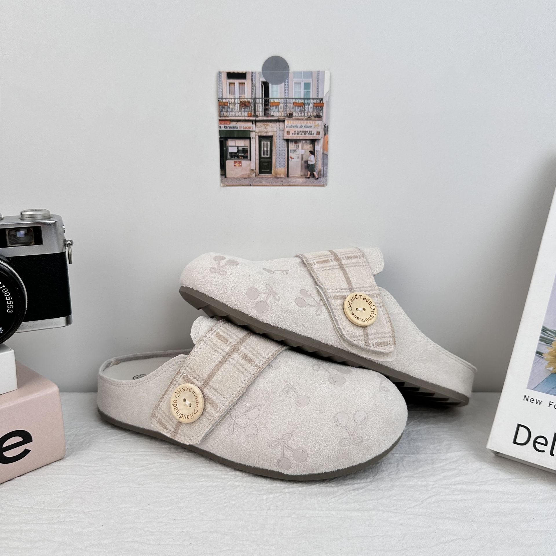 Yuanbo impresión de cereza cabeza media zapatillas mujeres 2025 verano nuevos zapatos Birken perezosos un pie sandalias