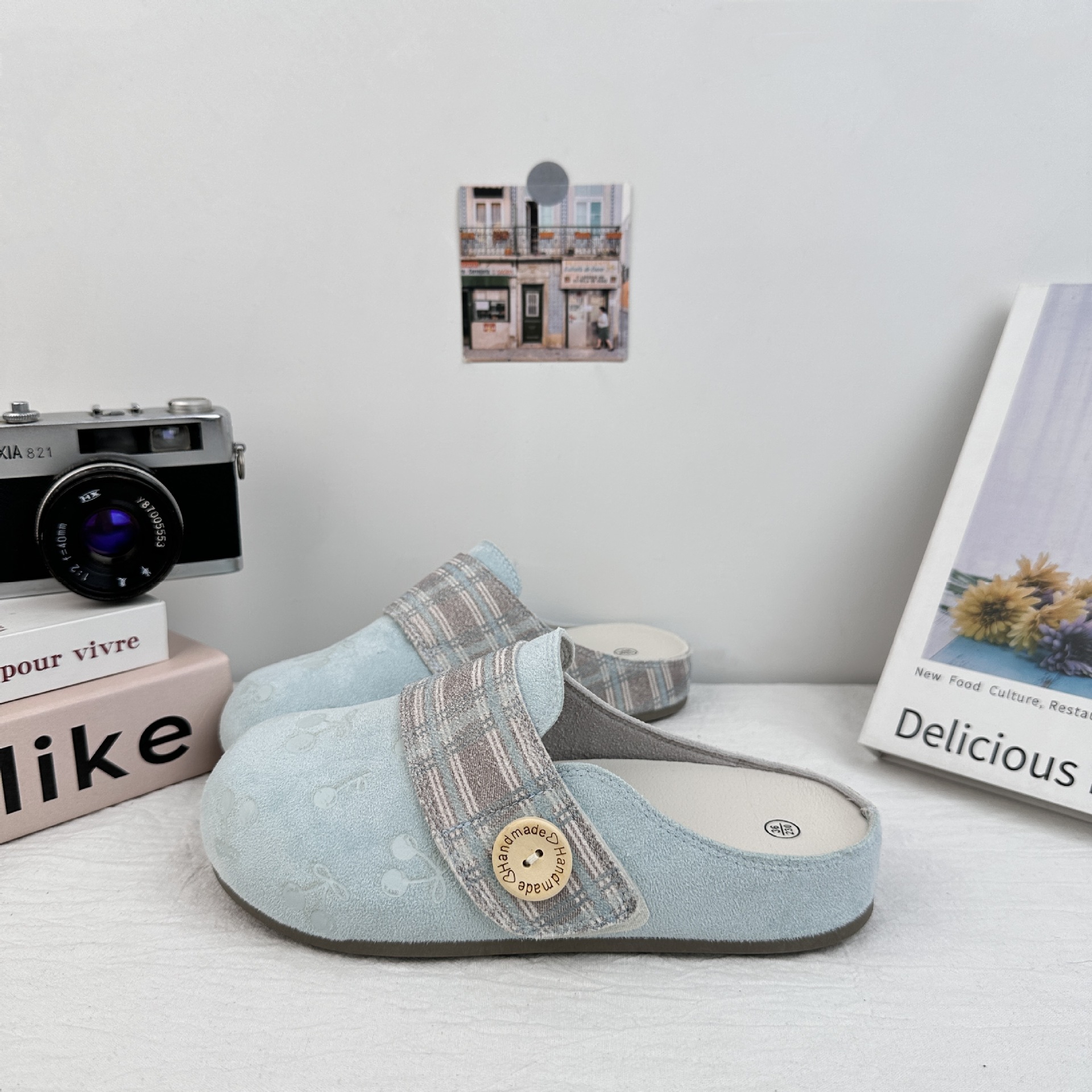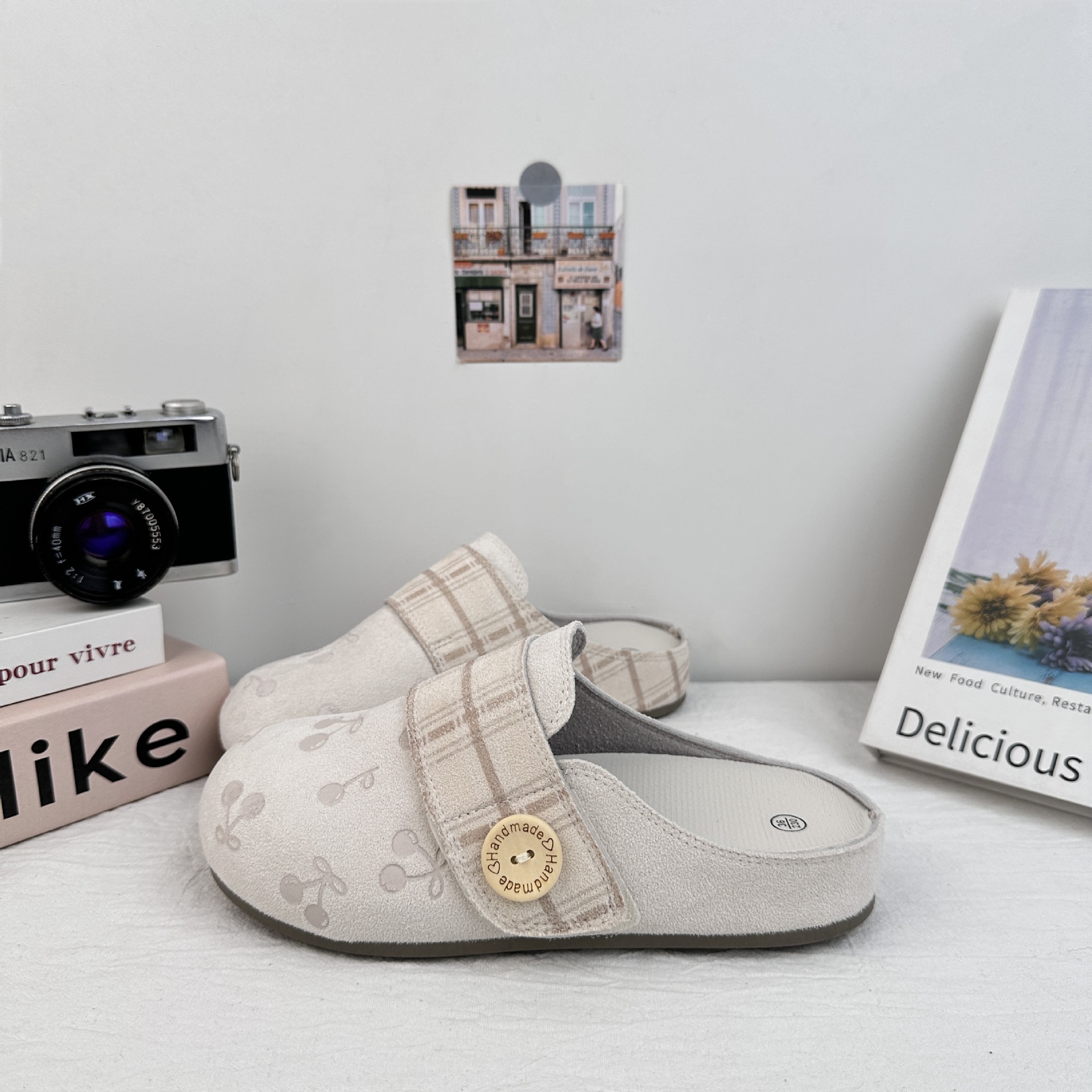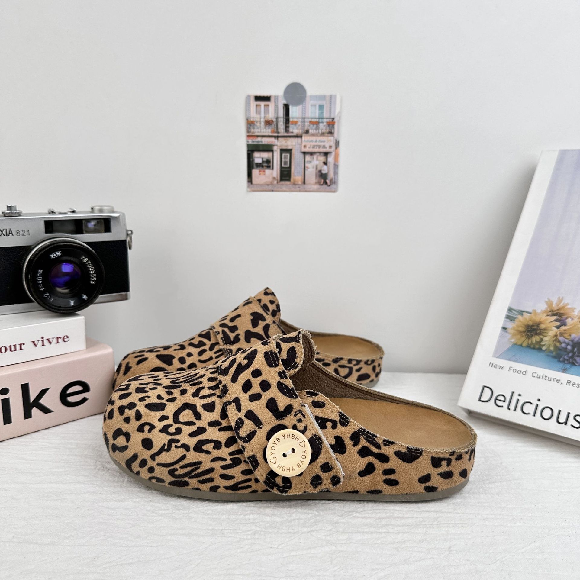 Yuanbo impresión de cereza cabeza media zapatillas mujeres 2025 verano nuevos zapatos Birken perezosos un pie sandalias