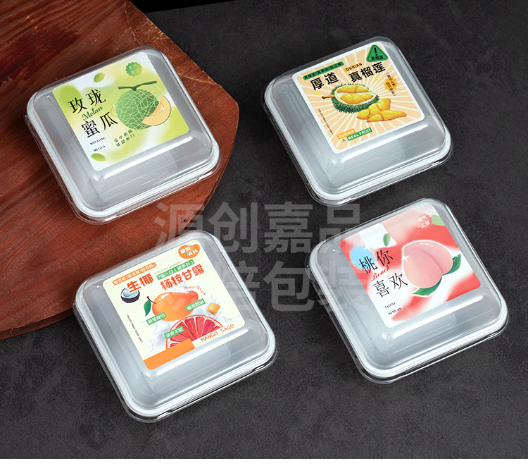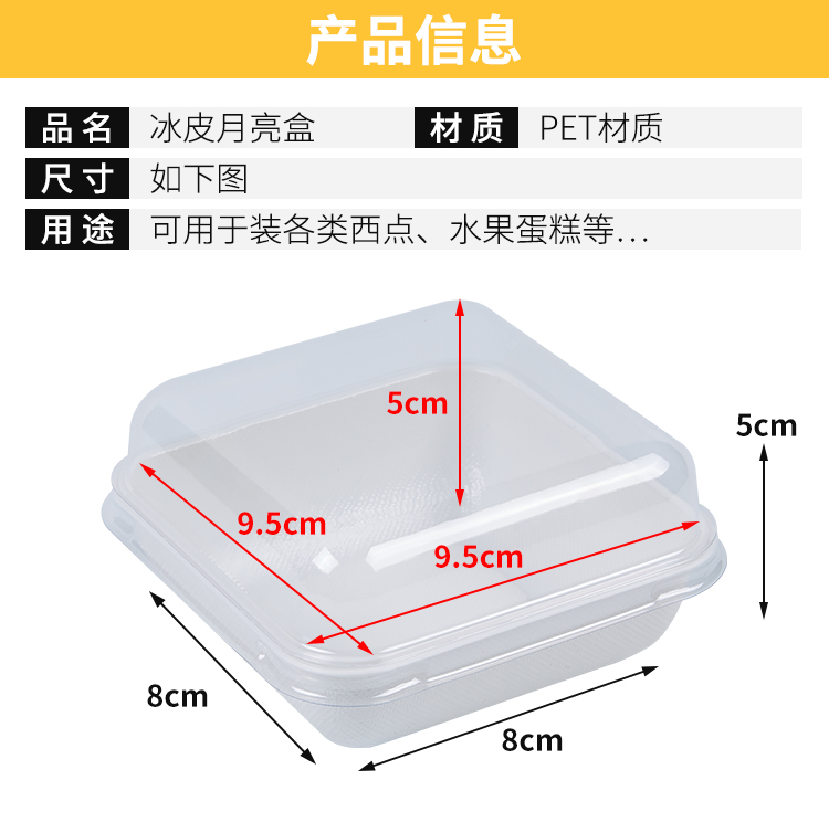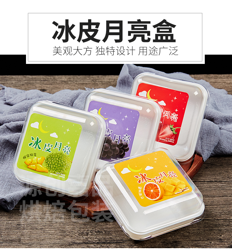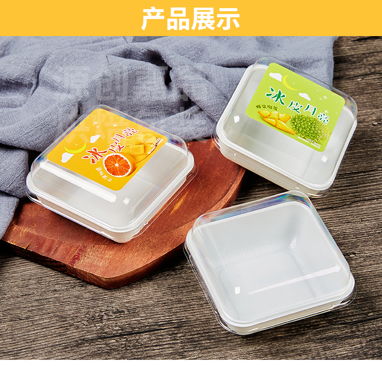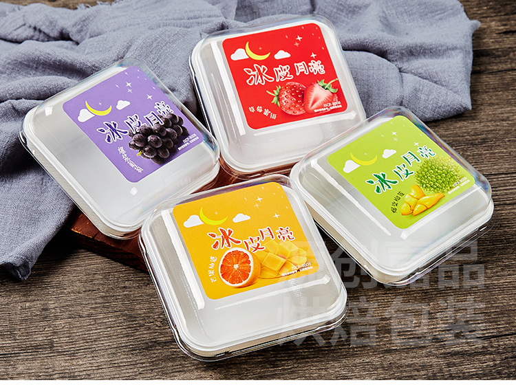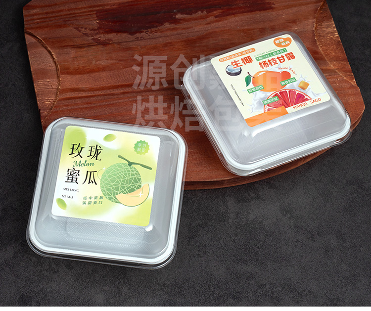 Caja de pastel de luna de hielo horneado caja de embalaje cuadrada de banberber, caja de embalaje de mousse transparente para postre de nieve, punto oeste