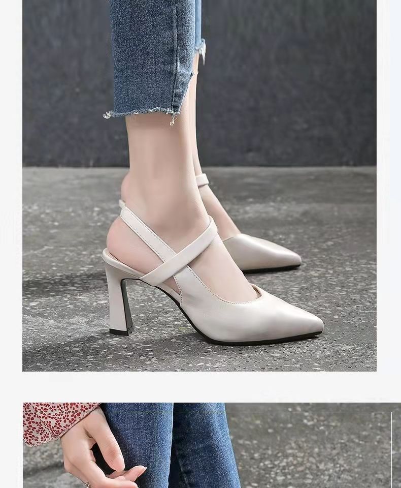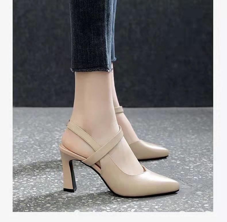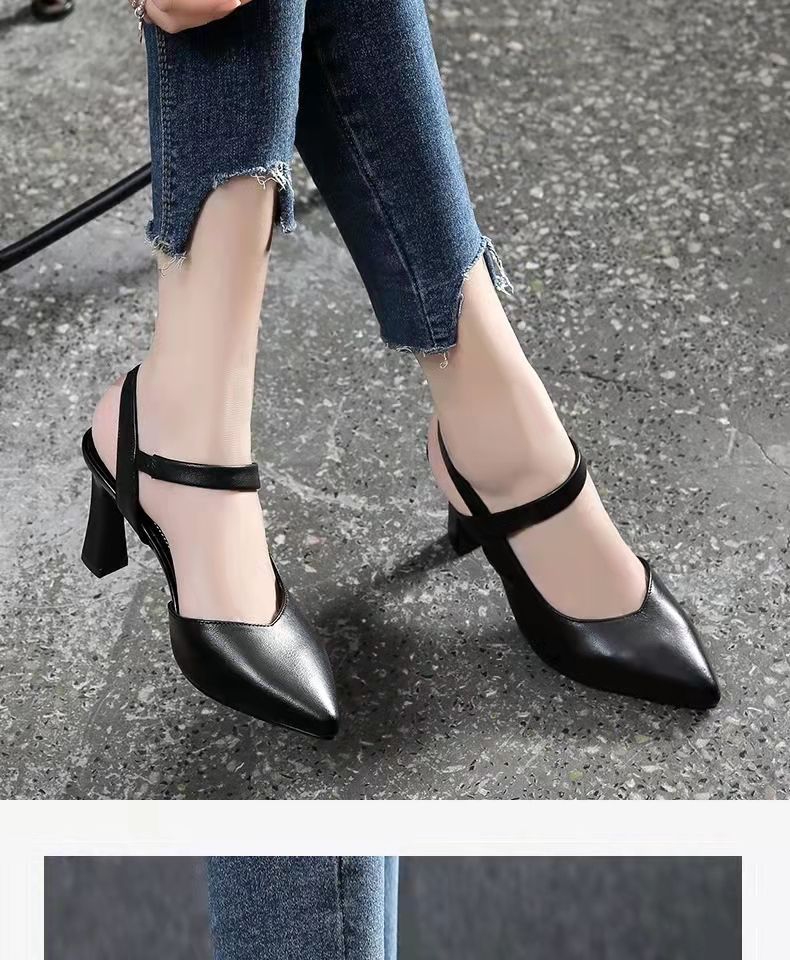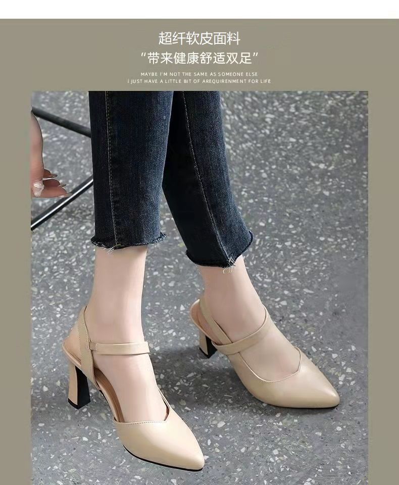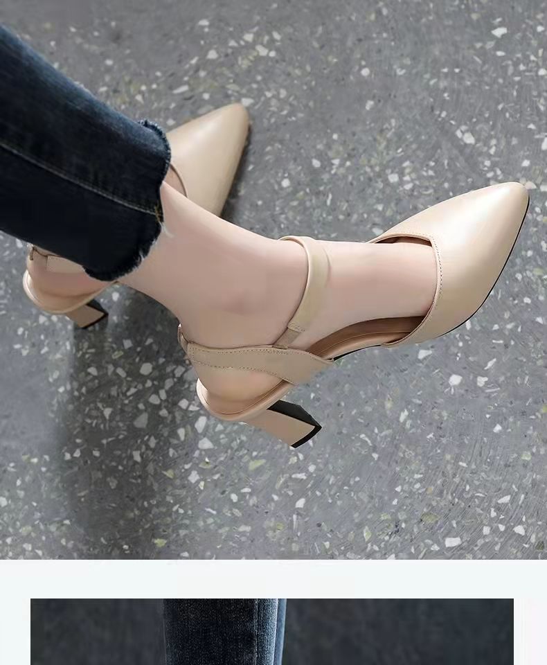 2024 verano nuevos zapatos de tacones altos de mujer punta de color sólido tacones gruesos versátiles temperamento de una palabra con tacones altos de mujer