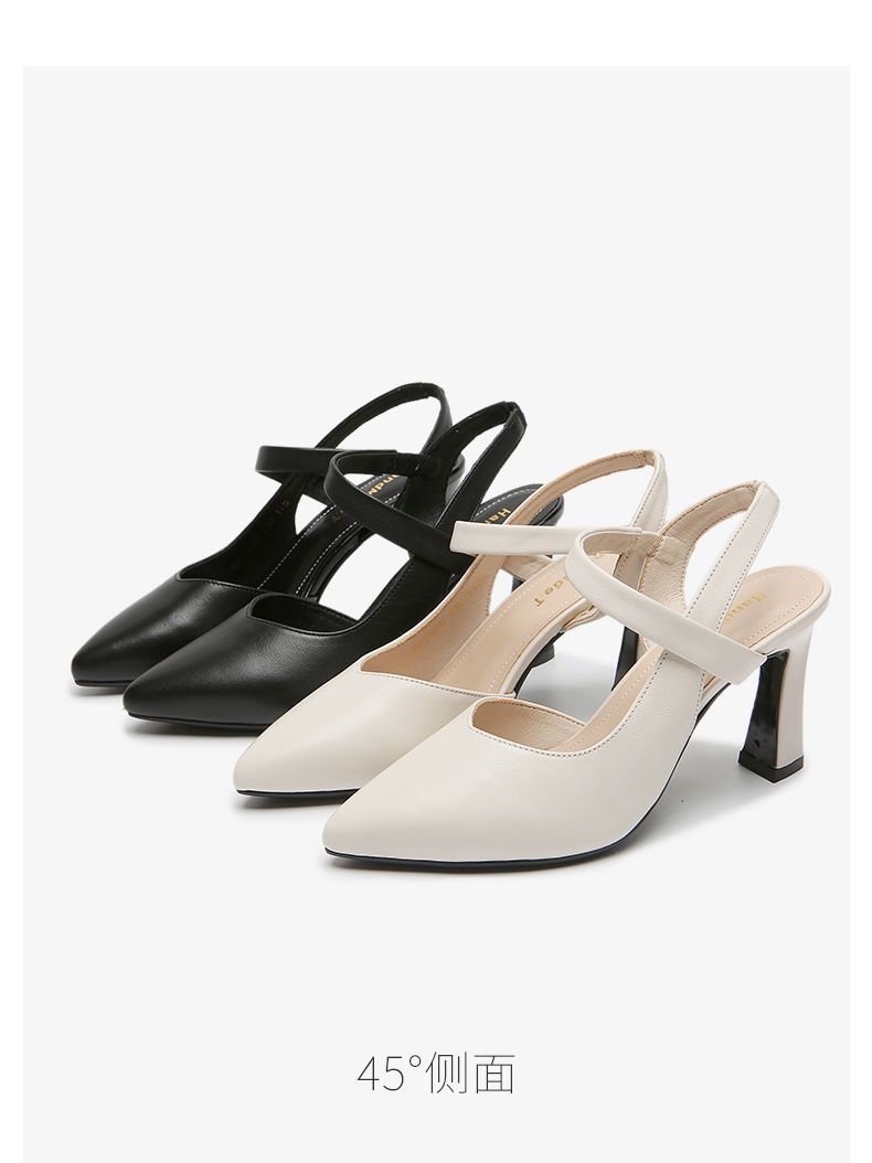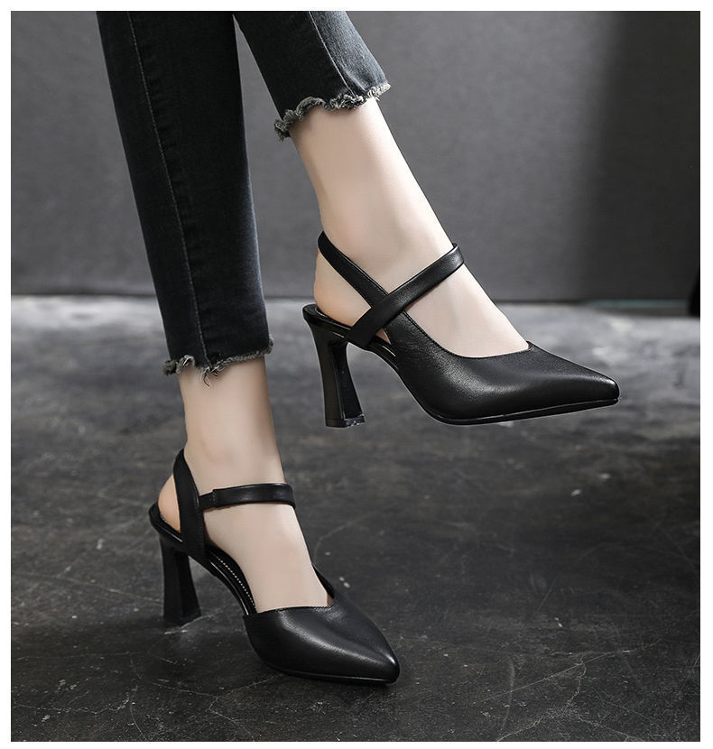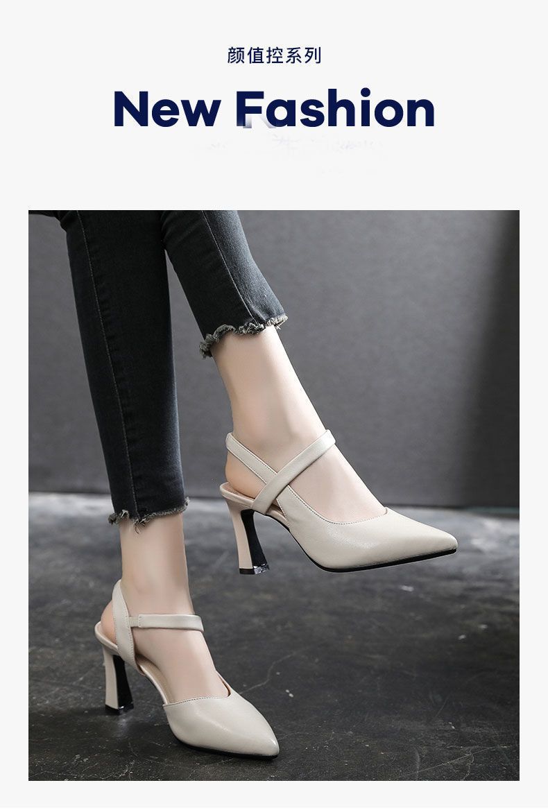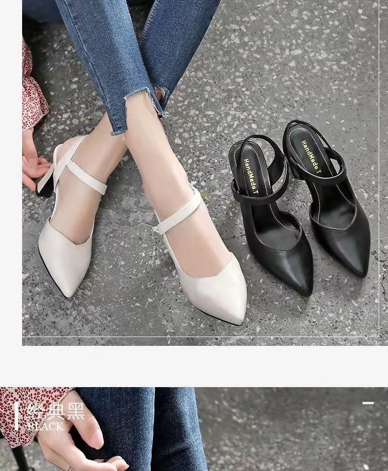 2024 verano nuevos zapatos de tacones altos de mujer punta de color sólido tacones gruesos versátiles temperamento de una palabra con tacones altos de mujer