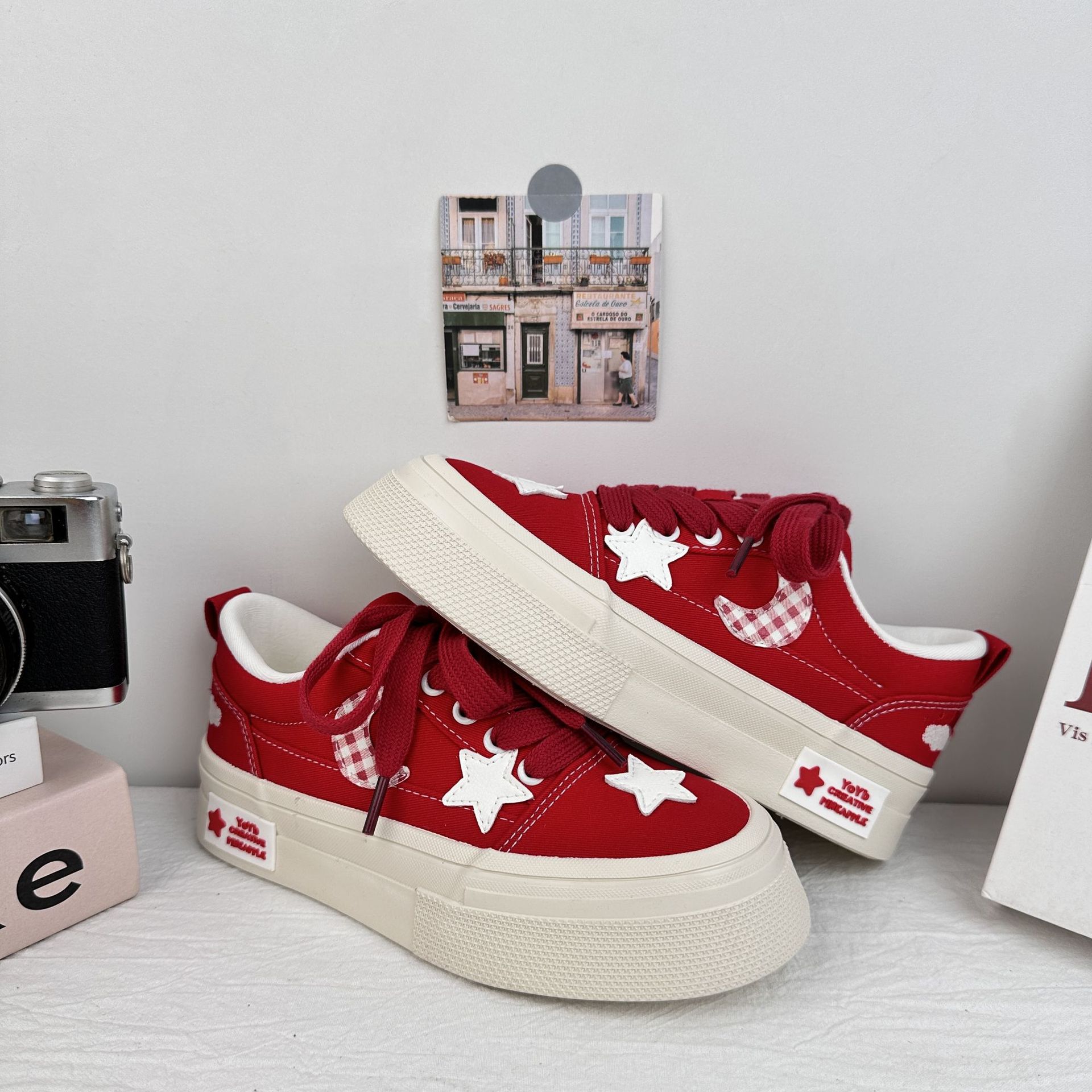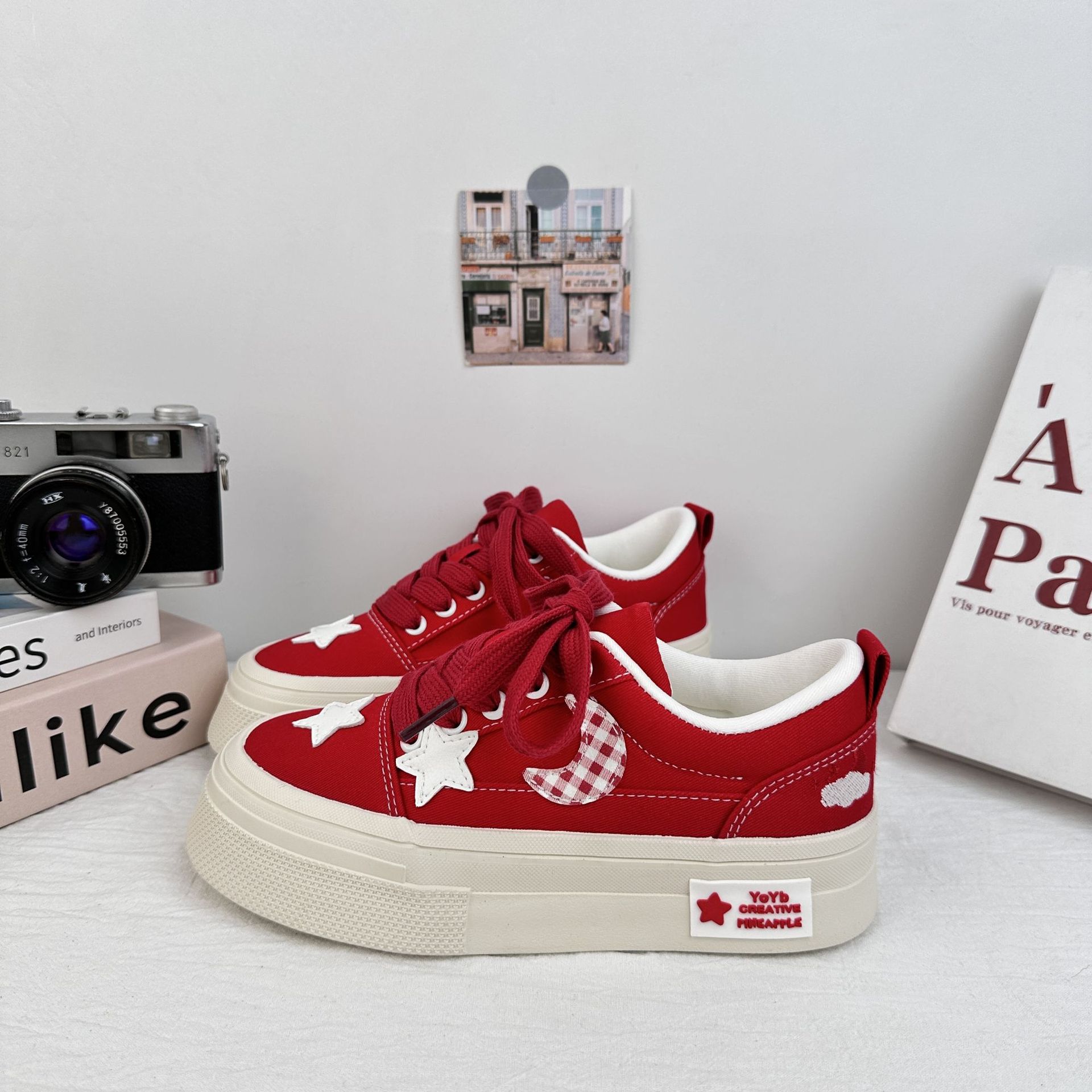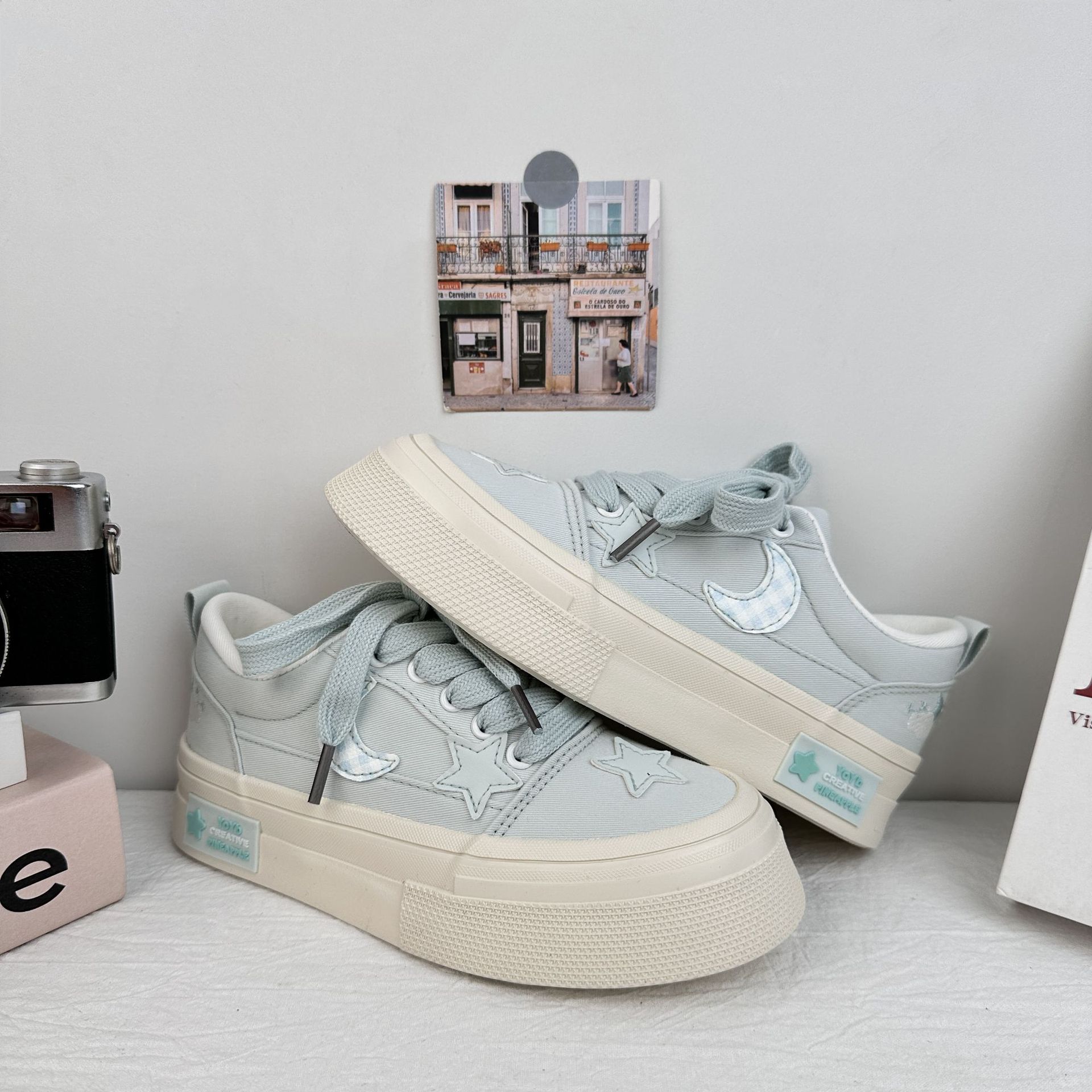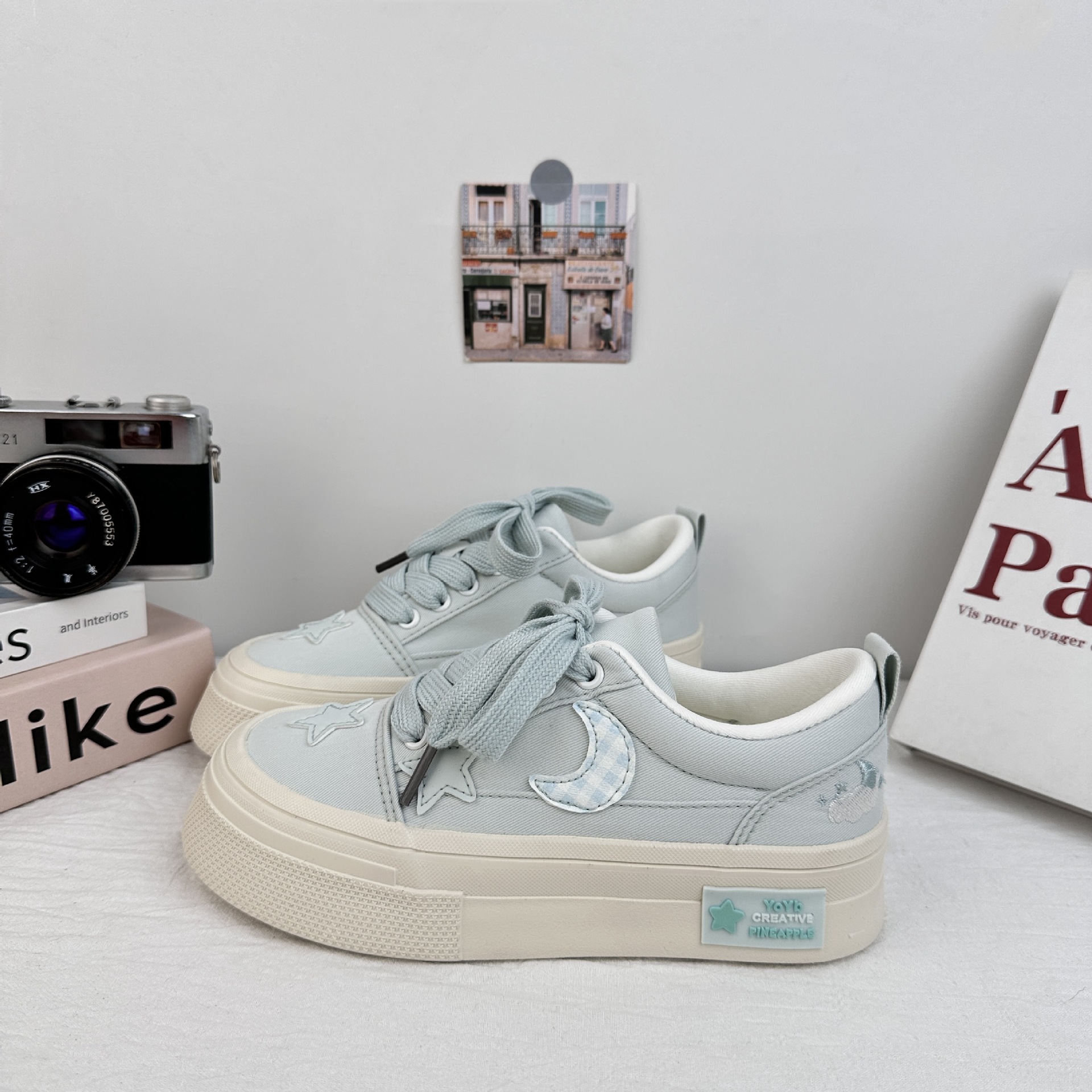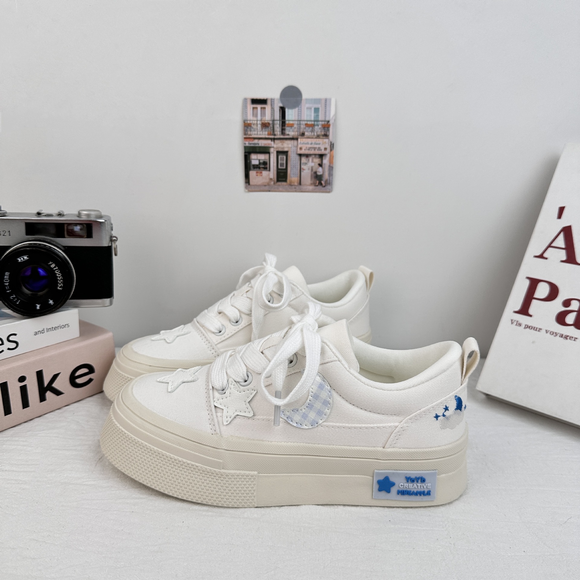 Farbo coreano estrellas zapatos de skate para mujeres 2025 nuevos zapatos blancos transpirables de verano con suela gruesa zapatos de lona variados