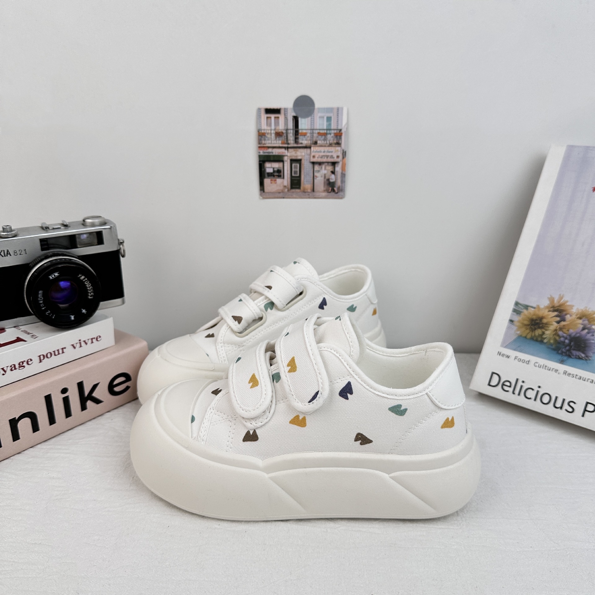 Zapatos de lona de ondas distantes para estudiantes de verano 2025 nuevo velcro con una sola gruesa con una falda zapatos blancos para mujeres