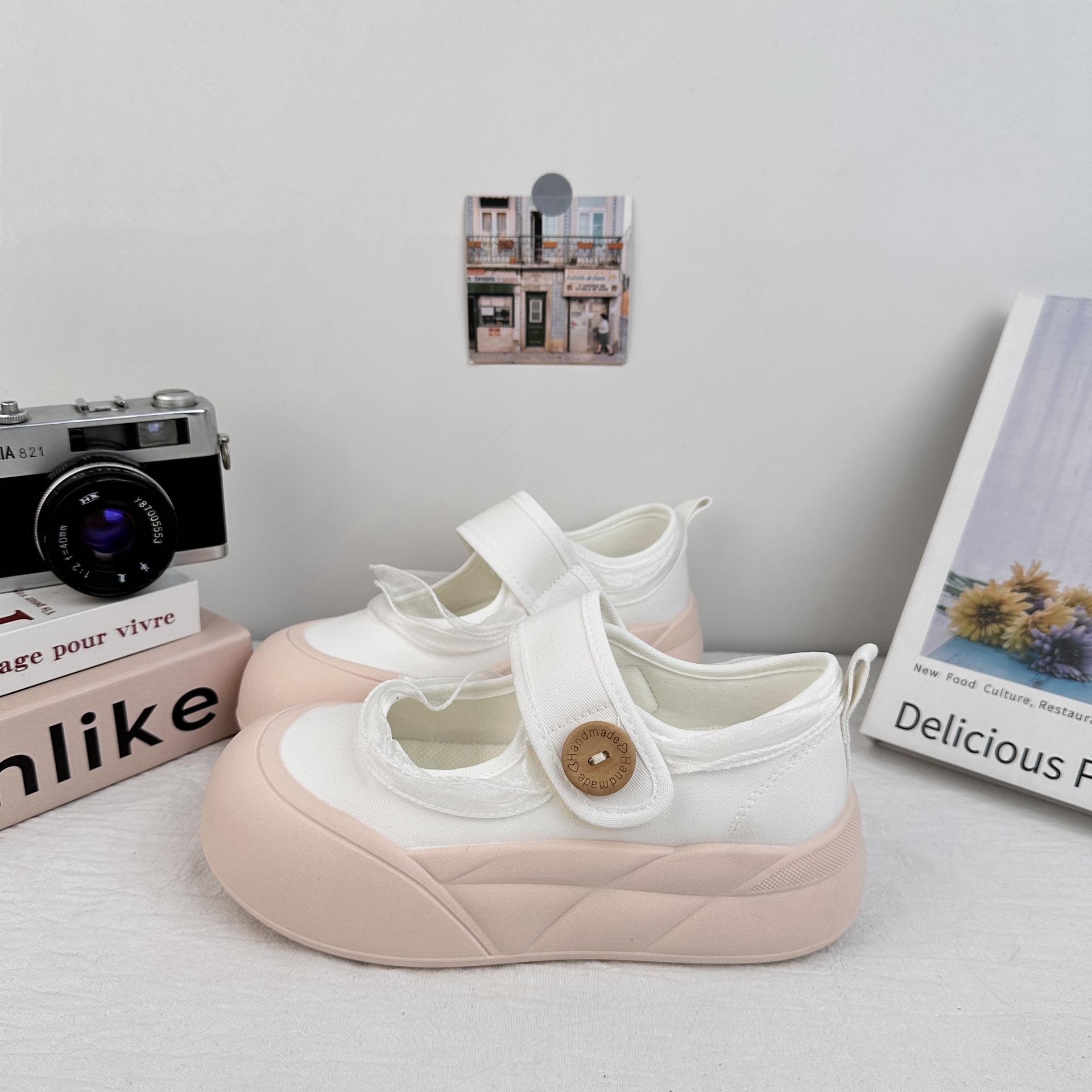 Yuanbo Mary Jane Shoes Mujer 2025 Nuevo estilo caliente Verano con falda Zapatos de boca baja Zapatos de velcro