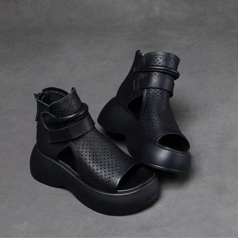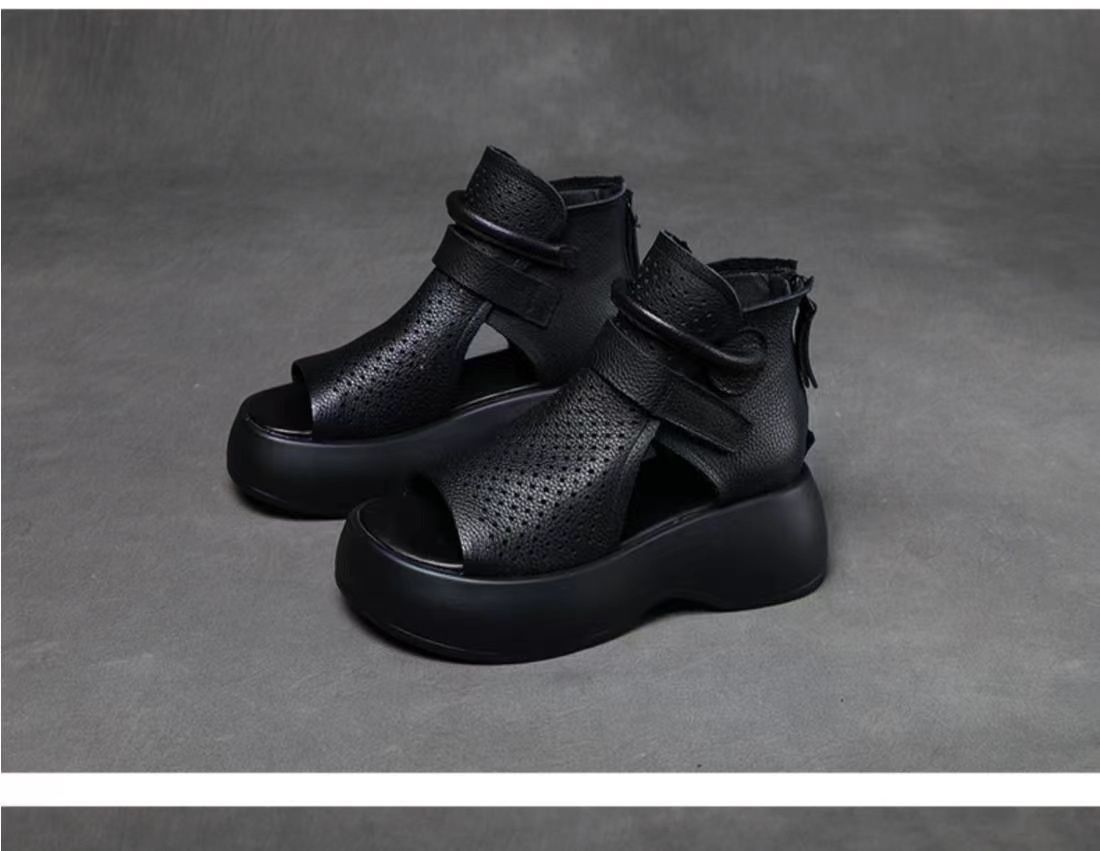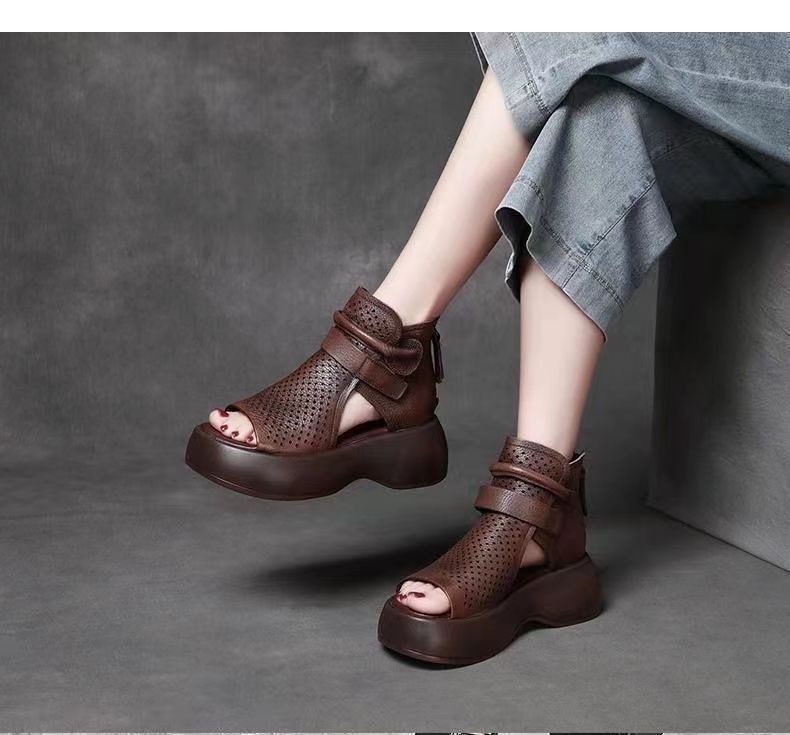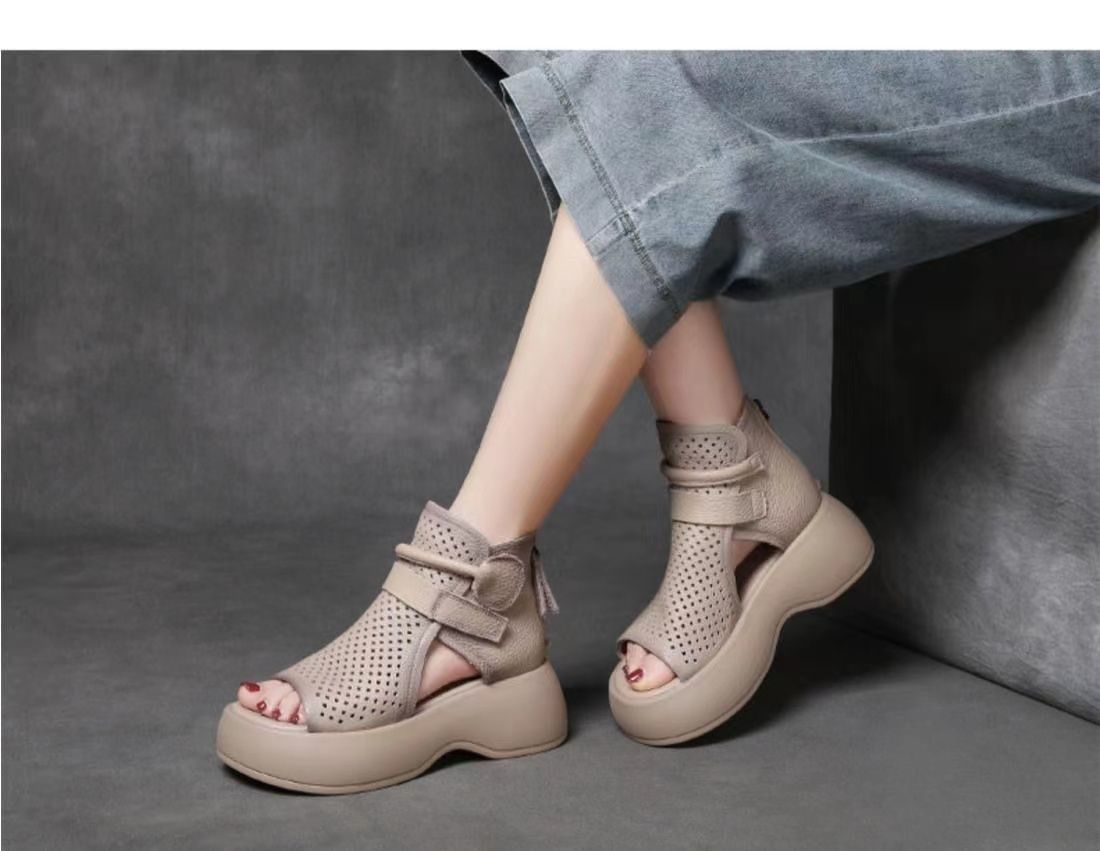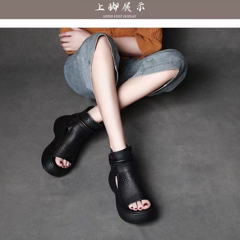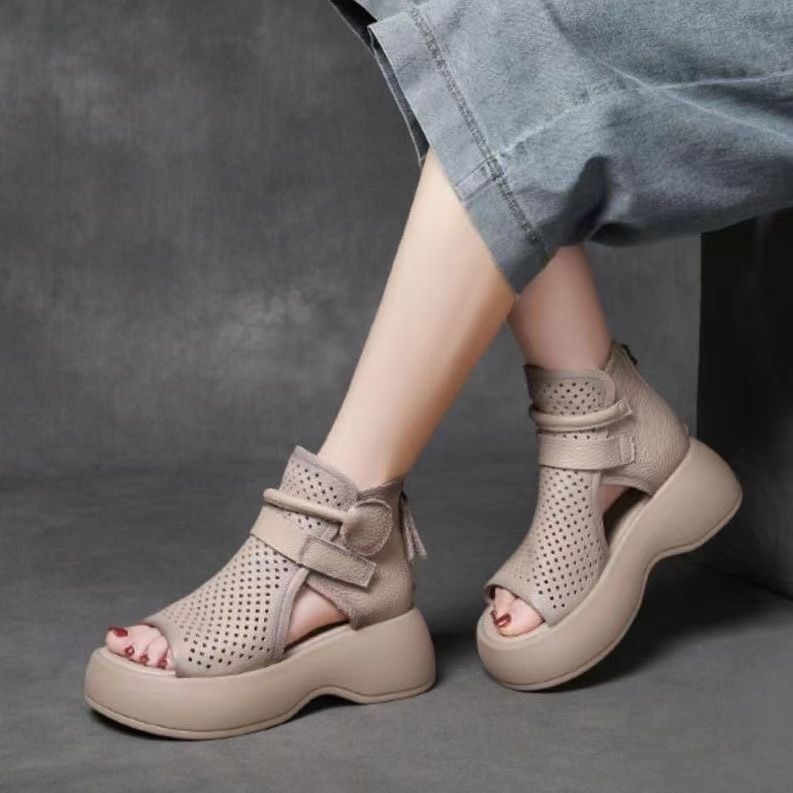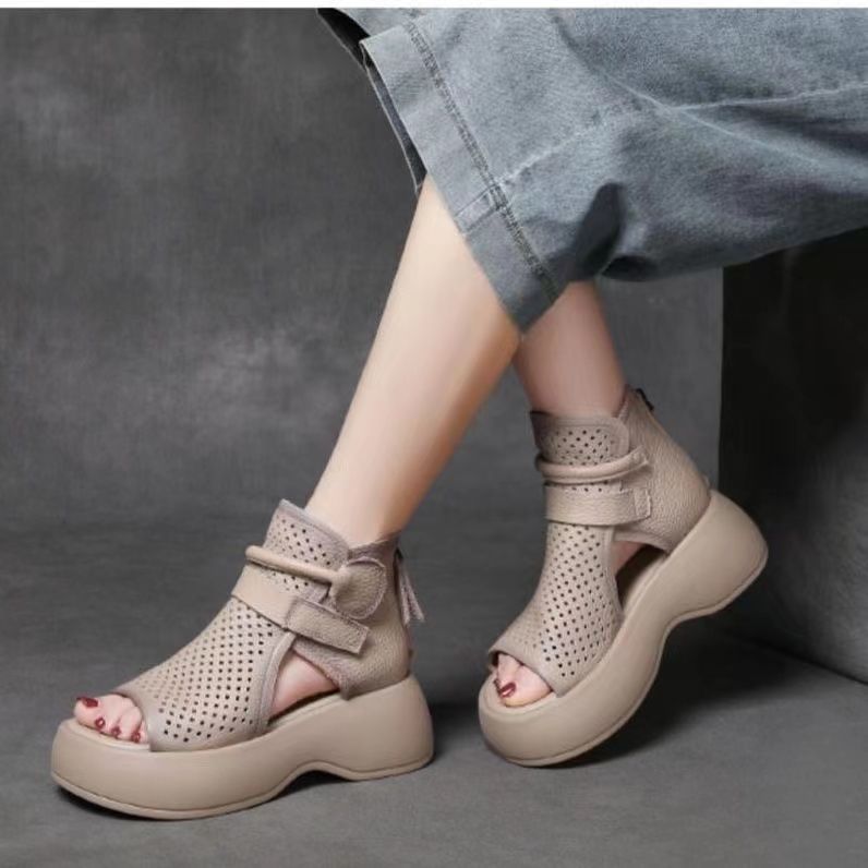 2024 nueva moda botas de soleas gruesas de mujer hueco suave transpirable ligera versátil muffin bottom usar sandalias romanas