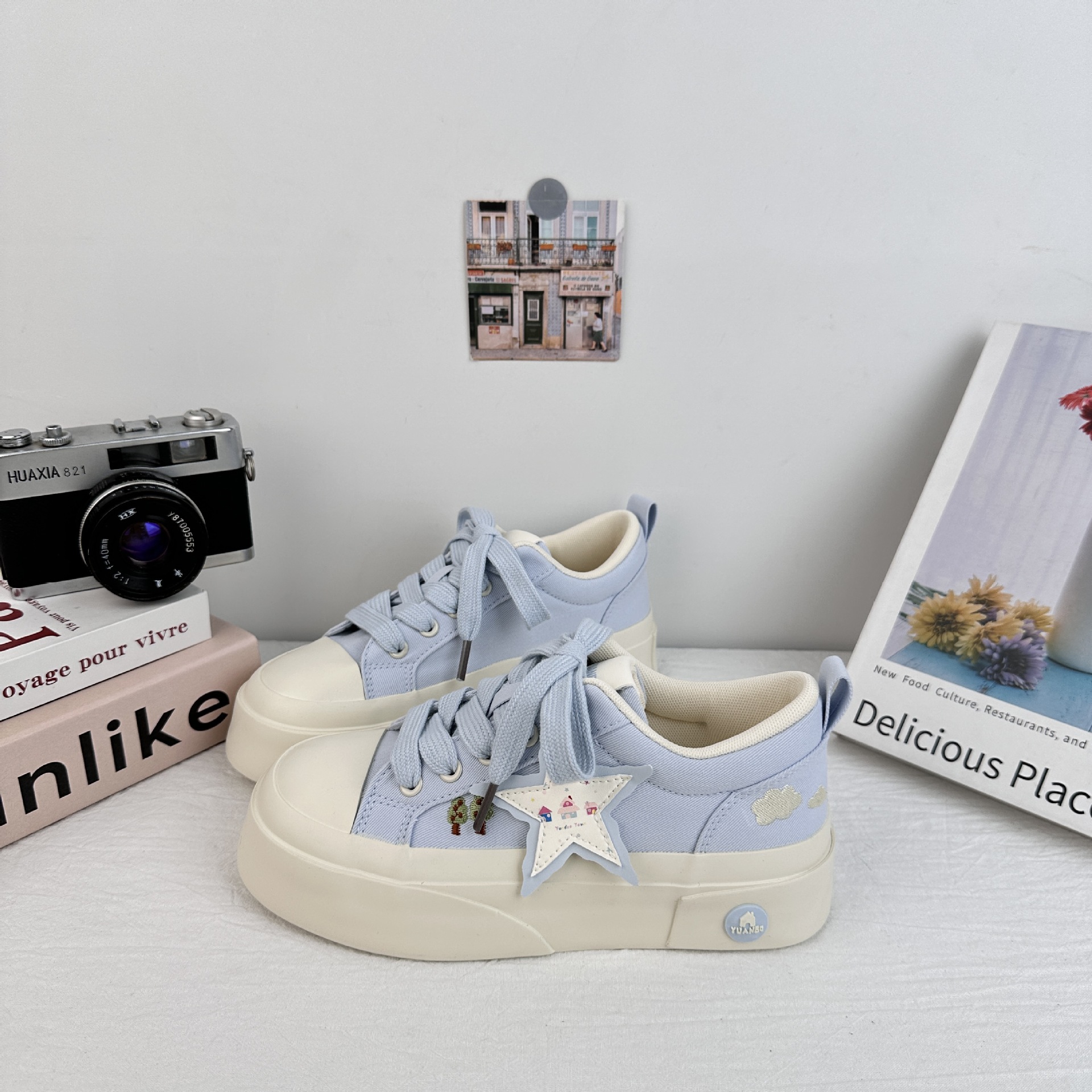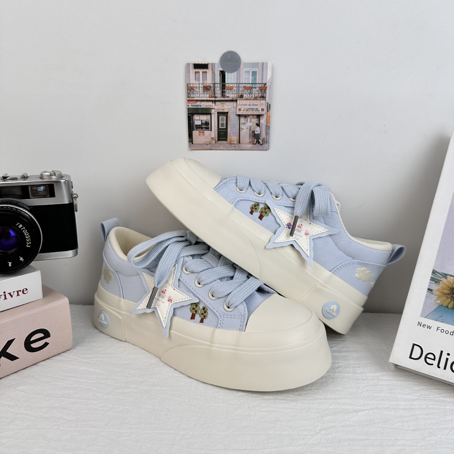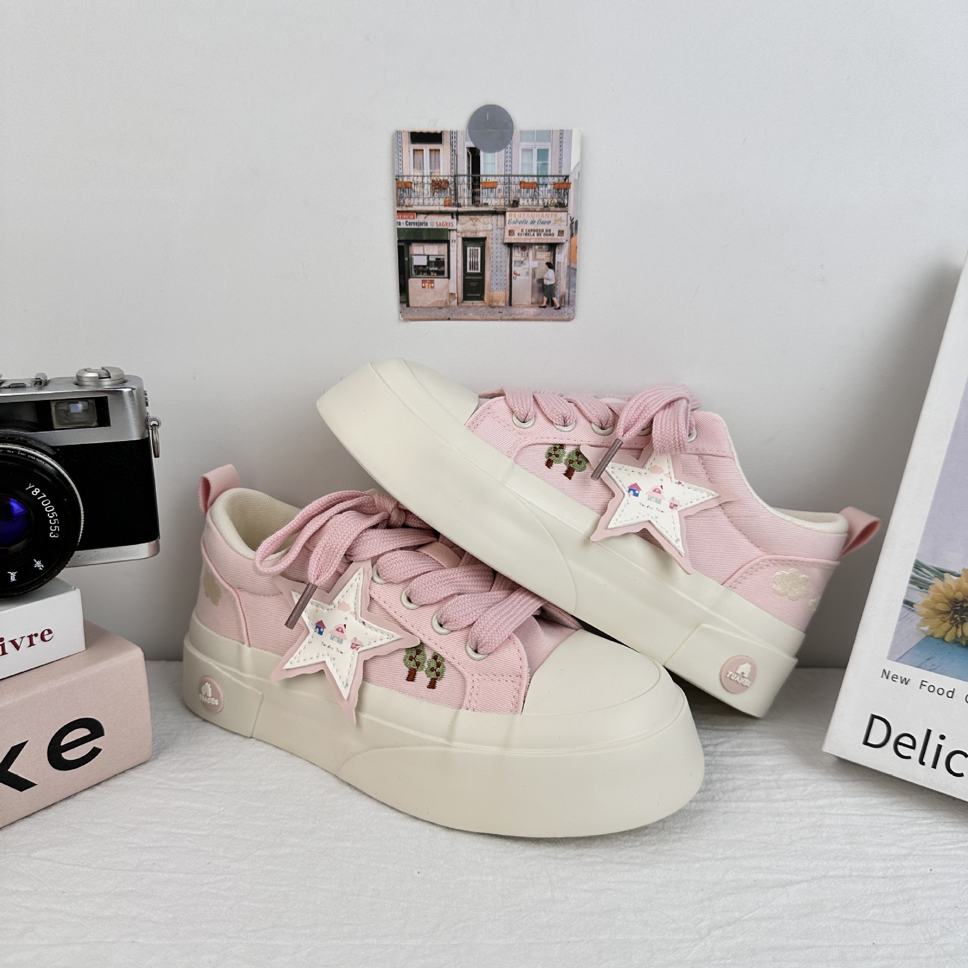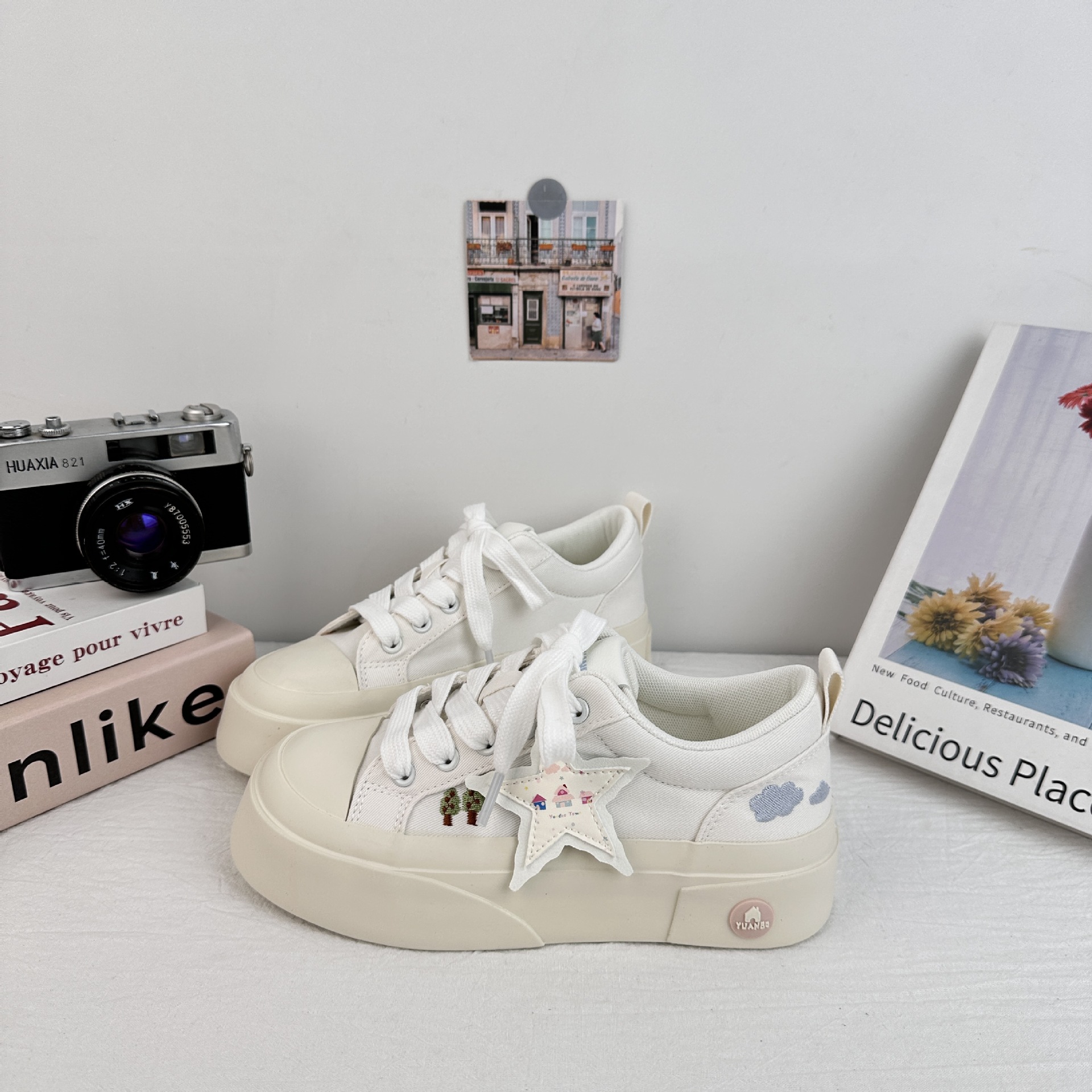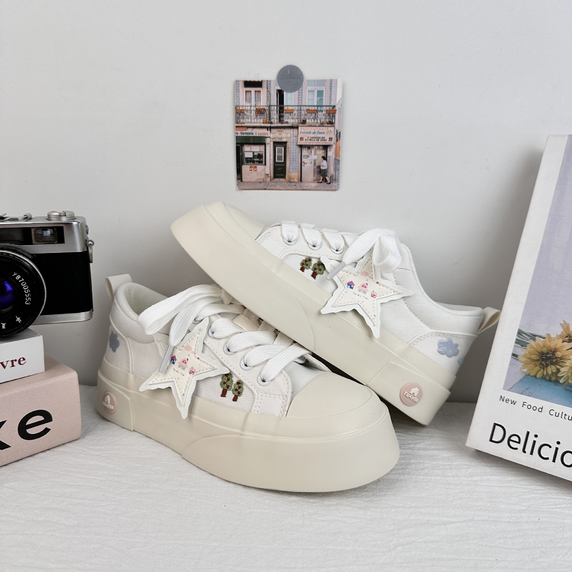 Zapatos de soleas gruesas de larga onda para mujeres 2025 nuevos zapatos blancos casuales de moda de verano con zapatos de lona frescos