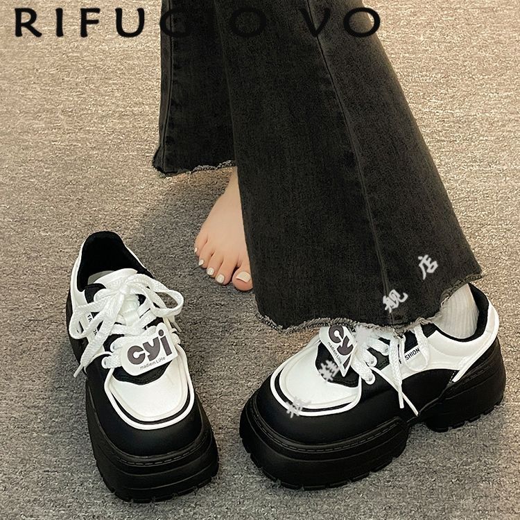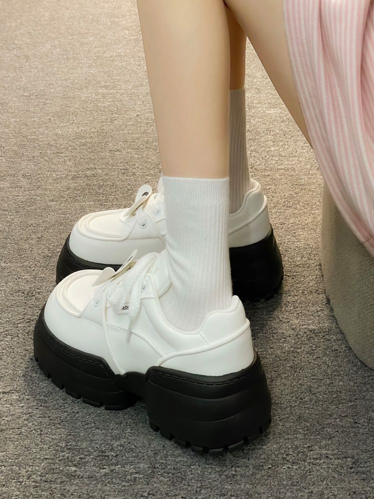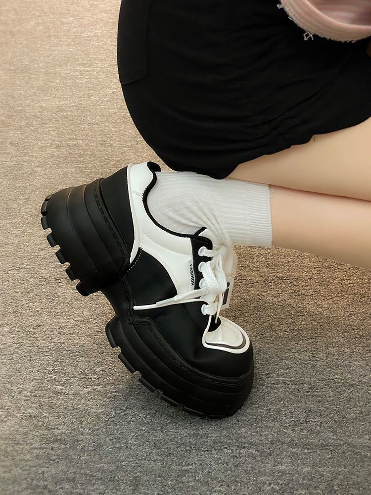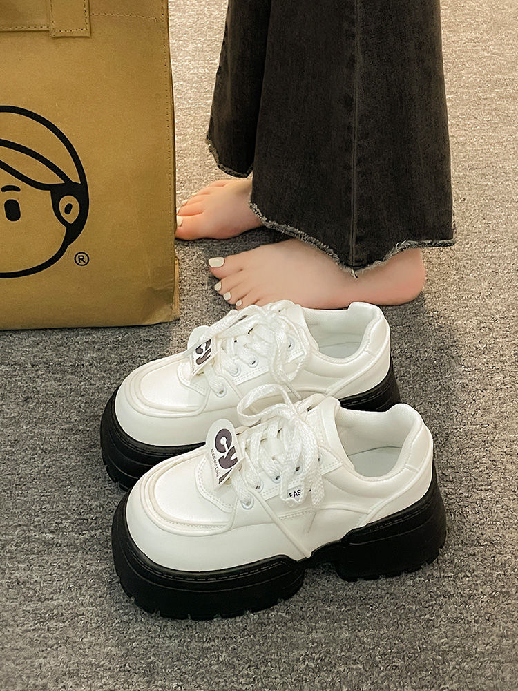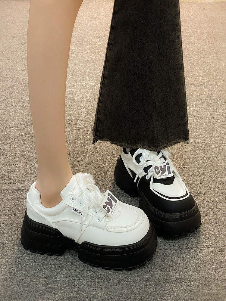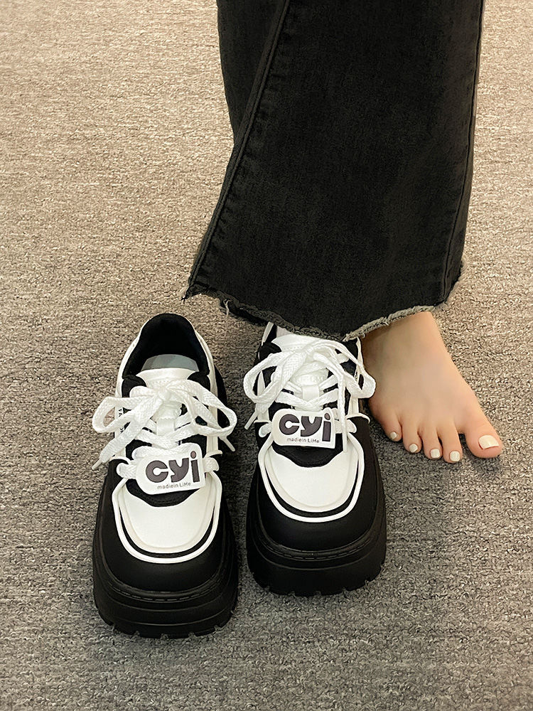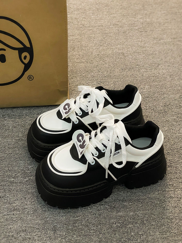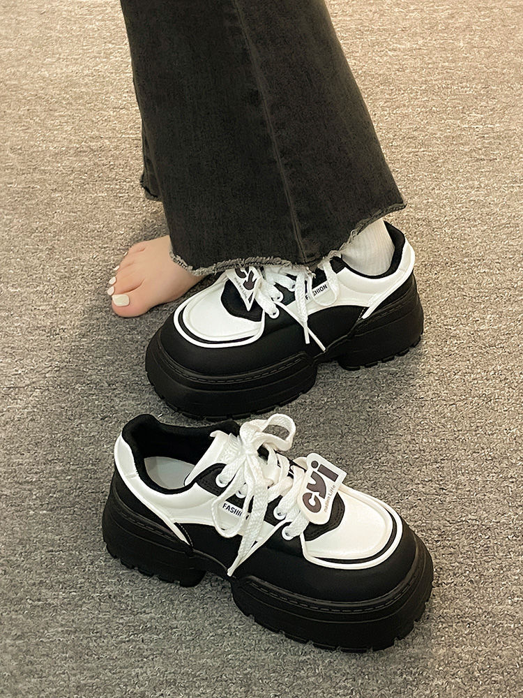 Muffin zapatos de pan de fondo grueso zapatos de mujer versátiles 2024 nuevos zapatos de hombre pequeño mostrando pies zapatos de papá zapatos panda blanco y negro