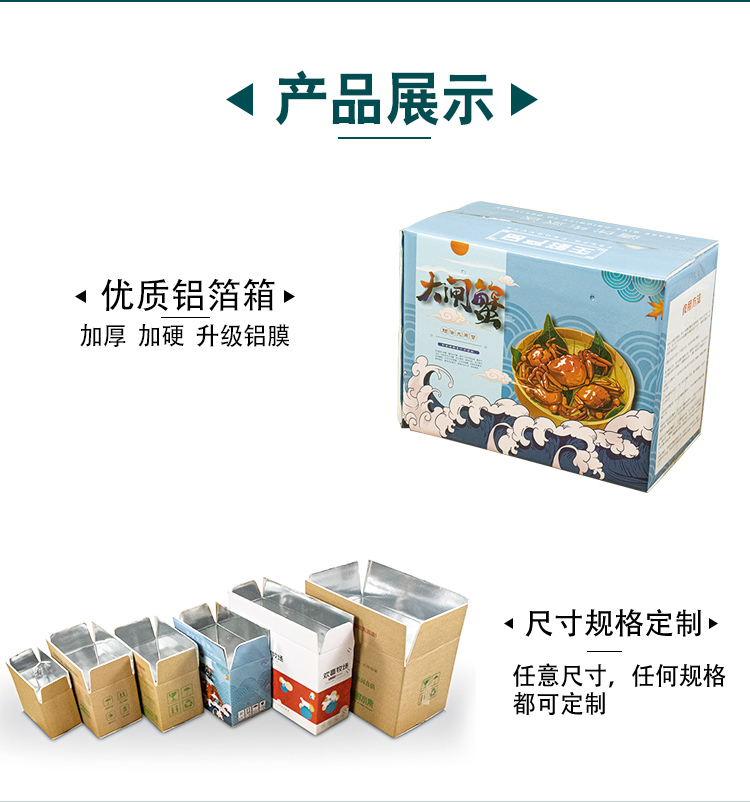 Aluminio espuma caja de cartón aislamiento de calor cadena de frío verduras frutas frescas cangrejo grande caja de entrega impermeable impresión personalizada