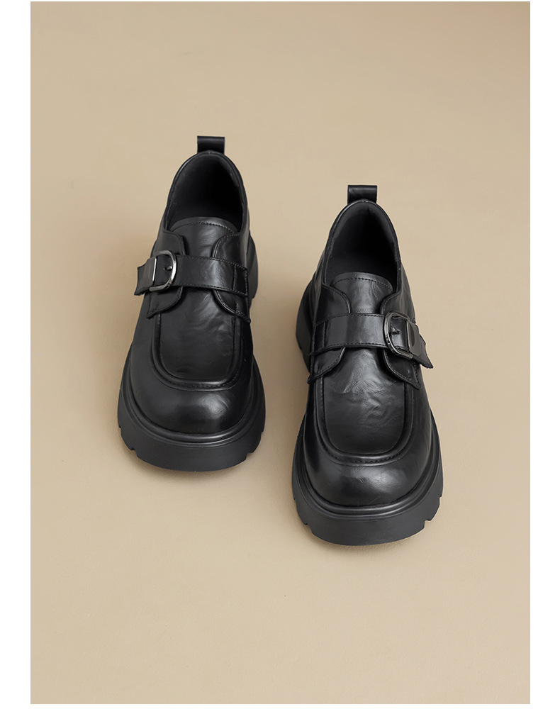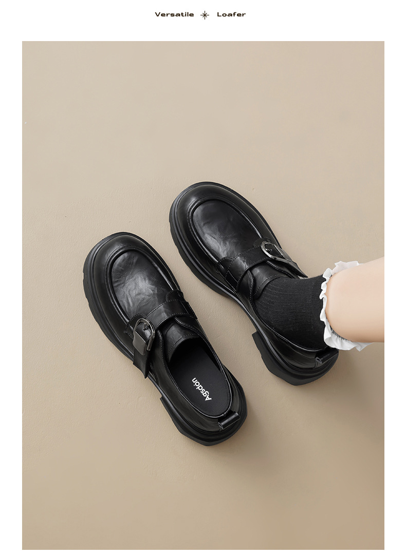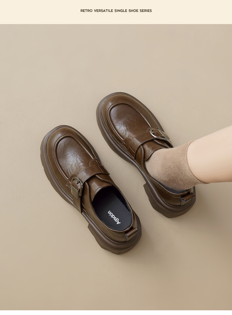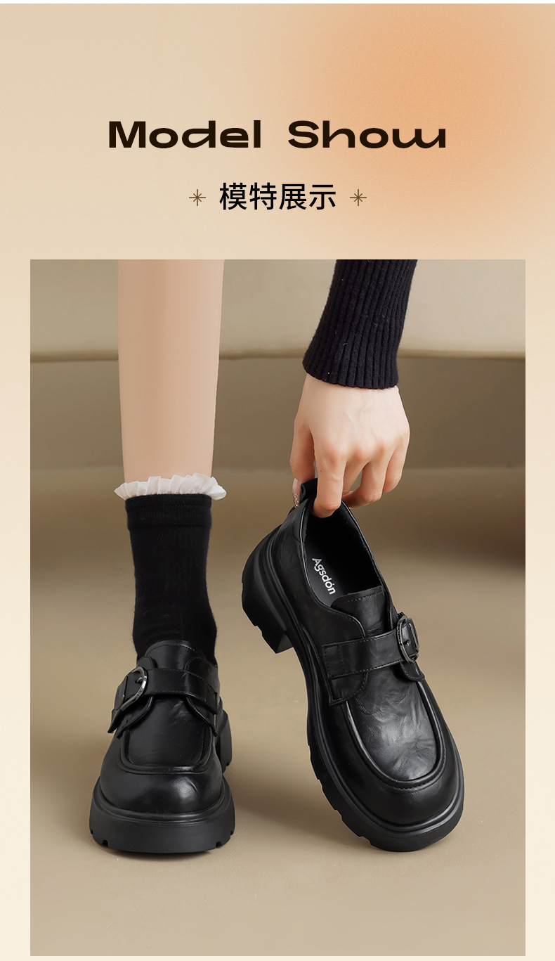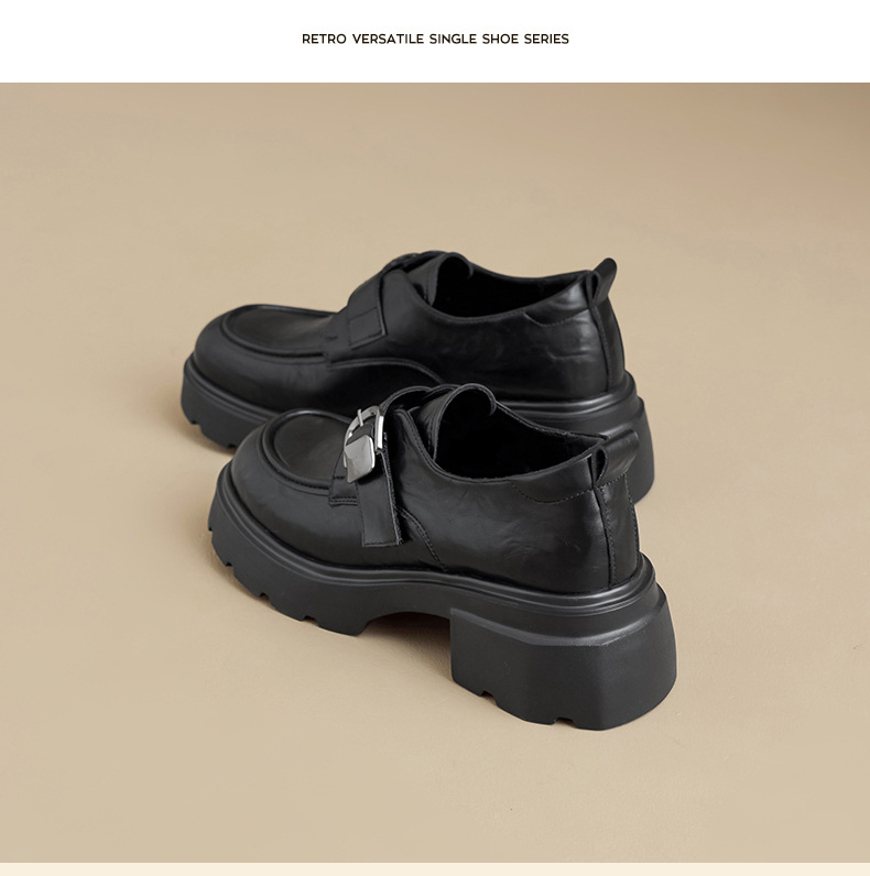 Augu Shi Deng negro graso Lefour zapatos para mujeres 2025 nuevo otoño invierno zapatos de cuero con una sola falda zapatos