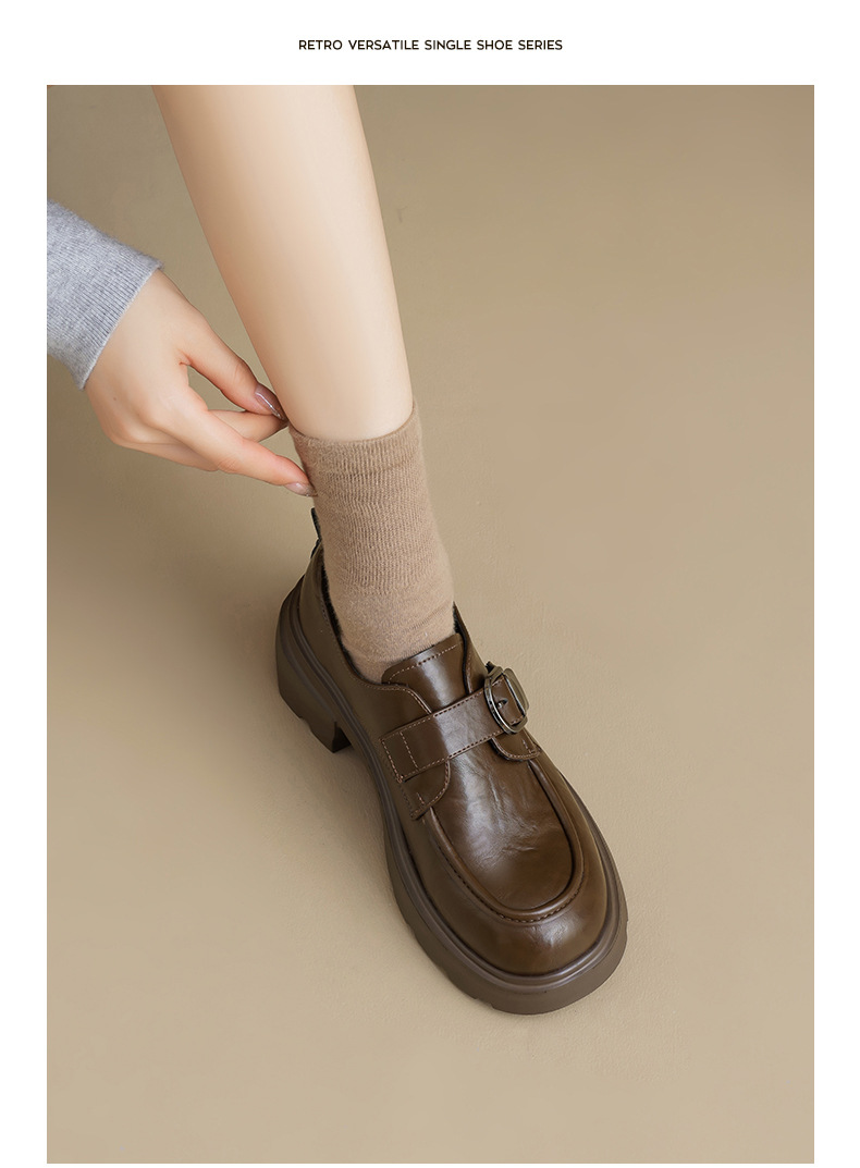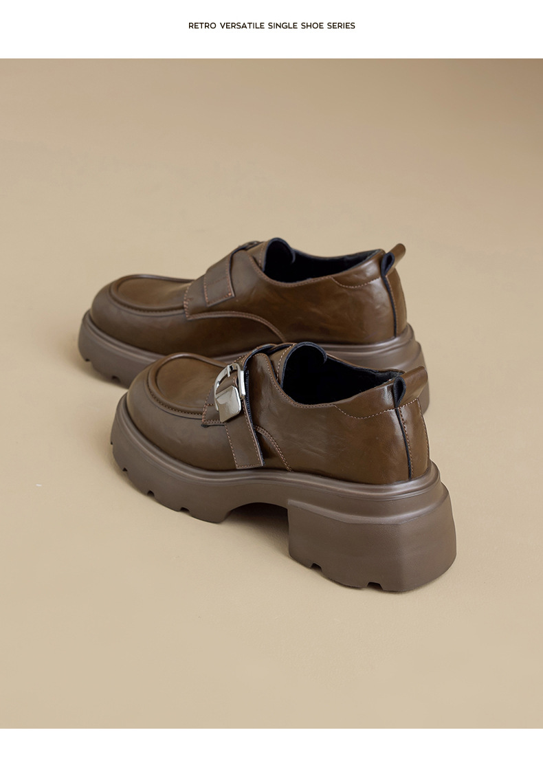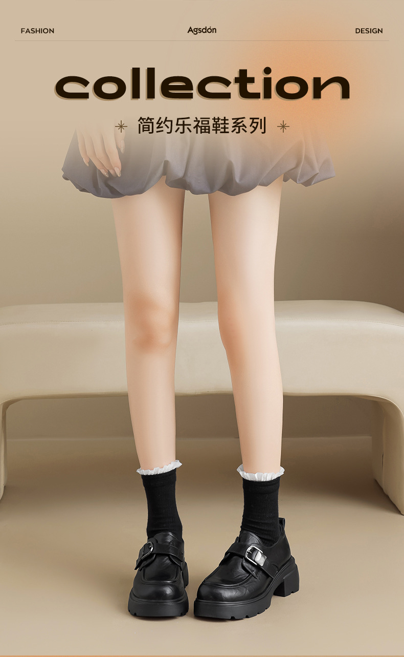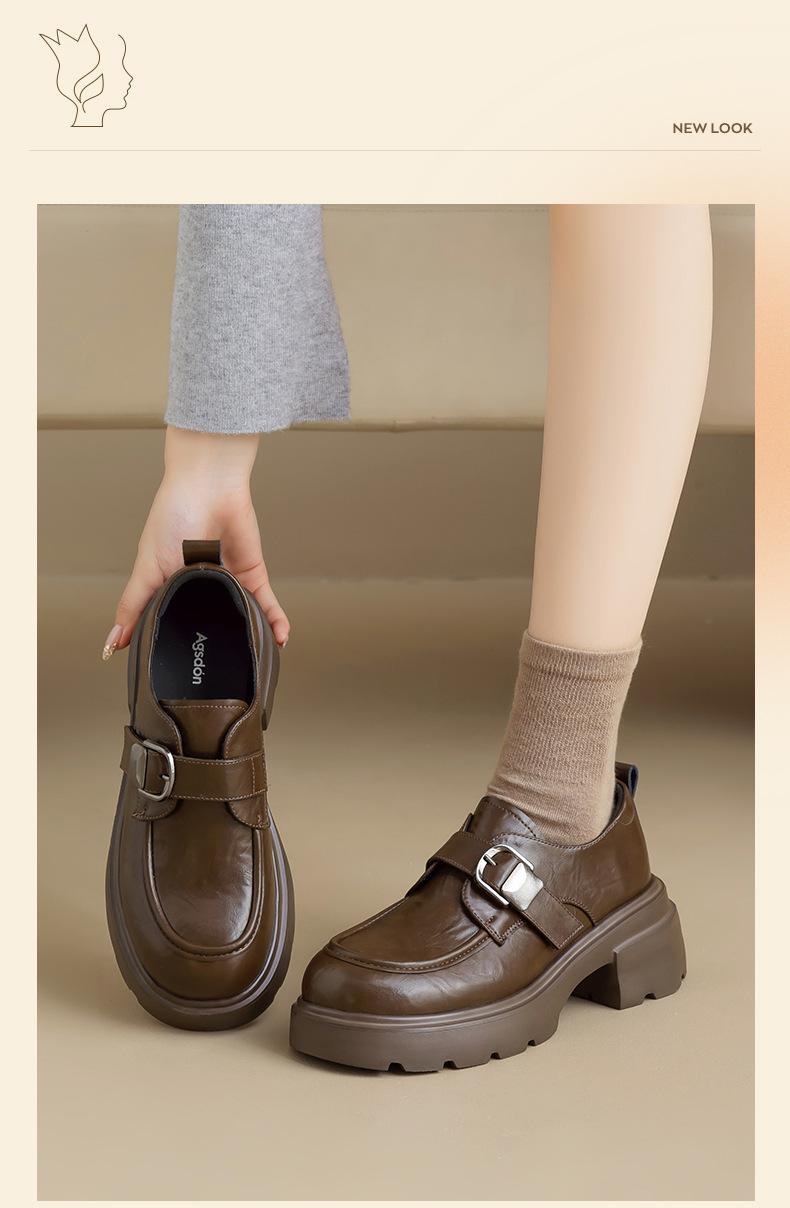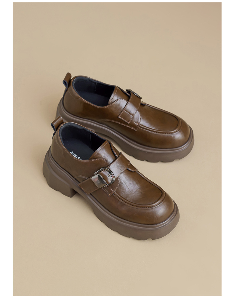 Augu Shi Deng negro graso Lefour zapatos para mujeres 2025 nuevo otoño invierno zapatos de cuero con una sola falda zapatos
