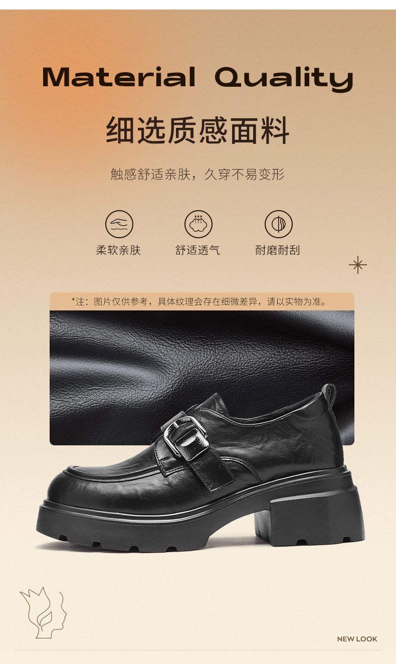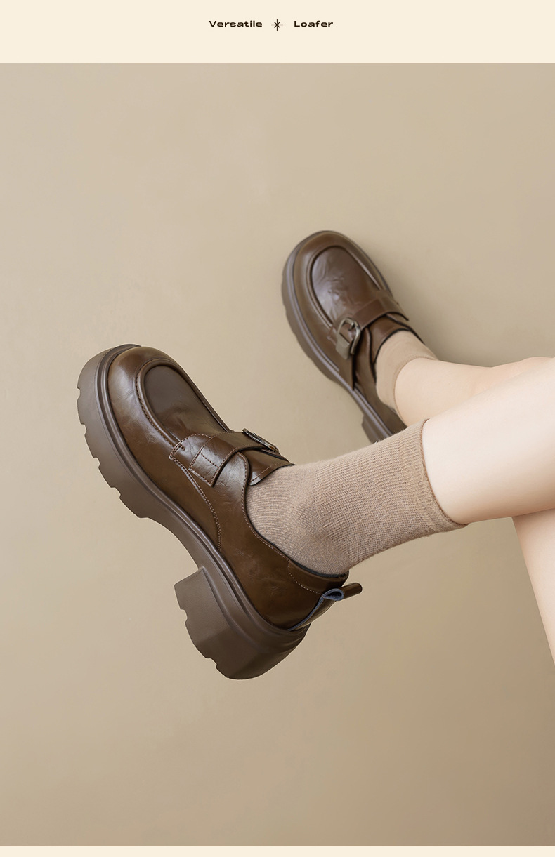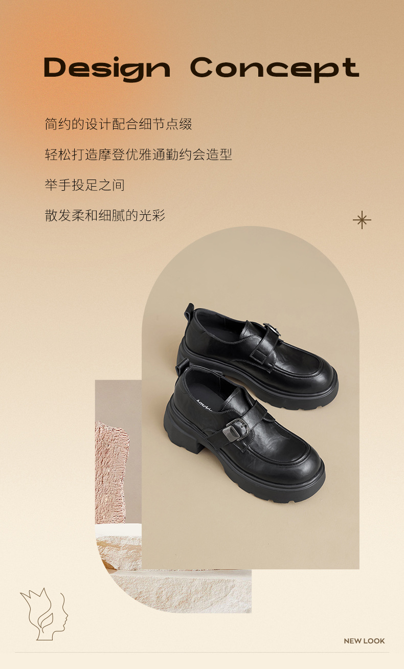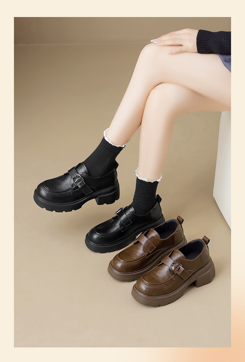 Augu Shi Deng negro graso Lefour zapatos para mujeres 2025 nuevo otoño invierno zapatos de cuero con una sola falda zapatos