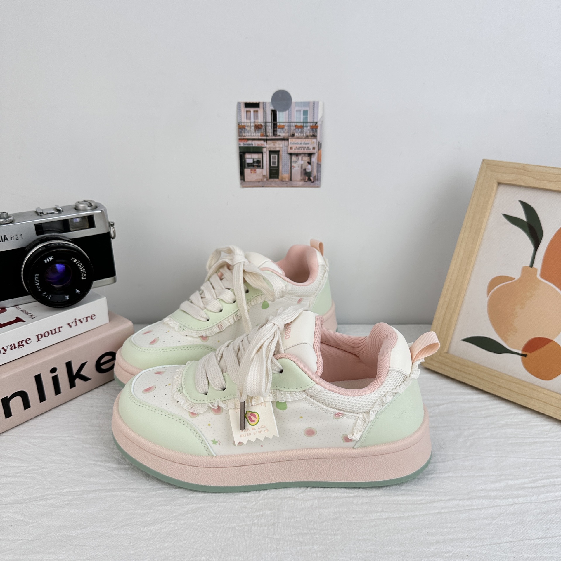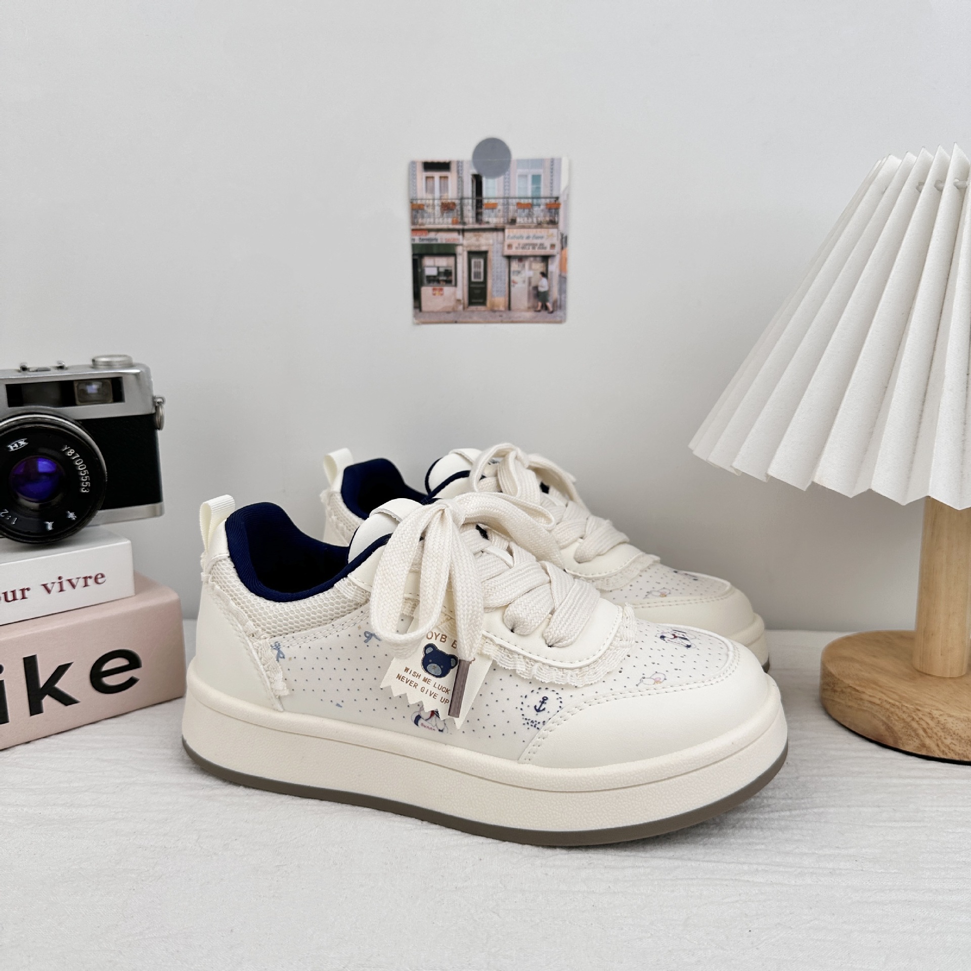 Farbo Bear impresión de verano delgada zapatos blancos versátiles zapatos de pan zapatos de mujer 2025 nuevos zapatos de skate casuales