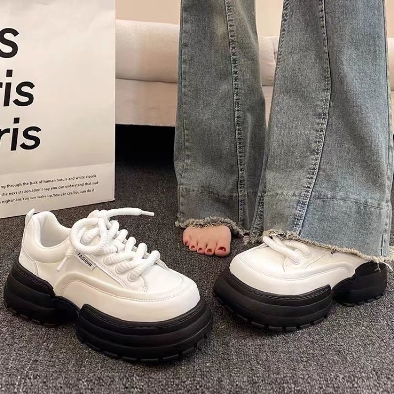 Muffin zapatos de pan de fondo grueso zapatos de mujer versátiles 2024 nuevos zapatos de hombre pequeño mostrando pies zapatos de papá zapatos panda blanco y negro