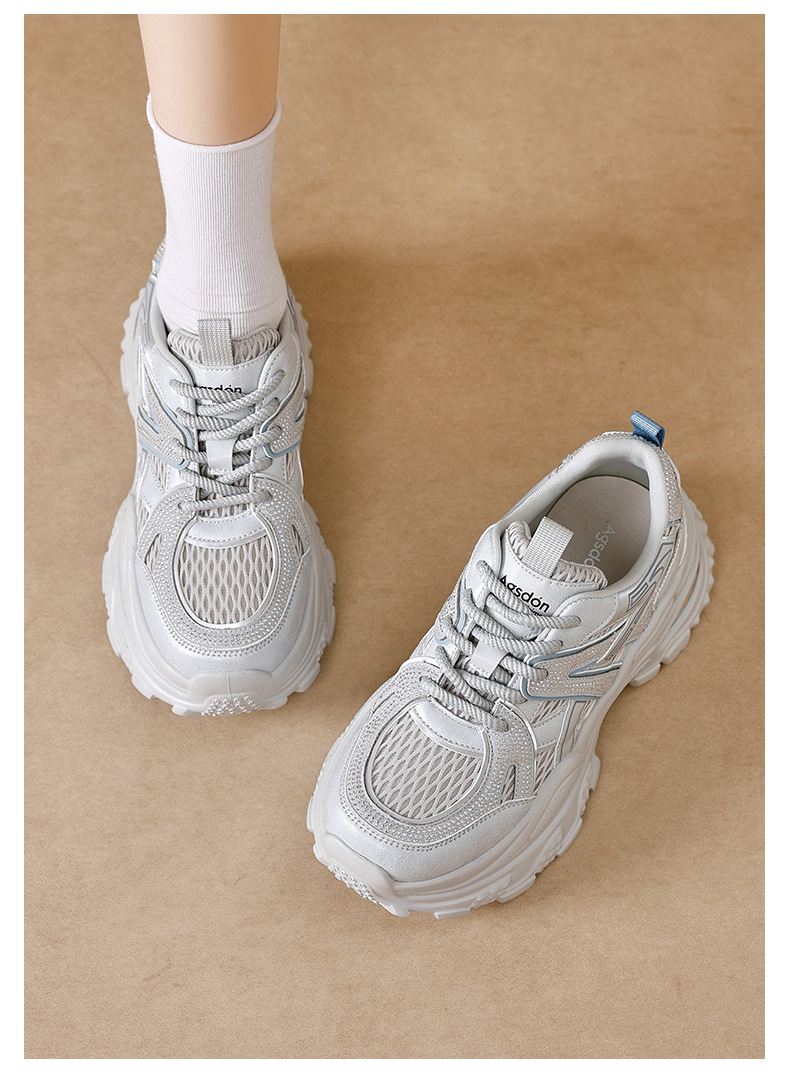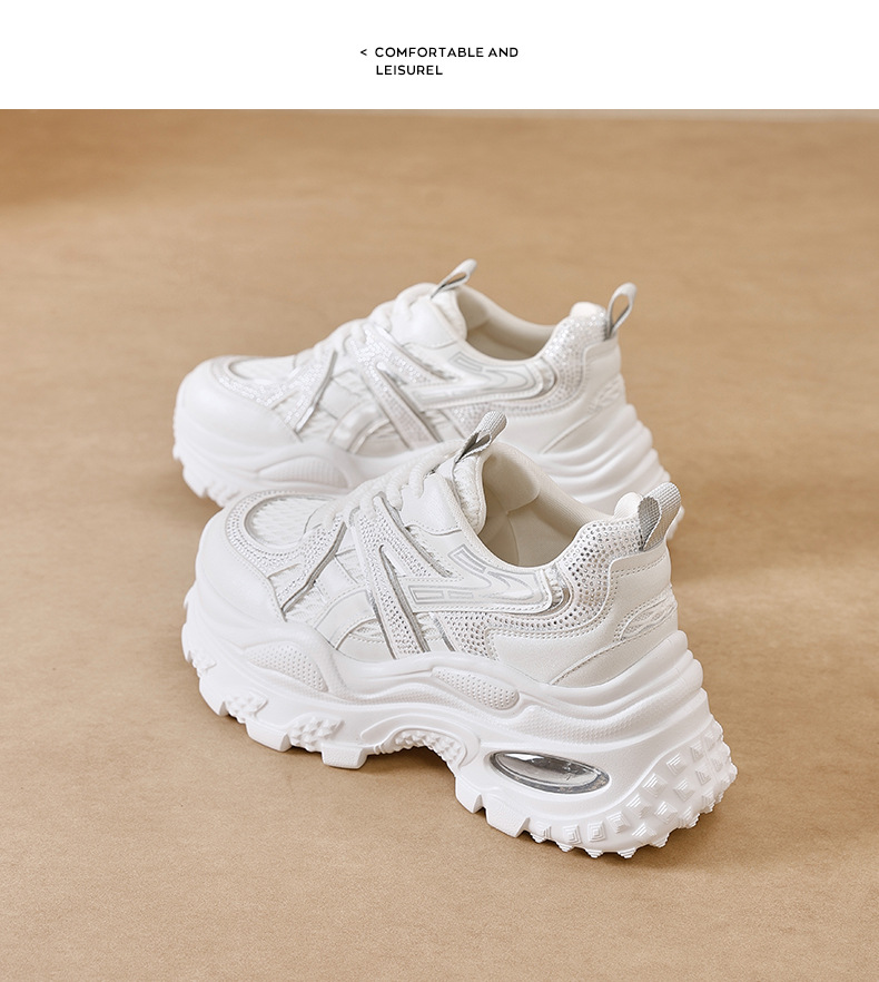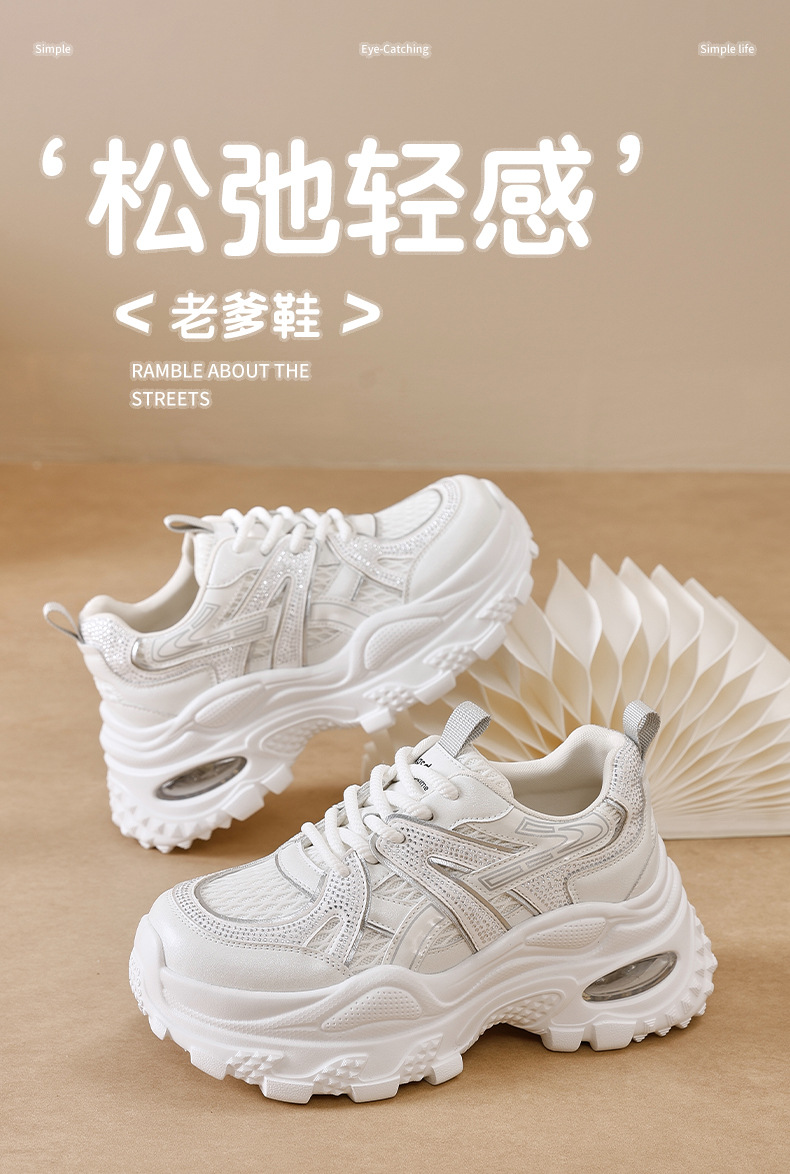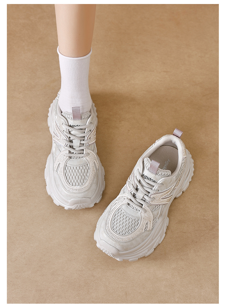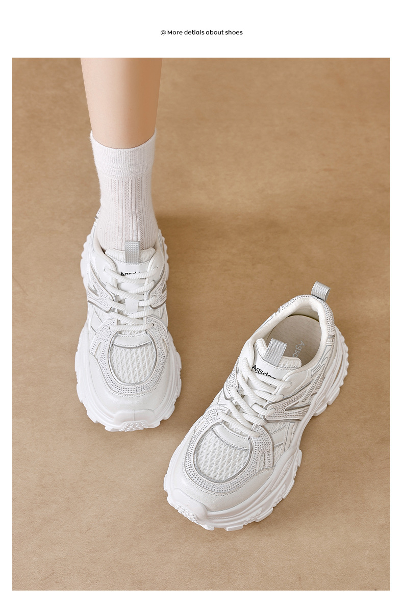 Augu Shi Deng zapatos de papá para mujeres 2025 nuevo otoño zapatos deportivos blancos de suela gruesa estudiantes zapatos casuales ligeros para correr