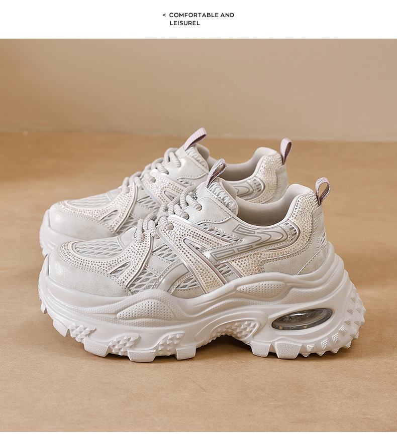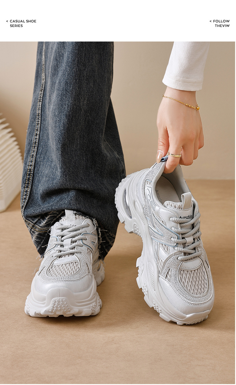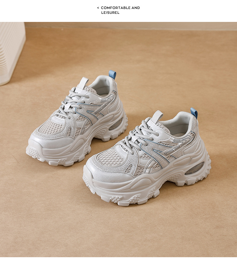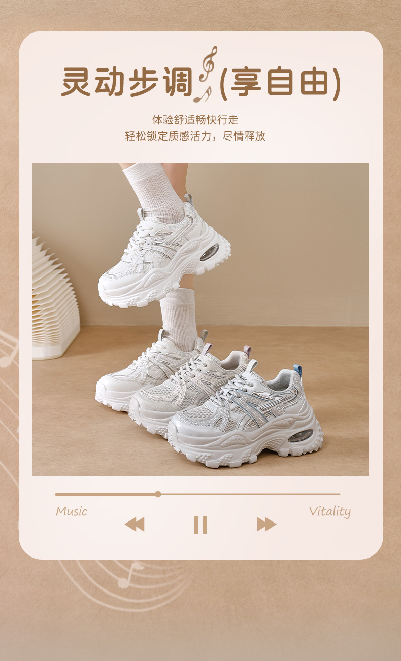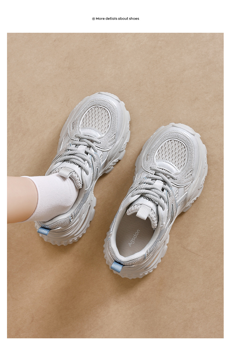 Augu Shi Deng zapatos de papá para mujeres 2025 nuevo otoño zapatos deportivos blancos de suela gruesa estudiantes zapatos casuales ligeros para correr