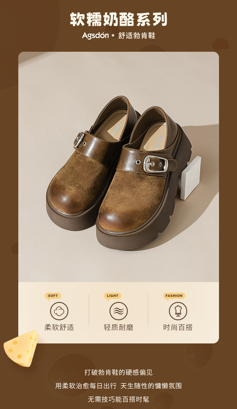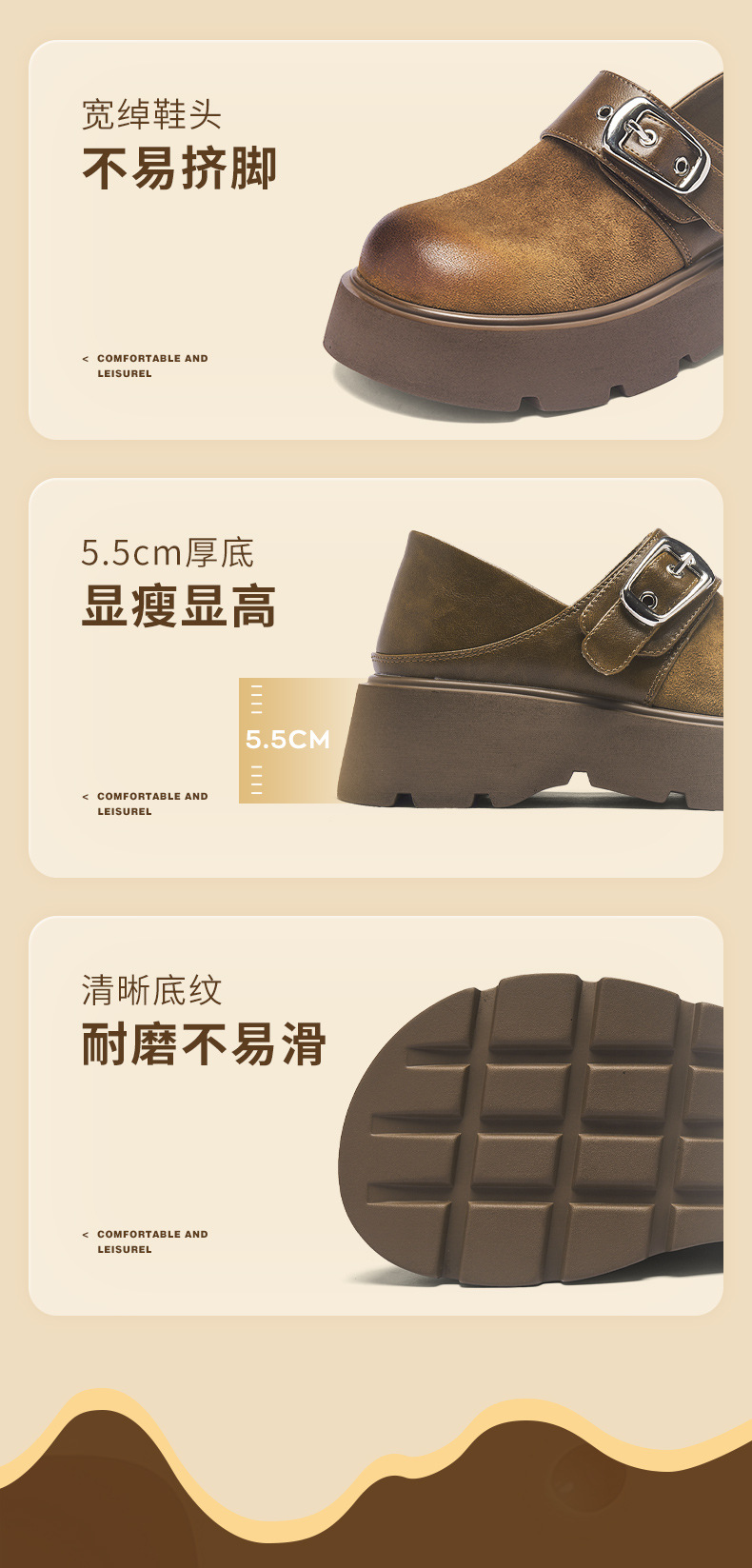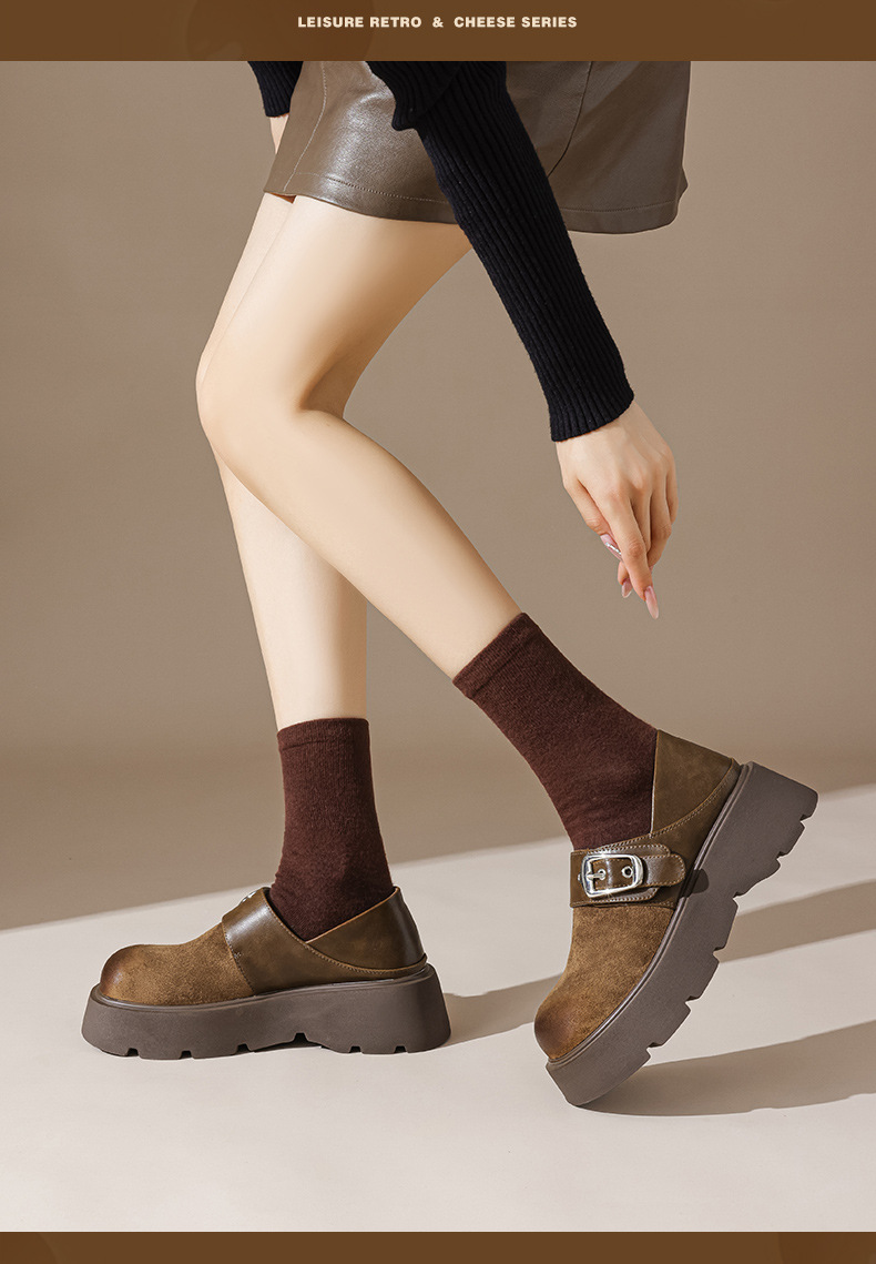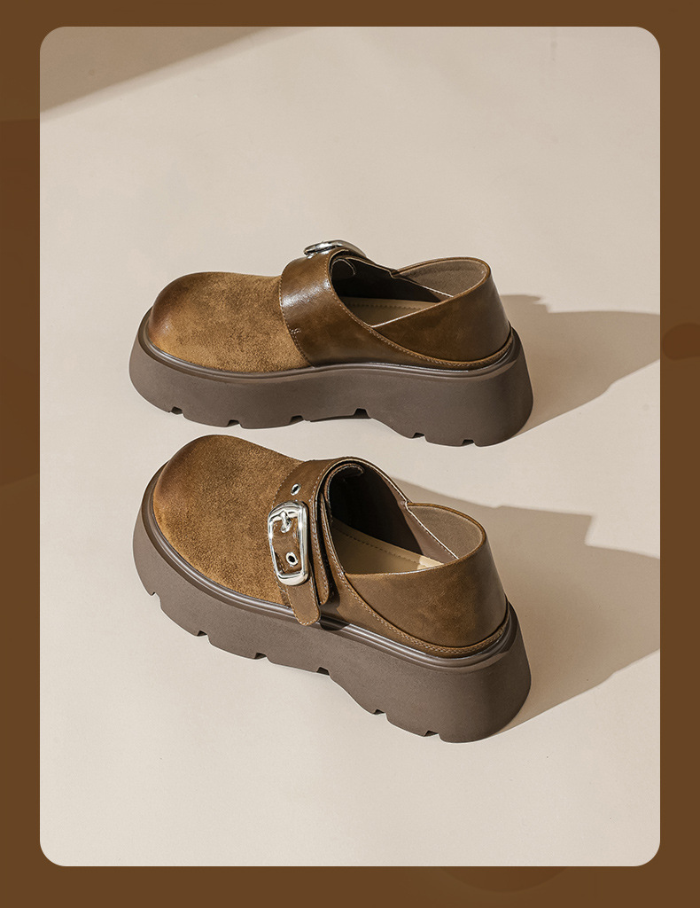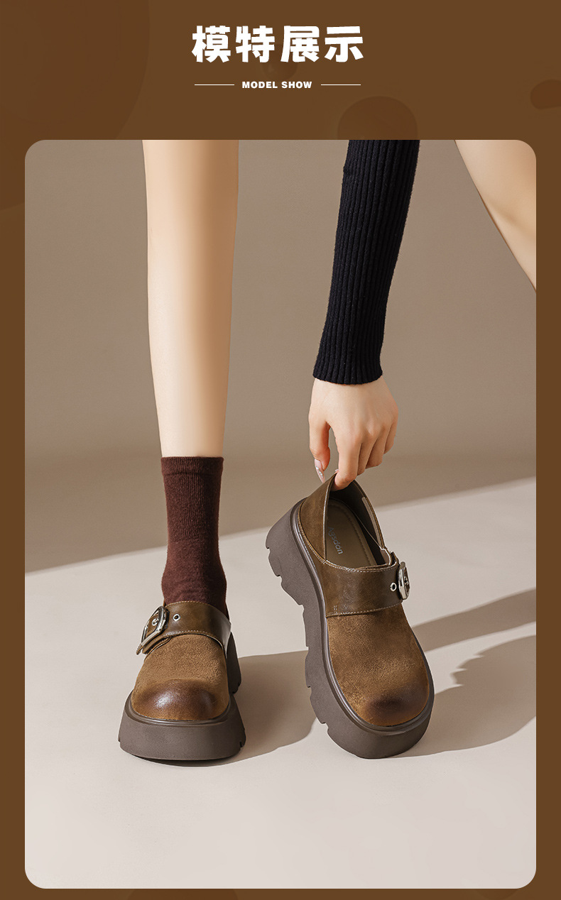 Augu ShiDeng zapatos Lefour de fondo grueso para mujeres 2025 nuevo otoño invierno retro zapatos marrones una sola cabeza de bolsillo un pie zapatos burkin
