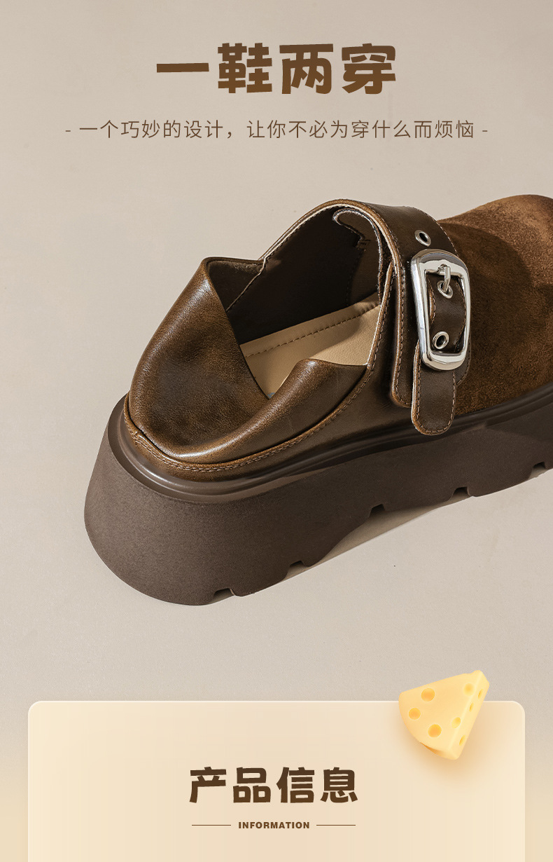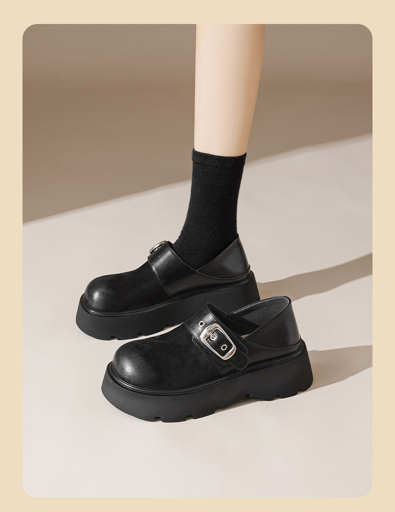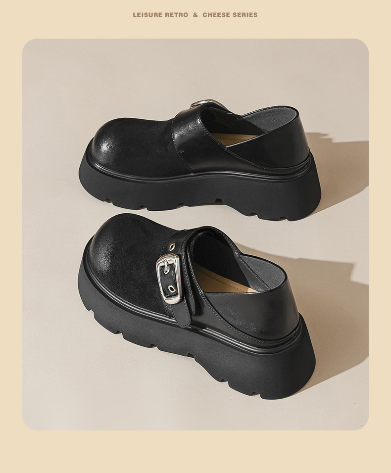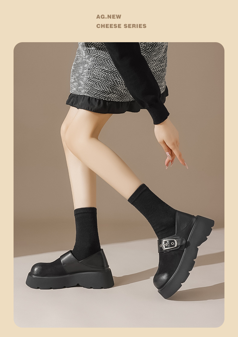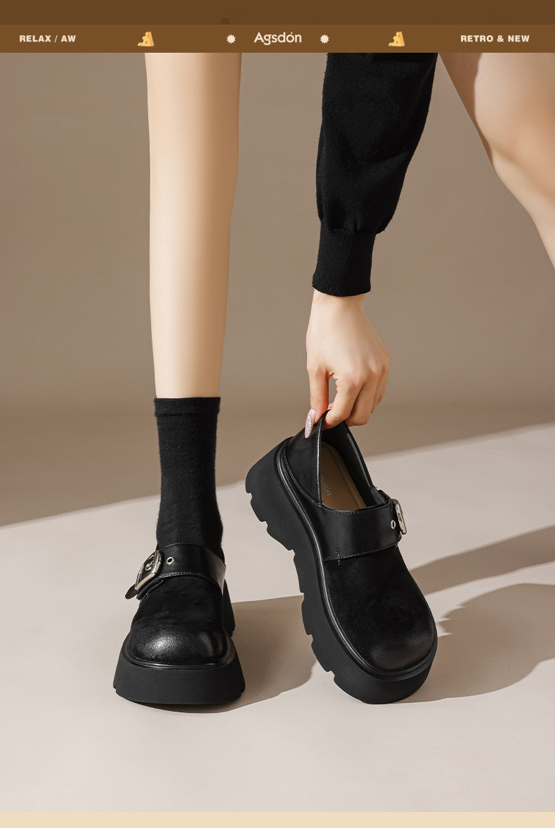 Augu ShiDeng zapatos Lefour de fondo grueso para mujeres 2025 nuevo otoño invierno retro zapatos marrones una sola cabeza de bolsillo un pie zapatos burkin