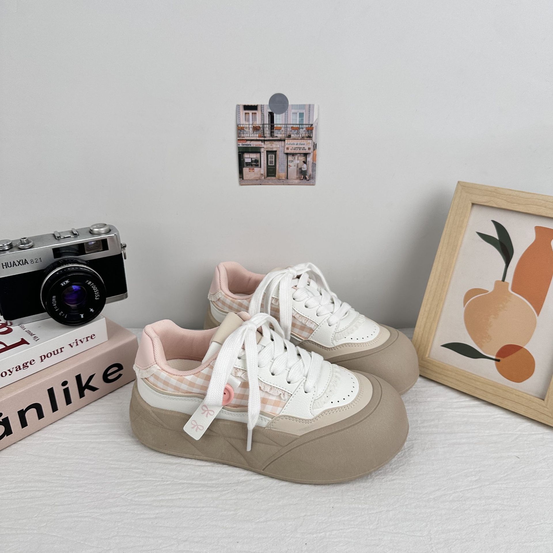 Zapatos de onda lejana para mujer 2025 nuevos zapatos de pan de estilo caliente zapatos blancos de suela gruesa zapatos de tabla zapatos casuales de nicho de todo fósforo