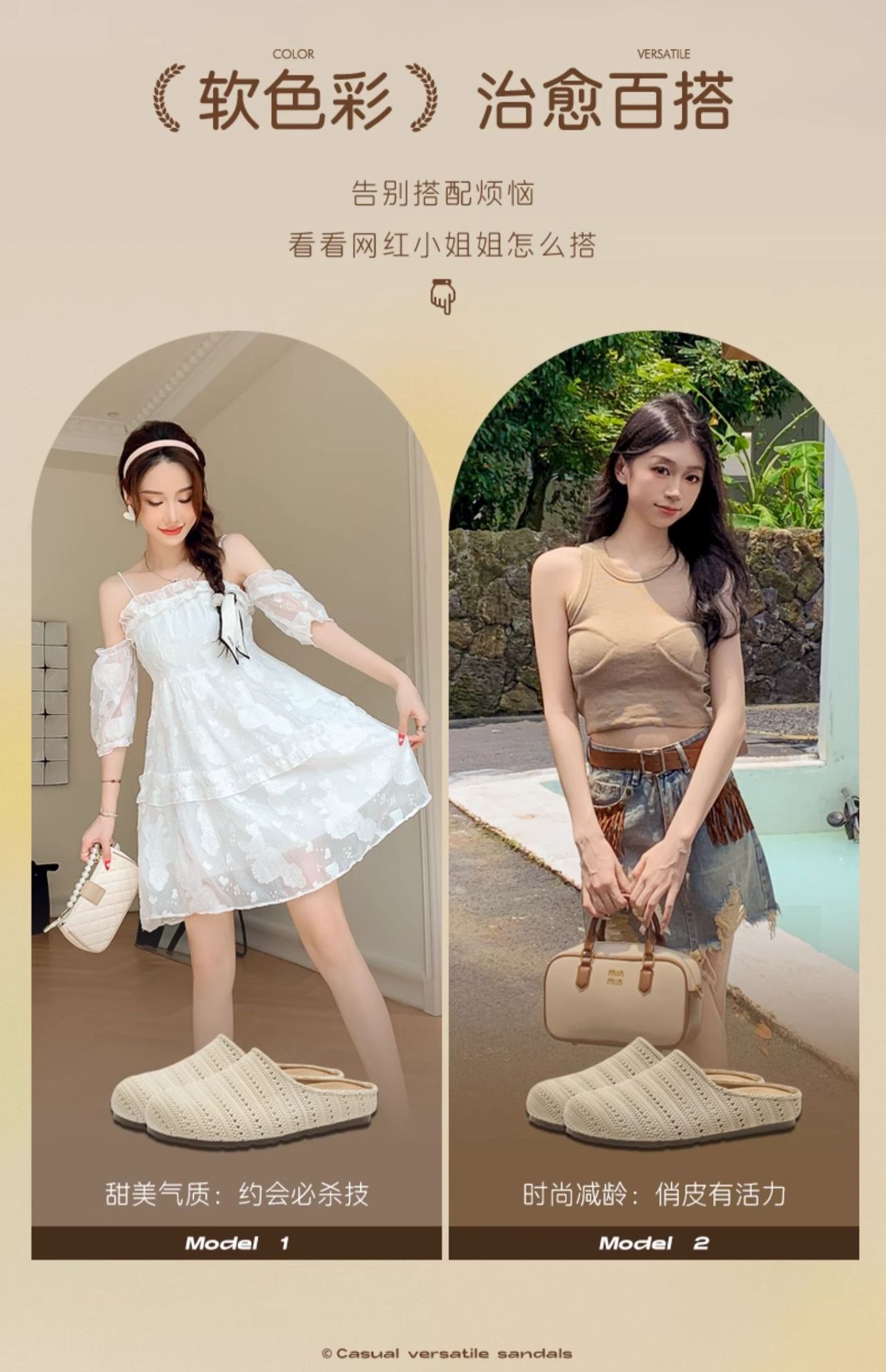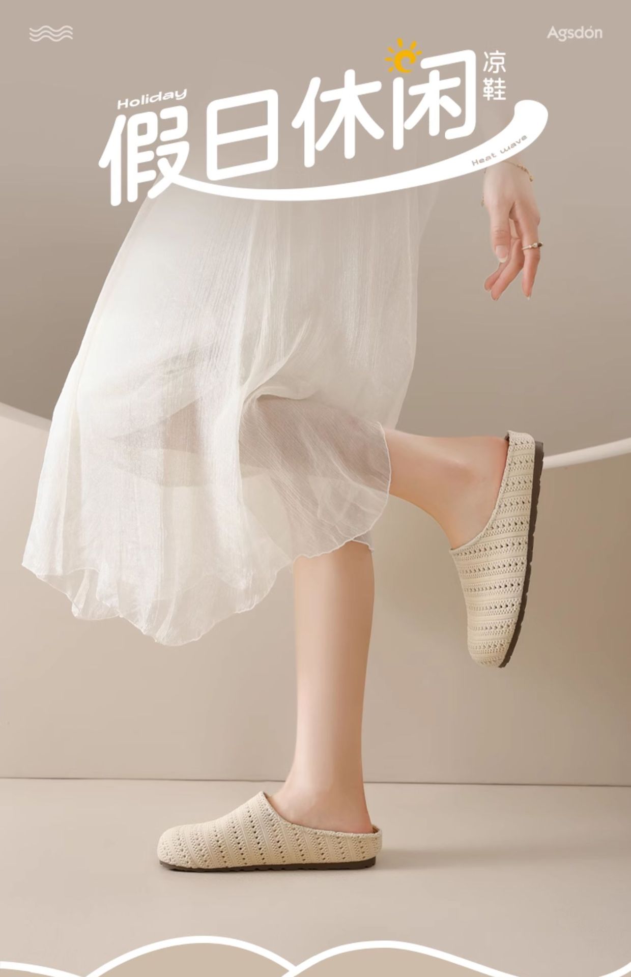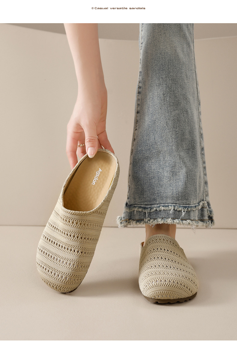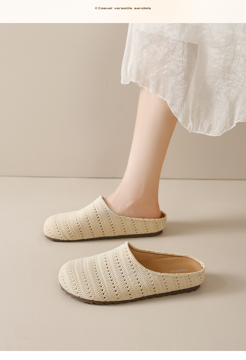 Augustion trenzado Baotou medias pantuflas mujer 2025 nuevo verano suela gruesa ropa exterior sandalias y pantuflas casuales