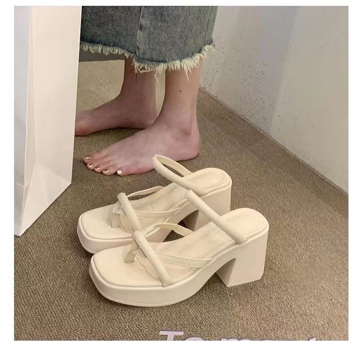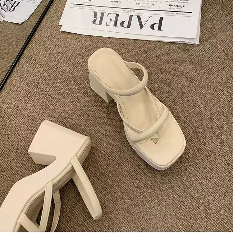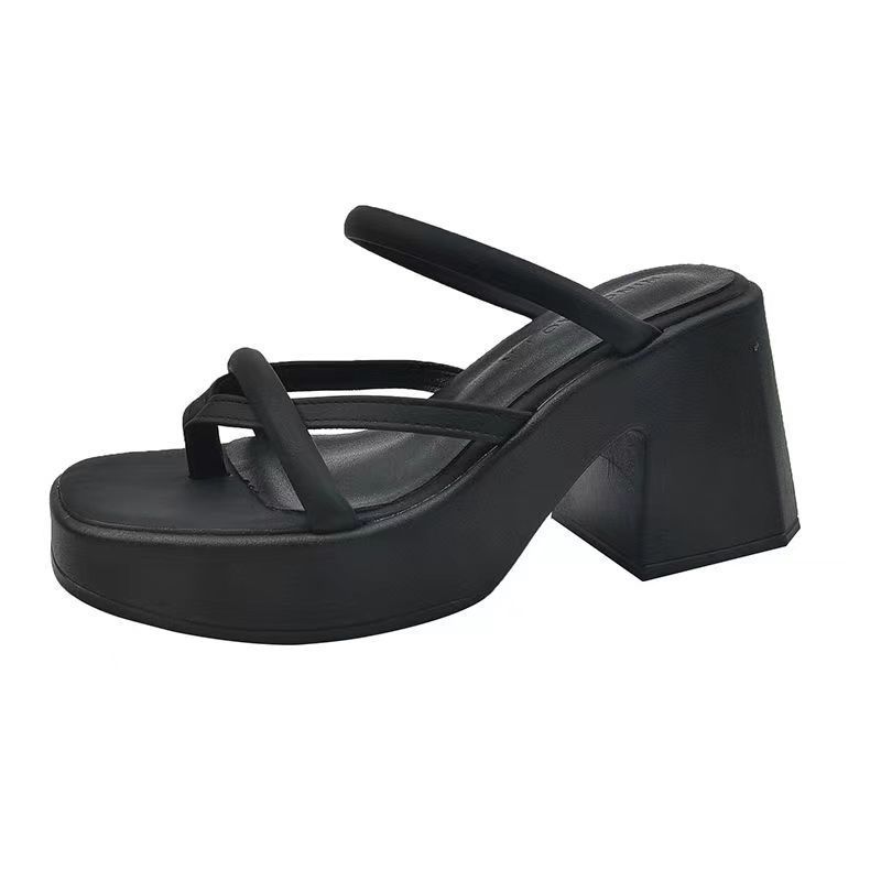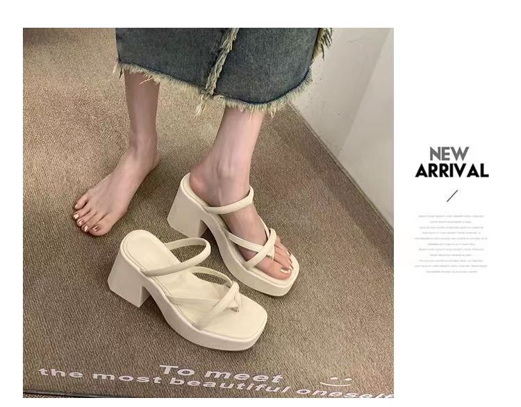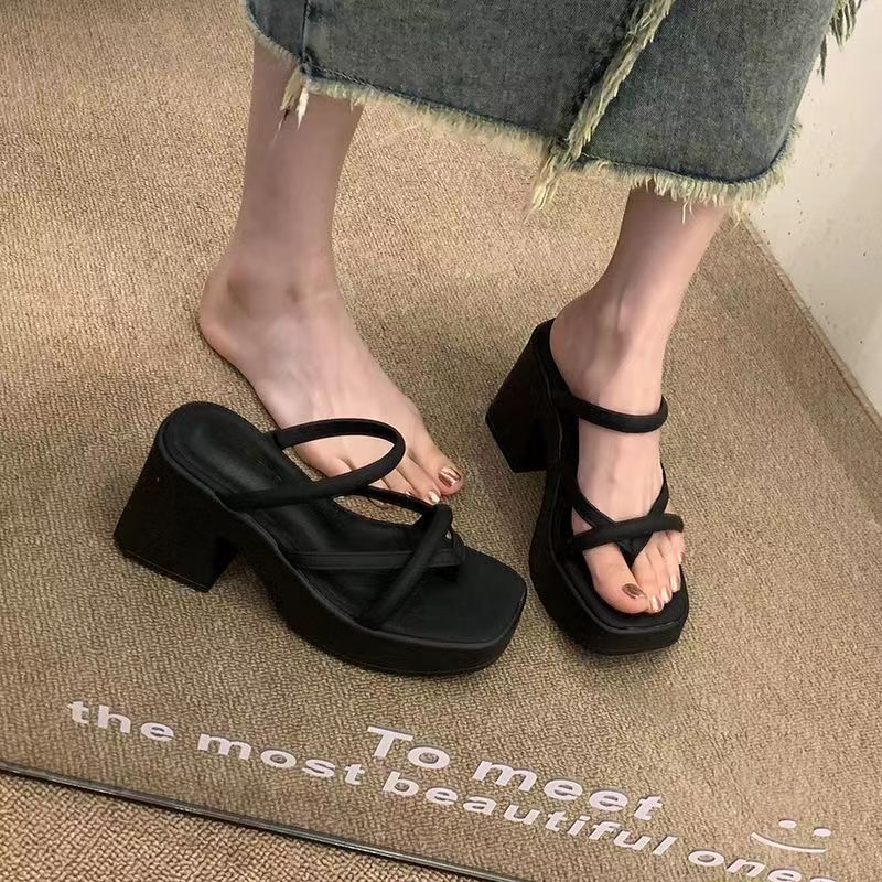 Moda de alto nivel sensación de clip de pies sandalinas en forma de zigzag para mujeres de verano con tacones gruesos de dedos expuestos red de tacones altos para mujeres